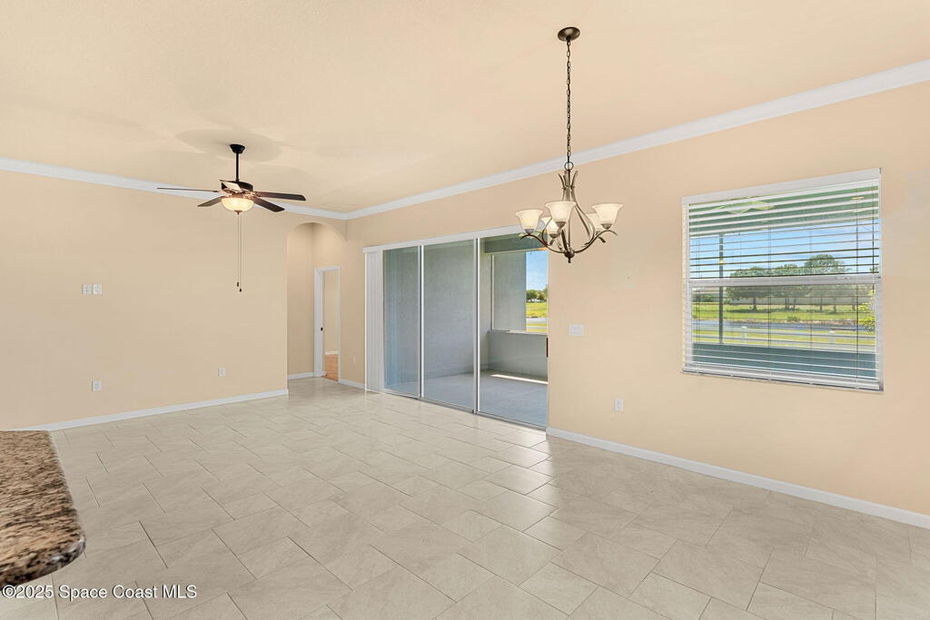 Beautiful home in the gated 55+ community of Alamanda Key! This open floor plan offers a spacious great room and kitchen with granite countertops, stainless steel appliances, and a large screened patio overlooking serene fields and a lake. Tile flooring flows throughout the main living areas. The split bedroom layout includes a primary suite with two closets, double sinks, and a large walk-in shower. Additional features include an inside laundry room and a two-car garage with a unique ramp-style floor. Enjoy community amenities like a clubhouse and pool in this vibrant, active adult neighborhood!
