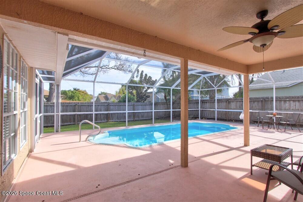 Available Now! Professionally managed three-bedroom, two-bath pool home featuring a screened-in patio, perfect for relaxing or entertaining. The functional floor plan offers comfortable living areas with abundant natural light throughout. Equipped with a 240V EV outlet in garage and solar panels for energy efficiency. Enjoy a convenient location close to beaches, shopping, dining, and major roadways, all while being tucked into an established neighborhood along Crane Creek. Schedule a showing today!