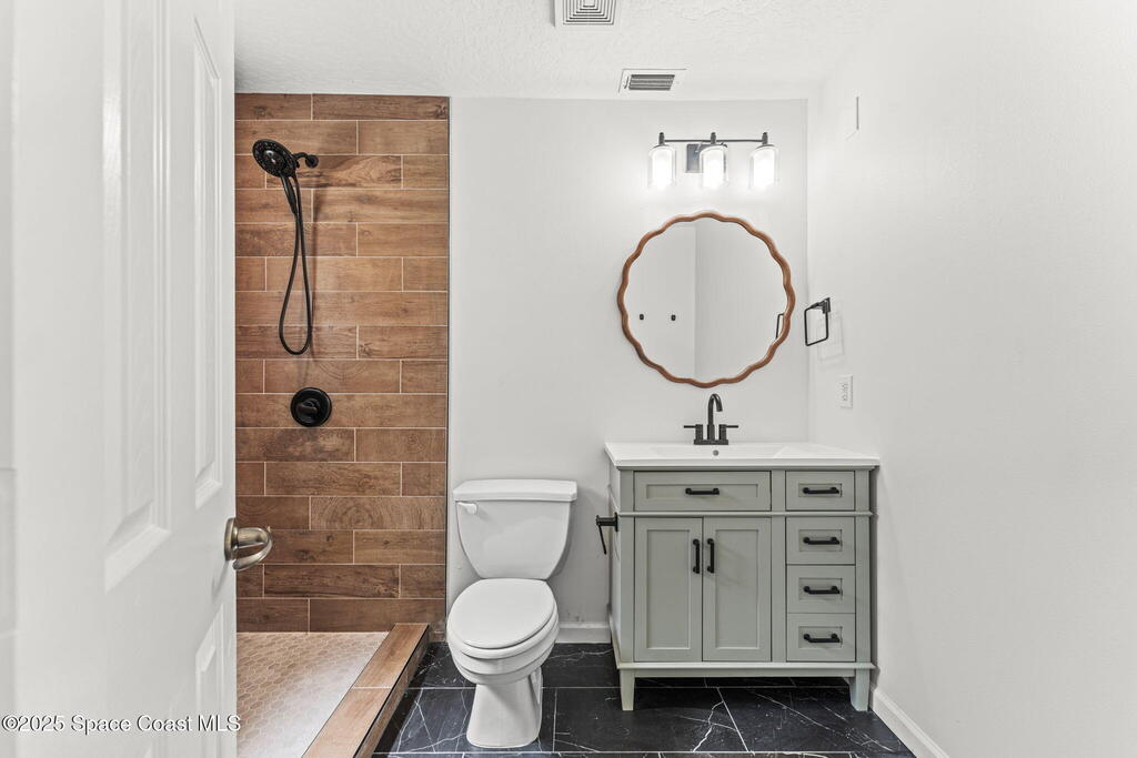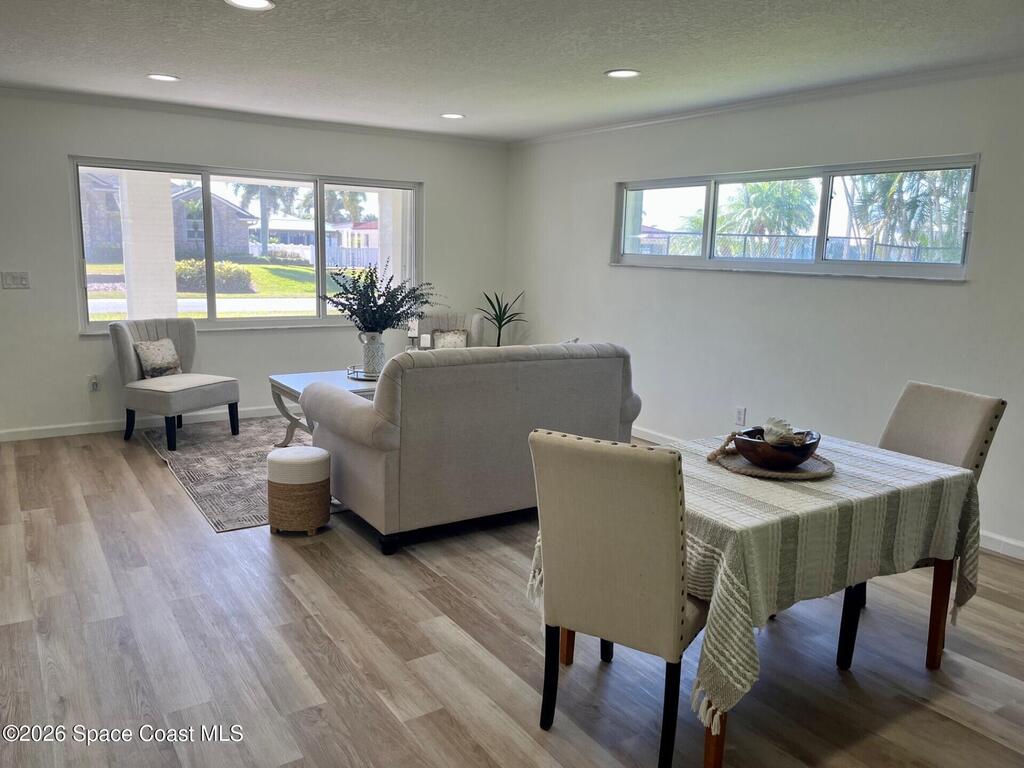 Big price cut! This meticulously remodeled coastal home is truly move in ready. Featuring two spacious primary suites, it is ideal for multigenerational living or hosting guests with privacy. Multiple flex rooms provide space for a home office, gym, media room, or creative studio.The large fenced backyard backs to a peaceful preserve and canal. Enjoy coffee on the private deck, launch your kayak to the lagoon, and watch dolphins and manatees pass by. Mature banana plants and nearby private beach access offer the best of river and ocean living.Extensive upgrades include granite and quartz countertops, stainless appliances, updated HVAC, new flooring and tile, modern vanities, new septic system, new roof, and hurricane shutters. Garage offers flexible use with one bay deep enough to accommodate an SUV, while the second bay is better suited for a compact vehicle, storage, bikes, or a workshop. Full dimensions available upon request.