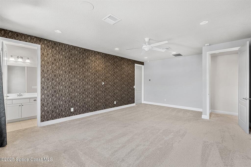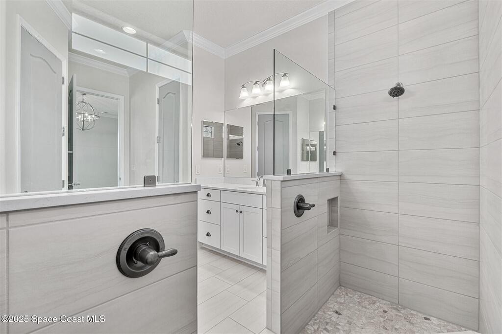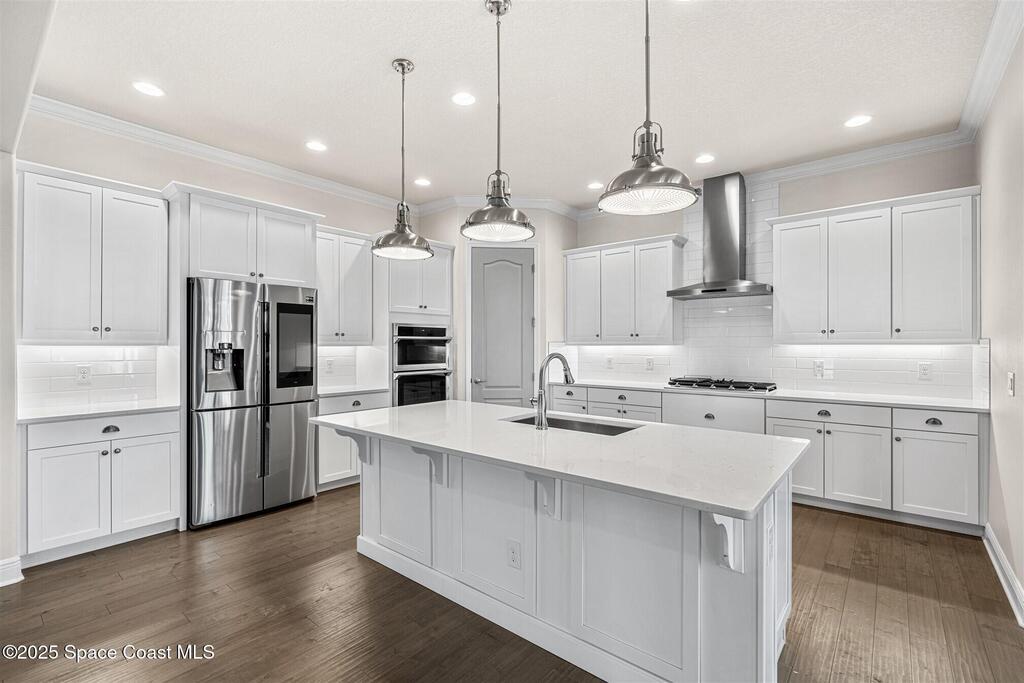 A standout in Viera's sought-after Reeling Park neighborhood, this spectacular 4/5 former model offers over $200K in contemporary upgrades and luxurious living spaces. As you enter through the foyer and pass the office, you're greeted by bright open spaces that draw in soft natural light through the glass front door and windows in the main living spaces. Family gatherings and quiet relaxation are a breeze in the main living space, featuring an electric fireplace and views to the courtyard. The modern kitchen features stainless steel appliances, gas cooktop, vented hood, white cabinetry, quartz counters, and a walk-in pantry. Step outside through the French doors to find a breezy, covered retreat equipped with paver flooring and a summer kitchen, perfect for summertime entertaining. The first-floor primary suite includes an incredible walk-in closet and a spa-like ensuite bathroom with glass and tile shower and soaking tub. . Upstairs, enjoy function and flexibility SEE ''MORE''