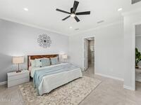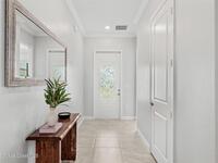 Stunning 4 bedroom, 3 1/2 bath, waterfront home in Bridgewater, Viera's popular gated 55+ resort style community. 3 bedrooms are en-suites, (4th is used as study) making this home perfect for out-of-town guests! This 2-year-old meticulous home is loaded with extras including IMPACT WINDOWS and SLIDERS, crown molding throughout, tile floors (no carpet!), screened lanai, luxury bath package, ceiling fans, pendent lights and 8' doors. White kitchen cabinets with tile backsplash, upgraded sink, faucet, and disposal! Top of the line appliances and undercabinet lighting! Dream laundry room with cabinets and a sink! Oversized primary bedroom and primary bath with a huge walk-in closet with custom built-ins! 20'X21' garage with epoxy floors! Truly turnkey and ready for new owners to move in! Assumable, low interest, VA mortgage! Unbelievable clubhouse w/ heated pool and spa, movie theater, fitness center, coffee lounge, tennis, pickleball! Close to shopping, restaurants, ocean beaches!