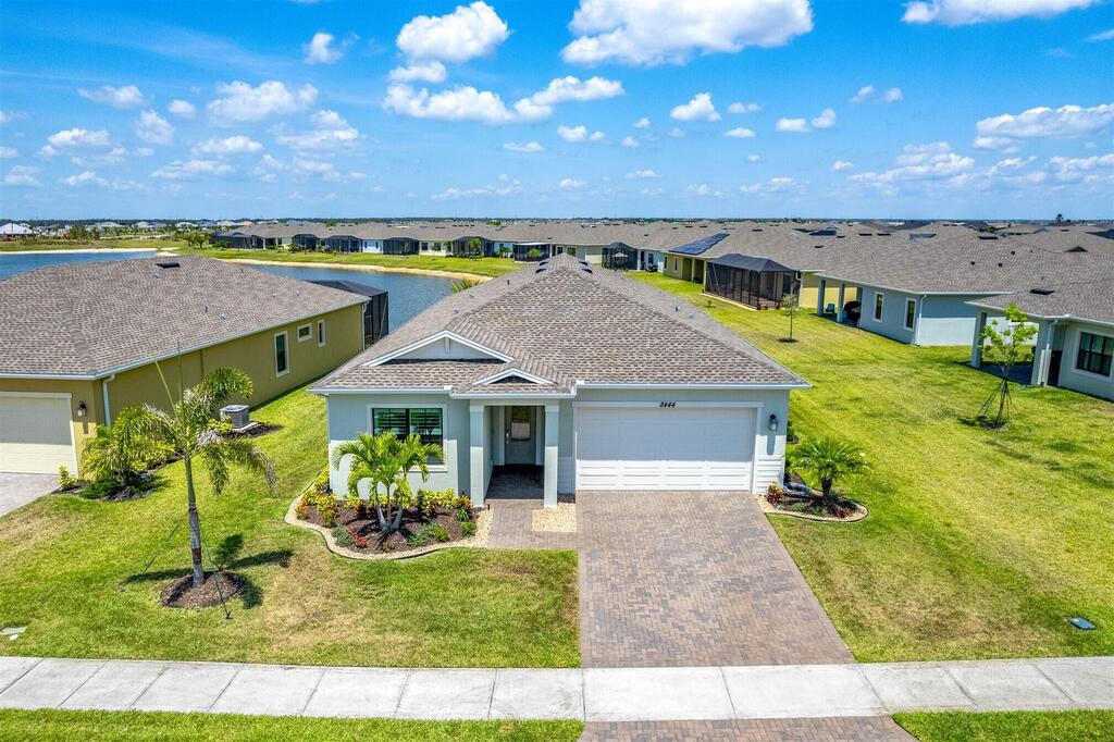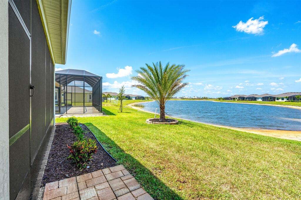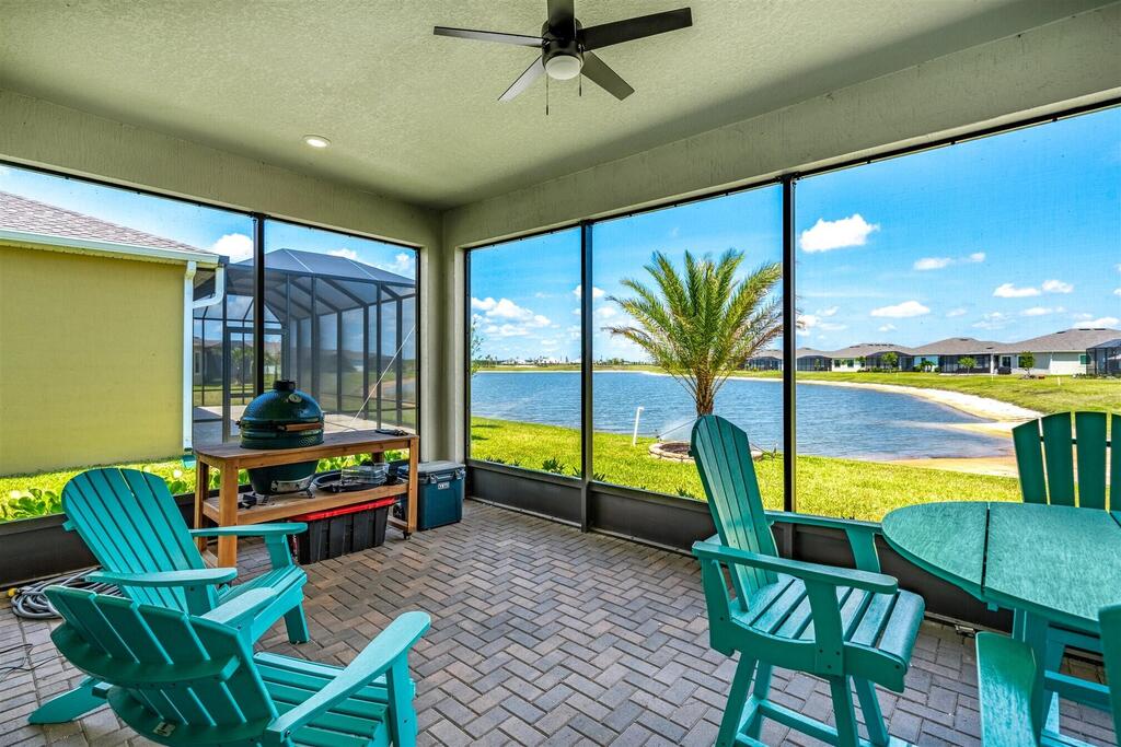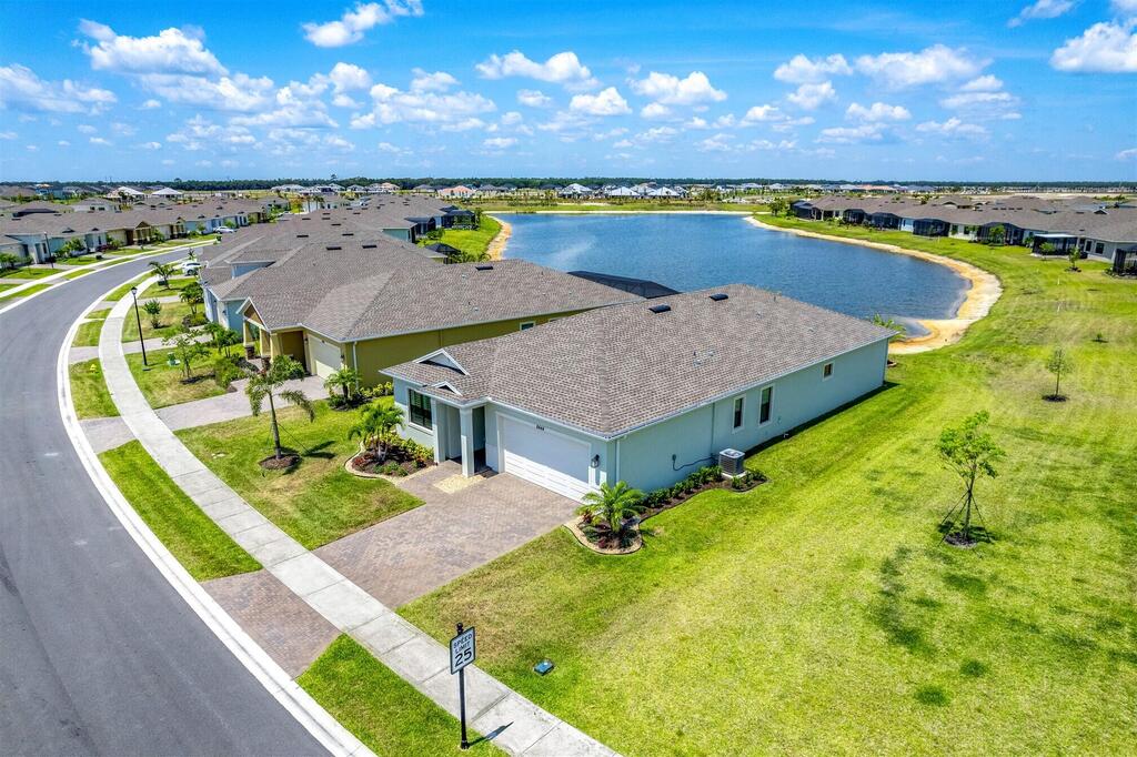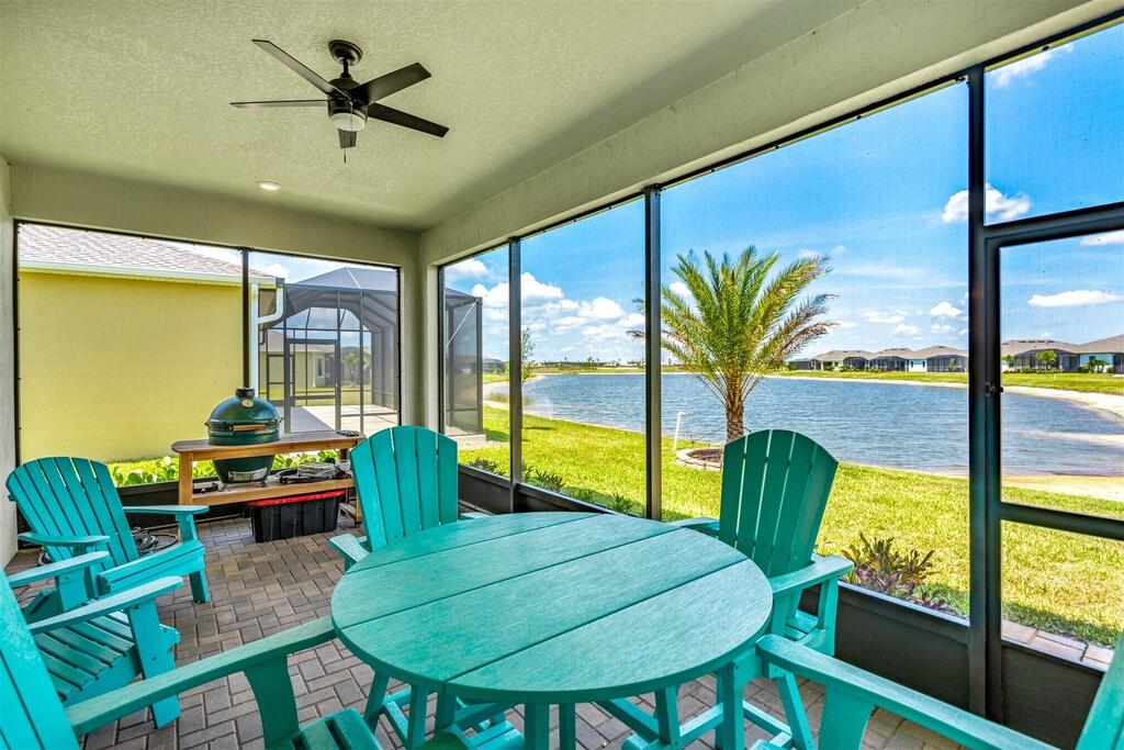 Stunning, two-year-old, 3 bedroom plus study, 3 1/2 bath, waterfront home in Bridgewater, Viera's popular gated 55+ resort style community. All three bedrooms are en-suites, making the Key Largo the most coveted floorplan! This meticulous, barely lived in home is loaded with extras including IMPACT WINDOWS and SLIDERS, plantation shutters and crown molding throughout, tile floors (no carpet!), screened lanai, luxury bath package, LED's in all bedrooms and great room, ceiling fans, pendent lights and 8' doors. Other ''must haves'' include white kitchen cabinets w/glass tile backsplash, quartz counters in kitchen & baths, and laundry room cabinets! Storage galore with 8 closets, plus a walk-in pantry and a 20'X21' garage! Owner added $13,000 in additional landscaping to enhance this impeccable lake front home! Truly turnkey! May also be sold furnished at an added cost. Unbelievable clubhouse w/ heated pool and spa, movie theater, fitness center, coffee lounge, tennis & pickleball.