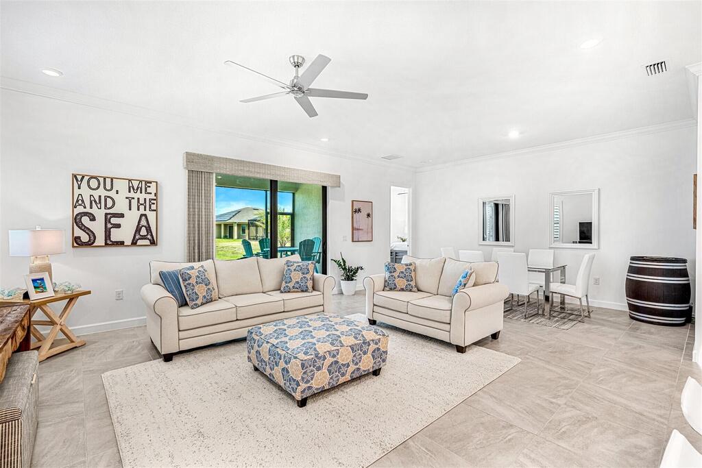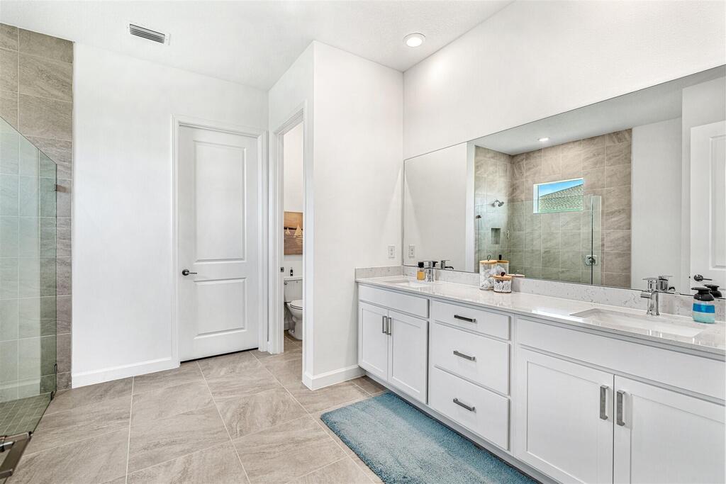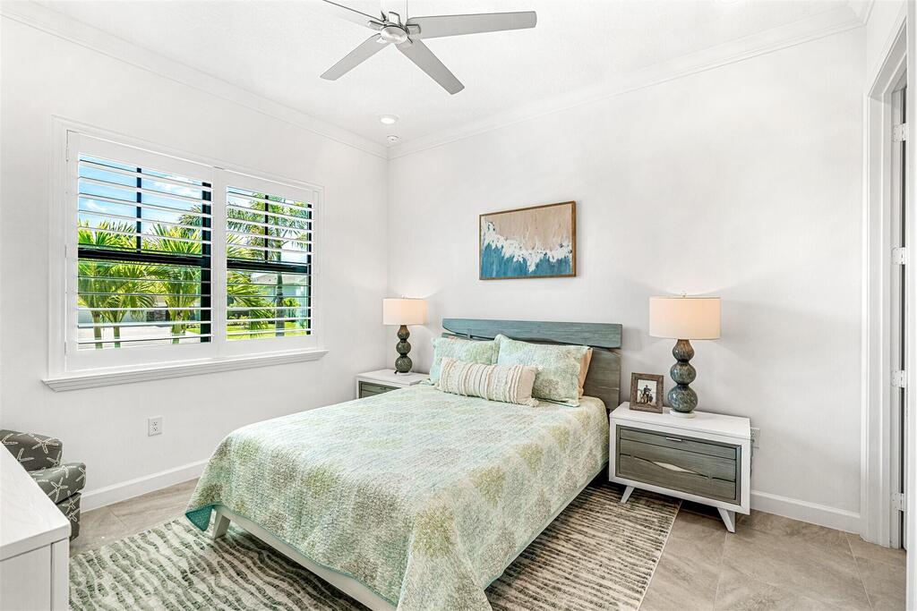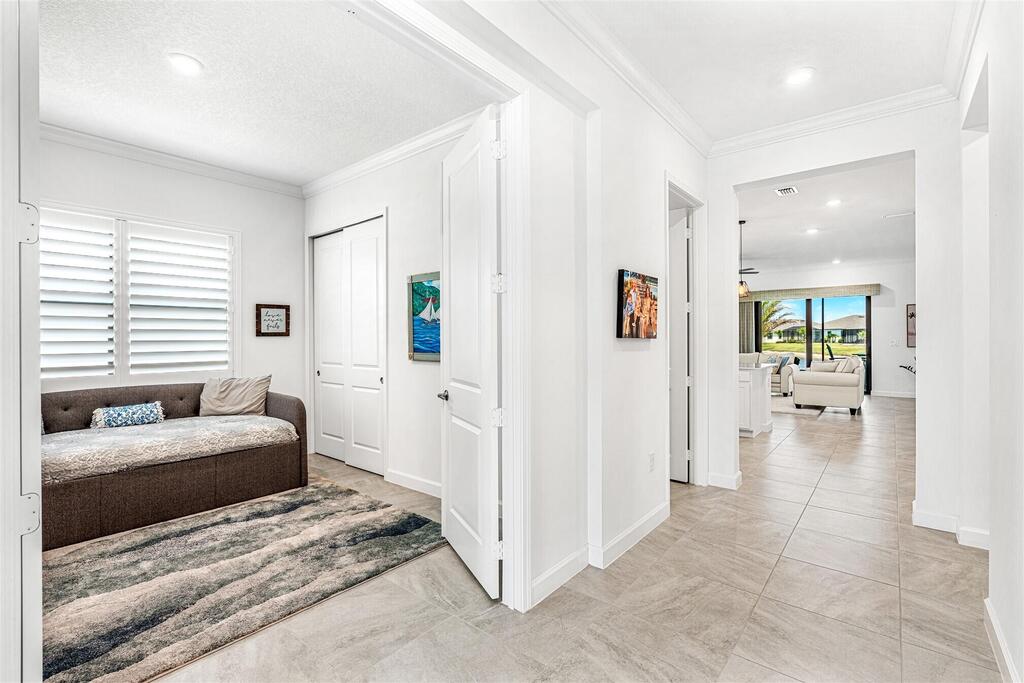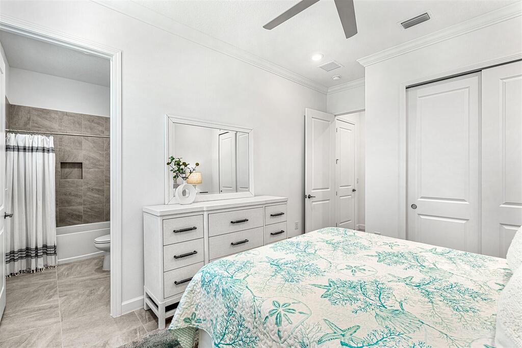 Stunning, two-year-old, 3 bedroom plus study, 3 1/2 bath, waterfront home in Bridgewater, Viera's popular gated 55+ resort style community. All three bedrooms are en-suites, making the Key Largo the most coveted floorplan! This meticulous, barely lived in home is loaded with extras including IMPACT WINDOWS and SLIDERS, plantation shutters and crown molding throughout, tile floors (no carpet!), screened lanai, luxury bath package, LED's in all bedrooms and great room, ceiling fans, pendent lights and 8' doors. Other ''must haves'' include white kitchen cabinets w/glass tile backsplash, quartz counters in kitchen & baths, and laundry room cabinets! Storage galore with 8 closets, plus a walk-in pantry and a 20'X21' garage! Owner added $13,000 in additional landscaping to enhance this impeccable lake front home! Truly turnkey! May also be sold furnished at an added cost. Unbelievable clubhouse w/ heated pool and spa, movie theater, fitness center, coffee lounge, tennis & pickleball.