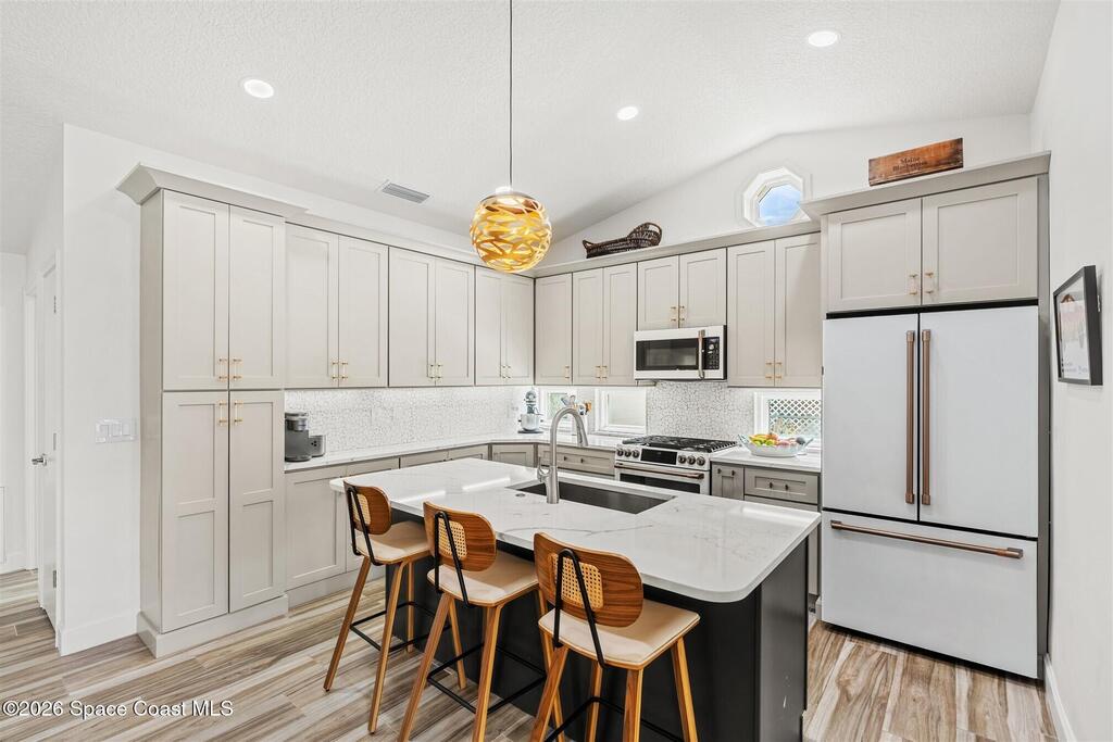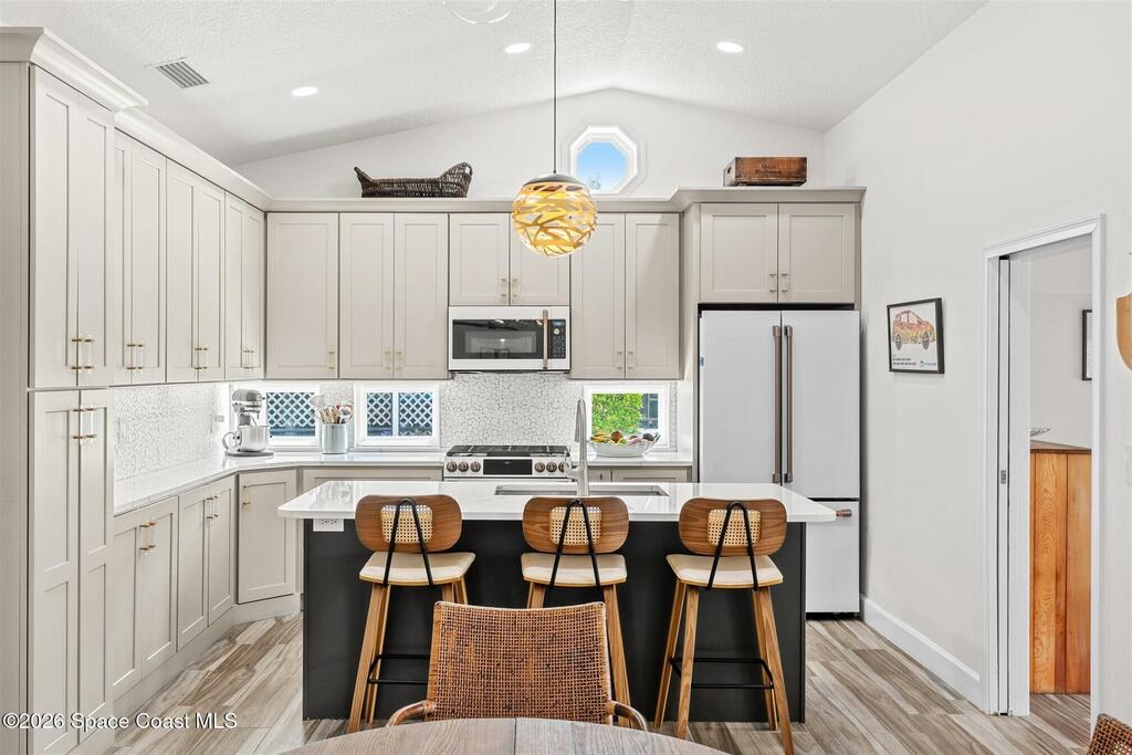 Ceiling Fan(s), Eat-in Kitchen, Kitchen Island, Open Floorplan, Primary Bathroom - Shower No Tub, Primary Downstairs, Vaulted Ceiling(s), and Walk-In Closet(s)
