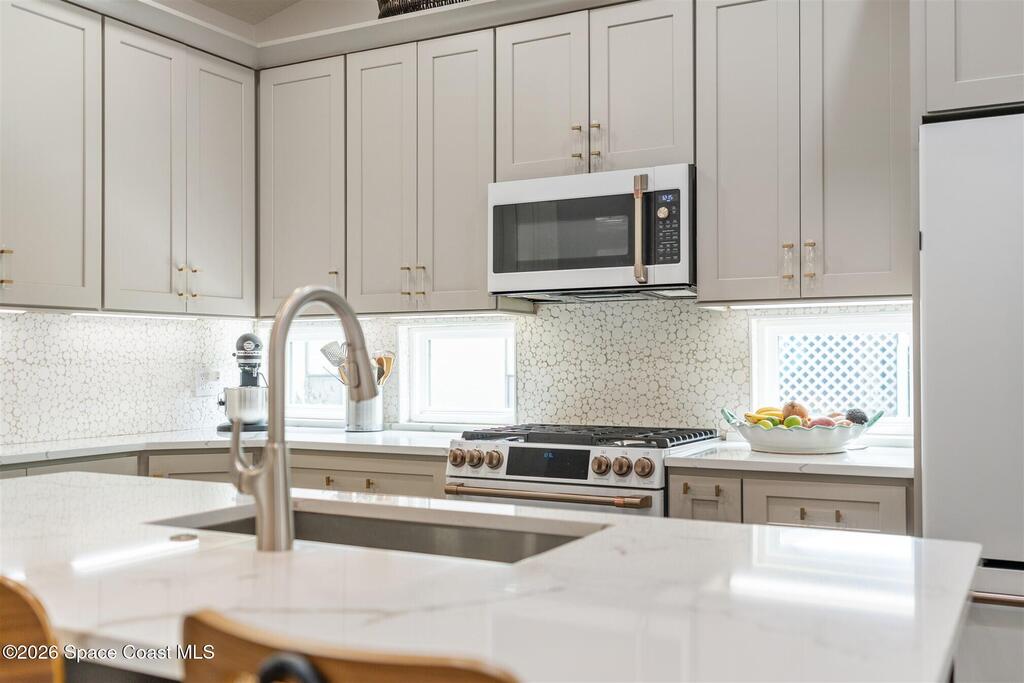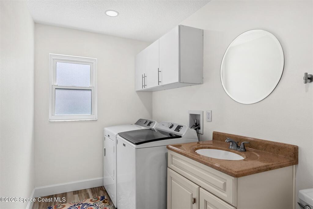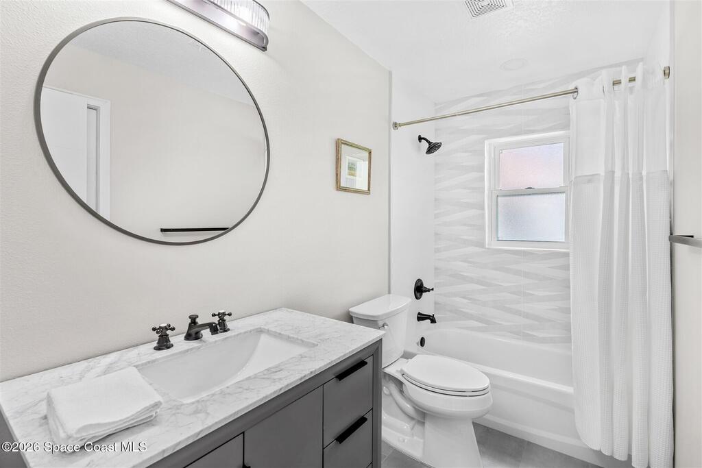 SELLER HAS ASSUMABLE VA MORTGAGE AT 2.25%. Located in the highly sought-after Crystal Lake community of Suntree, this fully remodeled, move-in ready 3-bed, 2.5 bath pool home with a 2-car garage offers the perfect combination of modern upgrades, thoughtful design, and long-term peace of mind. From the moment you arrive, the charming paved front courtyard creates a warm and inviting entry, setting the tone for the quality found throughout. Inside, the open floor plan is filled with natural light and enhanced by new flooring throughout, updated baseboards, recessed LED lighting, and designer ceiling fans. The spacious living area features a cozy gas fireplace and flows seamlessly into the dining and kitchen spaces, making it ideal for both everyday living and entertaining. The beautifully updated kitchen serves as the heart of the home, showcasing quartz countertops, new cabinetry, a stylish backsplash, and high-end appliances. A new washer and dryer add convenience, while (more)