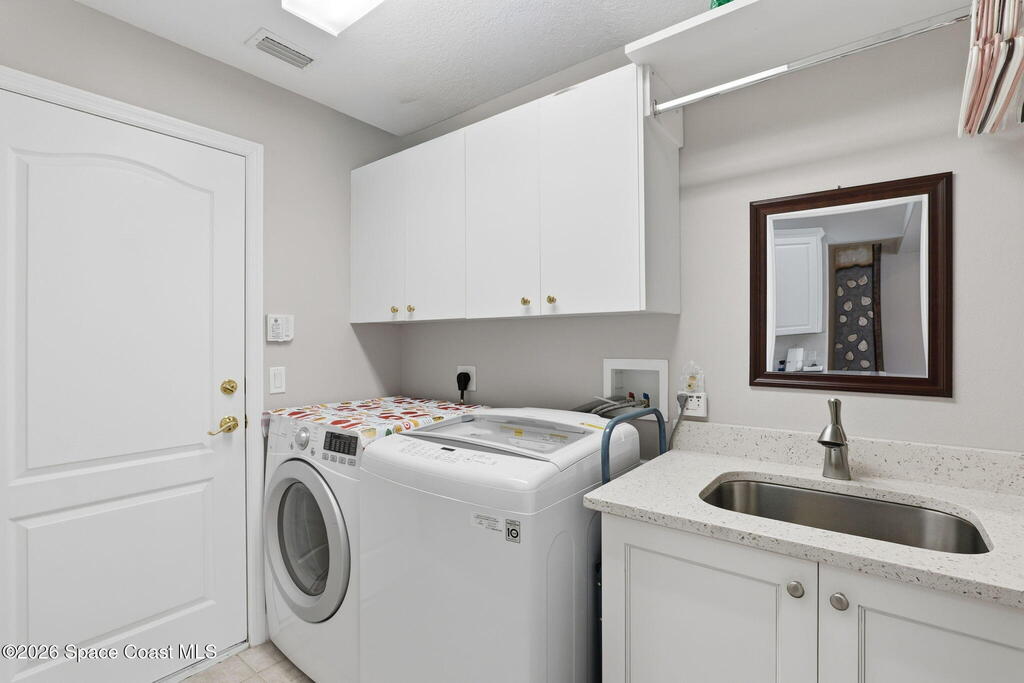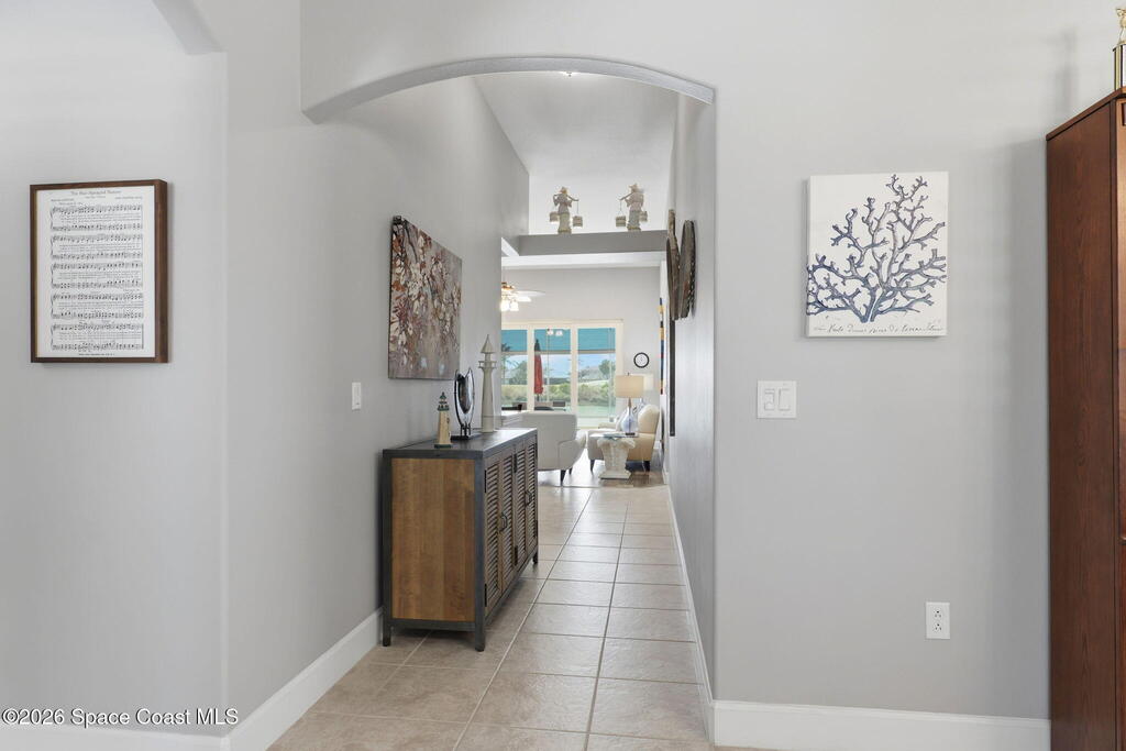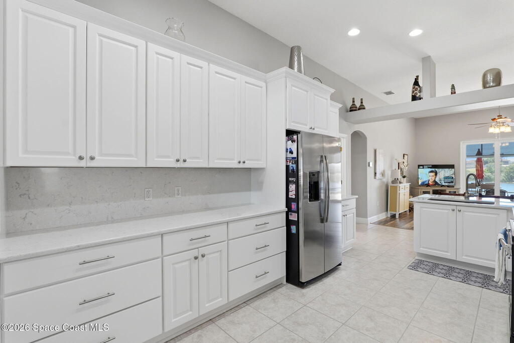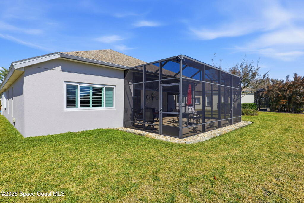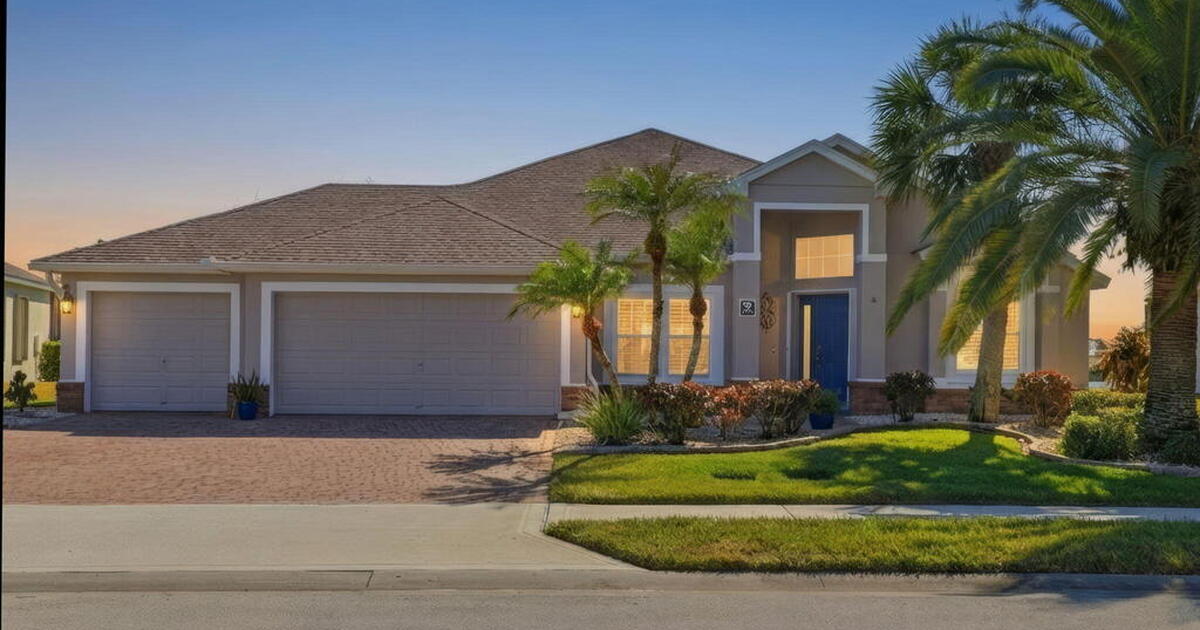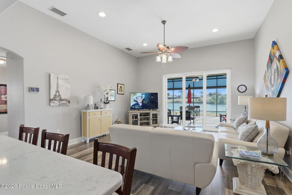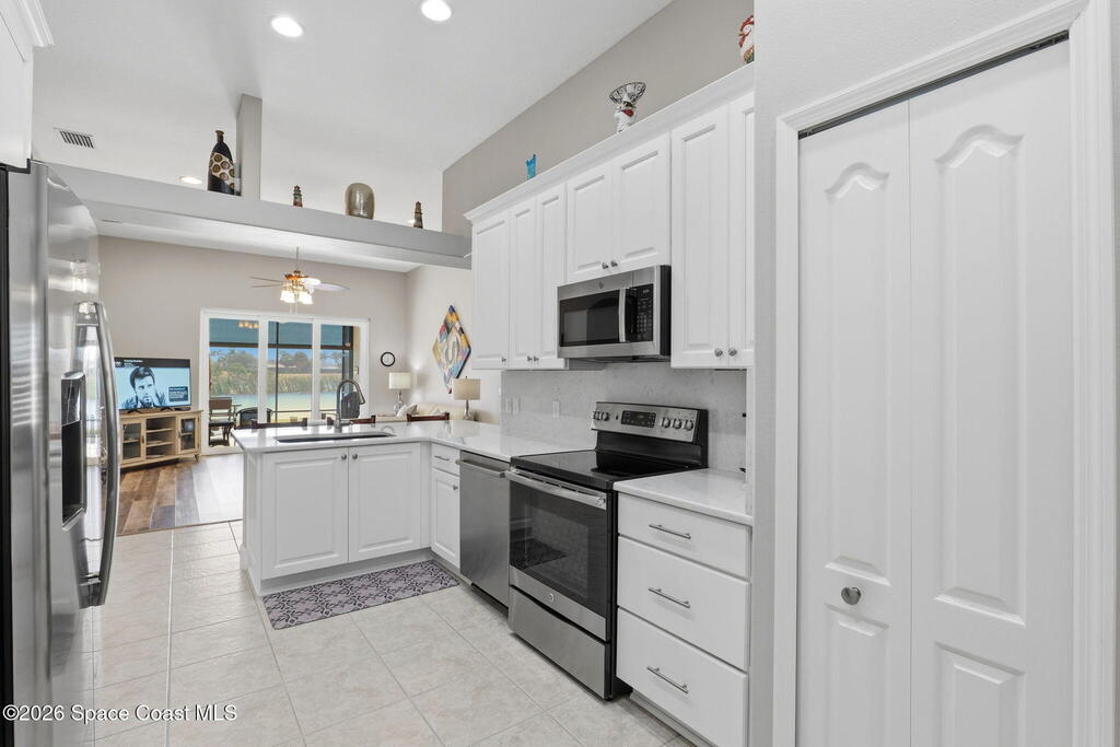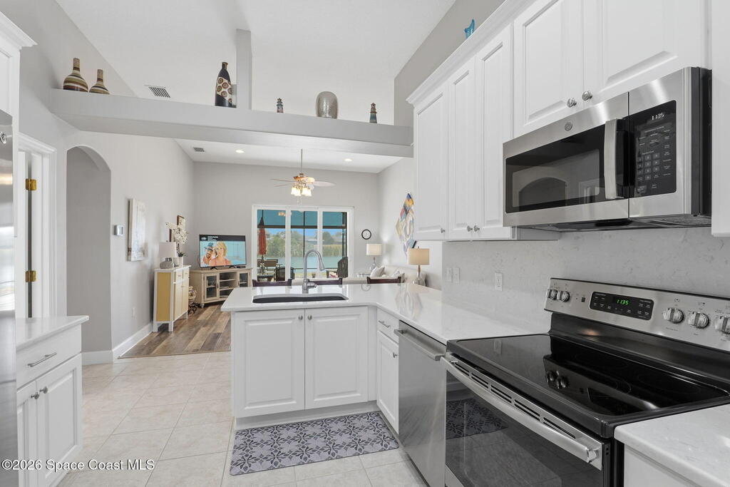 Welcome to this beautifully maintained one of a kind 3-bedroom, 2-bath Estate home located in sought after 55+ Heritage Isle Community. Enjoy serene waterfront and golf course views from your backyard and abundant natural light throughout the home. The updated kitchen and bathrooms feature modern finishes such as quartz countertops, under cabinet lighting and soft close cabinet doors. Tile and laminate flooring throughout home complemented by impact glass windows enhanced with thoughtfully appointed plantation shutters for peace of mind and energy efficiency. Spacious three car garage offers ample storage and convenience. Gain the confidence you deserve with professionally installed hurricane screens, offering quick and convenient storm protection with a touch of a button while enjoying shade and privacy the rest of the year. This home combines comfort, style, and low maintenance living in a prime location perfect for relaxing and entertaining.