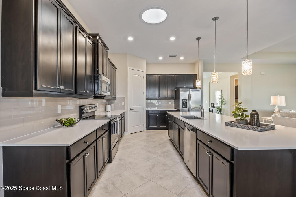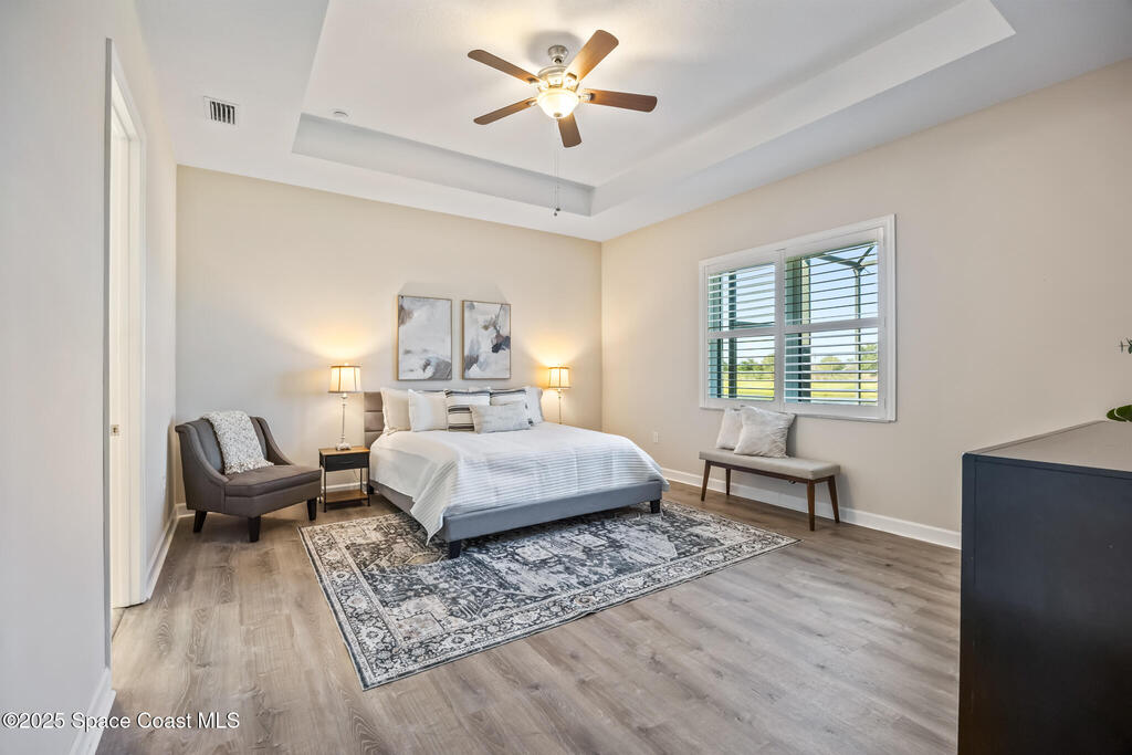 Welcome to this stunning Summerville floor plan, where modern comfort meets true Florida living. Designed for effortless entertaining & everyday enjoyment, this home offers a bright, open layout filled with natural sunlight. Step inside to find a spacious great room seamlessly connected to the dining area & a chef-inspired kitchen featuring an expansive island, sleek modern appliances, & ample cabinetry. Just beyond the great room, sliding glass doors lead to your covered oversized lanai with supreme lake views. This thoughtful layout includes a second master guest suite, providing a private retreat for visiting family & friends, complete with its own full bathroom. Across the foyer, you'll find an office or 4th bedroom, an additional guest bedroom, and a second full bath. The primary master suite is a true sanctuary, offering a spacious bedroom, dual walk-in closets enhanced with custom shelving and motion-sensor lighting, and a