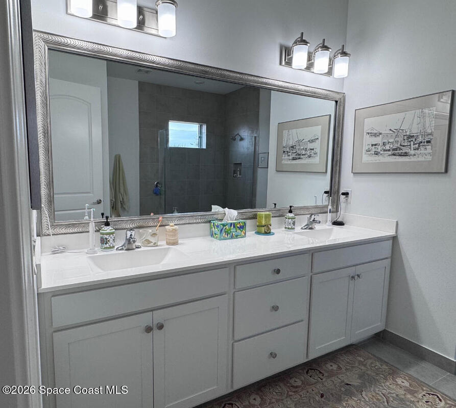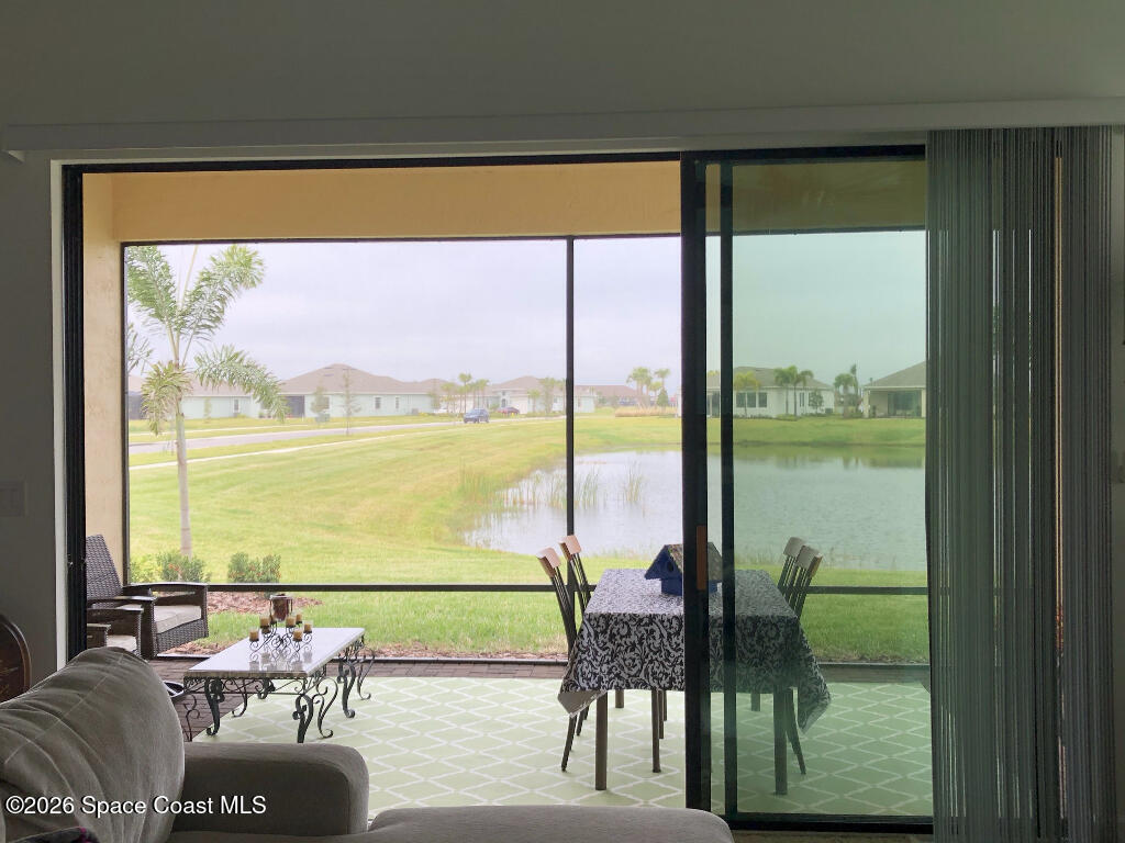 Welcome home to relaxed waterfront living in this stunning 3-bedroom retreat nestled within a premier 55+ Central Viera community. Sun-filled open spaces, a den and three and one-half baths create an easy, comfortable flow, while the screened lanai invites quiet mornings and sunset evenings by the water. Move-in ready with extras already in place - custom mirrors in all bathrooms, custom built-in closet, accordion storm shutters, hurricane screens, and a whole home GFI protector. A separate laundry room with storage and a utility sink, as well as a two-car garage, ensures that your home is everything you ever wanted. Resort-style amenities, friendly neighbors, and a vibrant social calendar make every day feel connected, carefree, and truly home.
