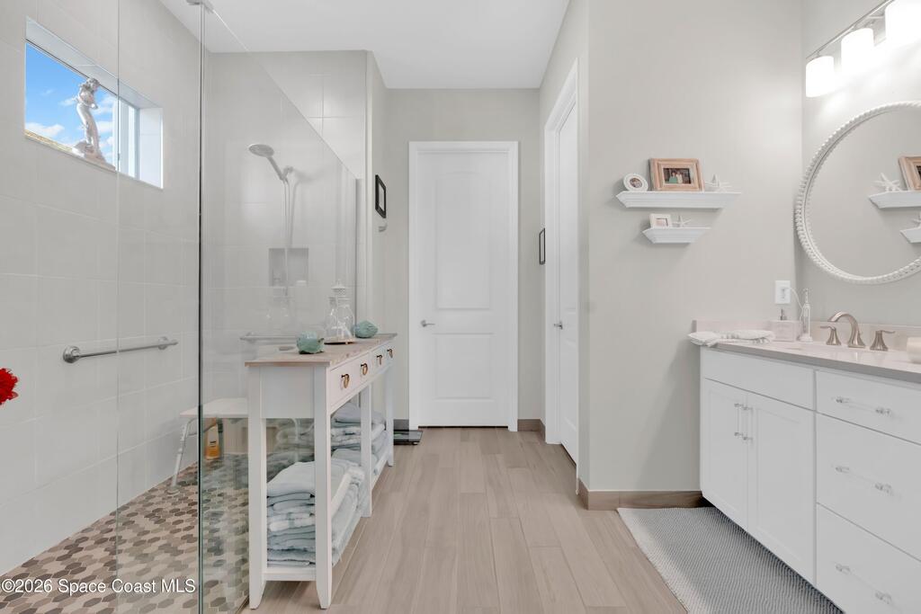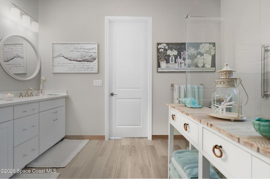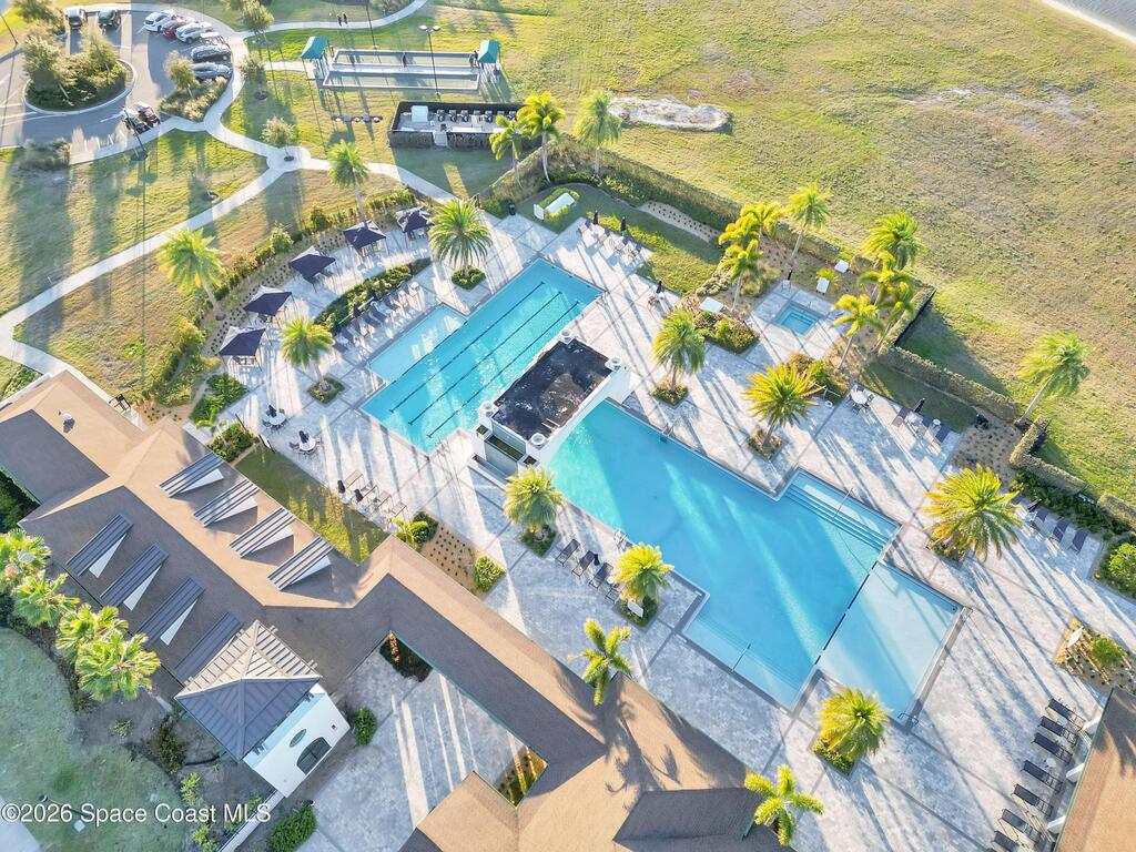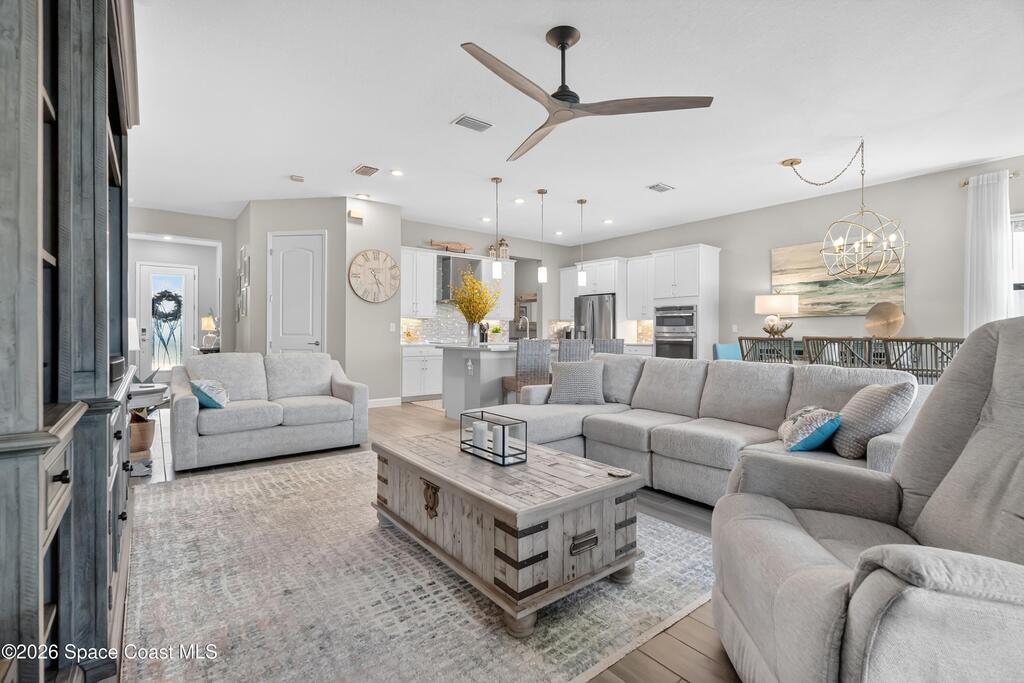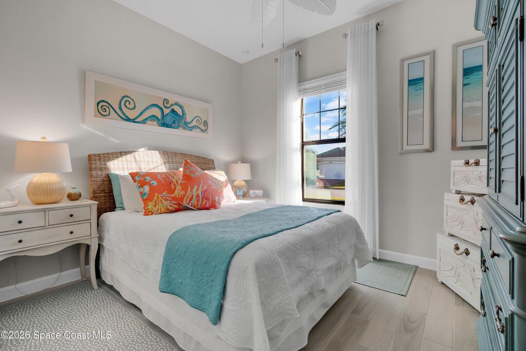 Waterfront Luxury Defined in this rare single-story gem, boasting one of the most expansive lake views in the community. Forget maintenance; this home is about pure enjoyment. The star of the show is the massive, upgraded paver lanai--an expensive, extended outdoor living space featuring soaring ceilings and a sleek electronic hurricane screen for effortless protection because no one wants to move lawn furniture. Inside, the ''no carpet'' lifestyle shines with premium light wood-look tile throughout. The kitchen is a showstopper: quartz countertops, 42-inch designer cabinets, a massive social island, and high-end stainless appliances. Retreat to a private owner's suite or utilize the flexible 3rd bedroom with French doors as your executive office or hobby sanctuary. From the whimsical starfish accents in the laundry to the resort-style amenities & included lawn care, every detail is designed for high-end, low-stress living. This is the upgraded waterfront retreat you've been waiting for.