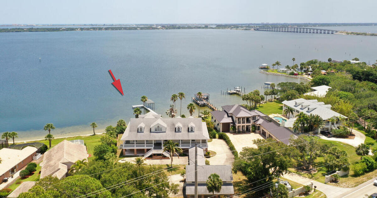 Discover the ultimate waterfront estate on the Indian River, blending luxury and versatility across three stories. Expansive 8-bedroom, 7-bath home features 2 private suites on the first floor w/ multiple kitchens, perfect for multi-generational living or entertaining. Grand great room and gourmet kitchen with massive island flood the space with natural light + river views. Solid oak cabinetry and floors. New roof 2016, New dock 2019. 3 New A/Cs in 2021. Primary suite boasts a large bathtub + separate shower, while the 3rd floor offers 3,000 sq ft of customizable space--ideal for a primary retreat or office. A wrap-around balcony provides breathtaking vistas and seamless indoor-outdoor living. Situated on over an acre w/ 135 ft of river front. Enjoy outdoor kitchens, a heated pool, and ample parking in the attached and detached garages. Conveniently located near beaches, I-95, Patrick Space Force Base, Viera shops and fine dining.