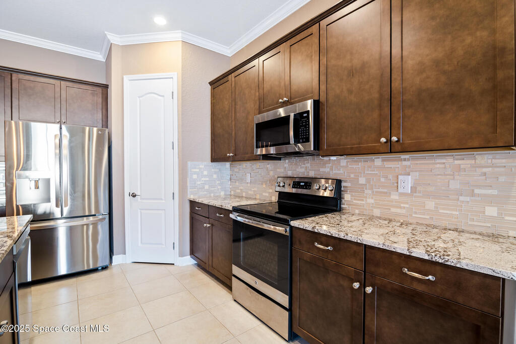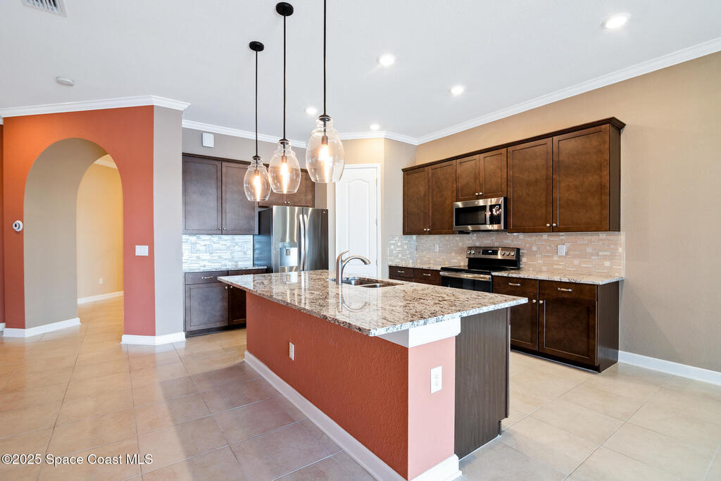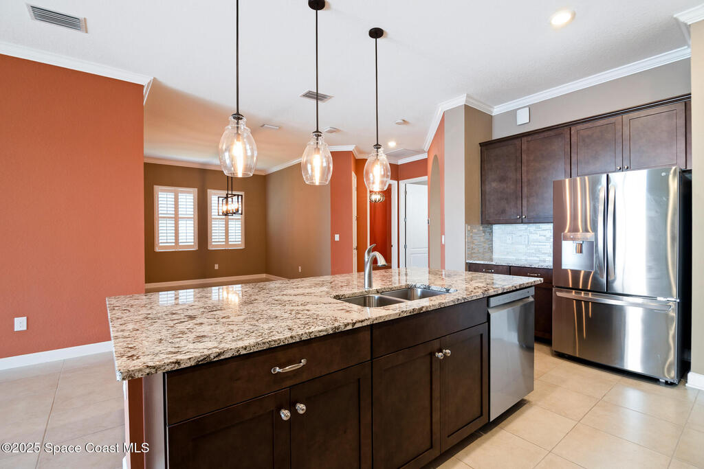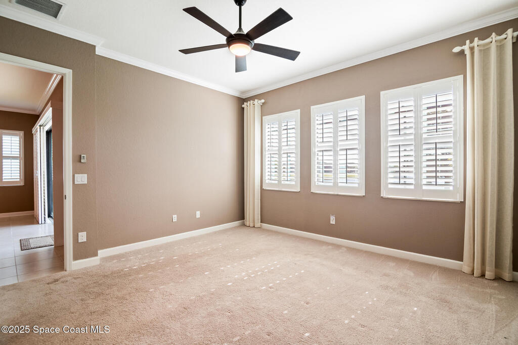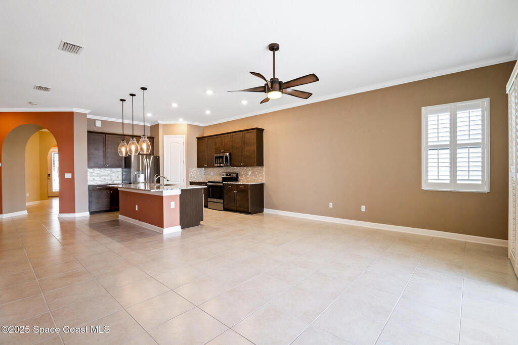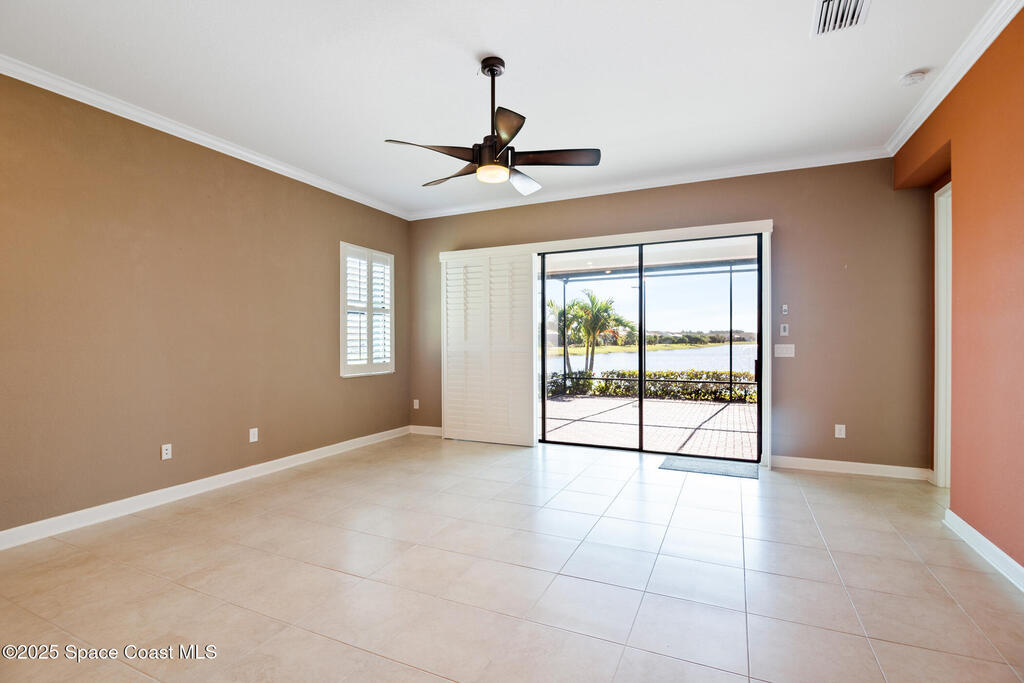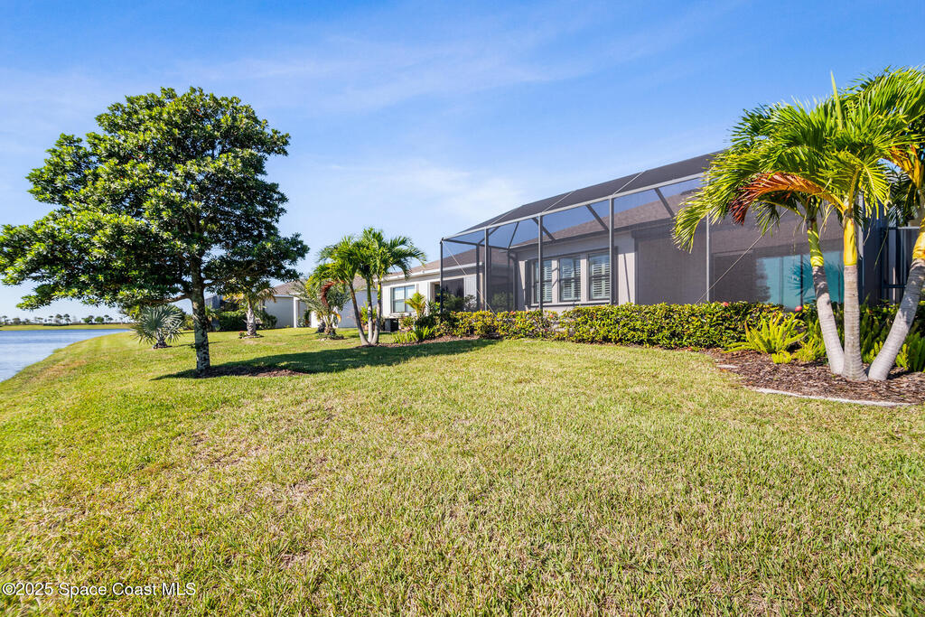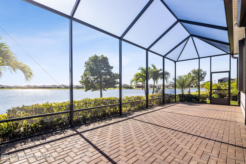 Escape to Bridgewater , Viera's Premier 55+ Gated Community!Experience luxury and relaxation in this beautifully upgraded one-story home featuring long lake views and an extended screened lanai. Inside, enjoy crown molding, arched doorways, plantation shutters, pendant lighting, and 10' ceilings that create an open, elegant feel. The kitchen boasts granite countertops, a large island, new stainless steel appliances, and abundant storage. The primary suite offers two walk-in closets, a no-step shower, and plenty of space for comfort. Additional highlights include a water treatment system, accordion shutters, electric roll-down hurricane screens, and maintenance-free living for total peace of mind. Bridgewater is a golf cart-friendly community offering resort-style amenities : pool, gym, yoga studio, movie theater, pickleball, and tennis. Come see why Bridgewater is the ultimate destination for 55+ living!