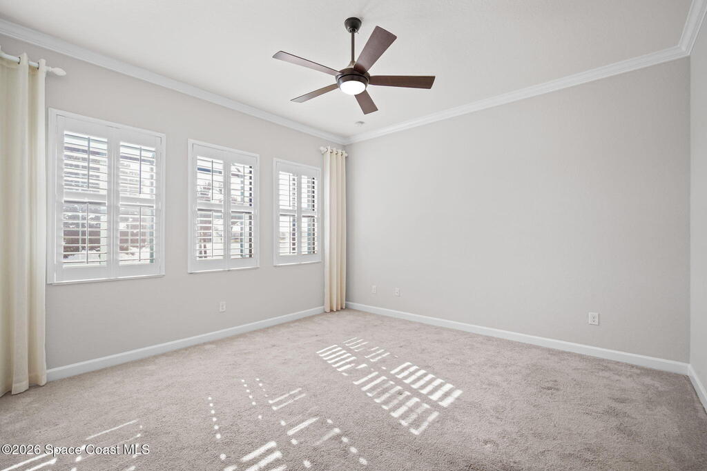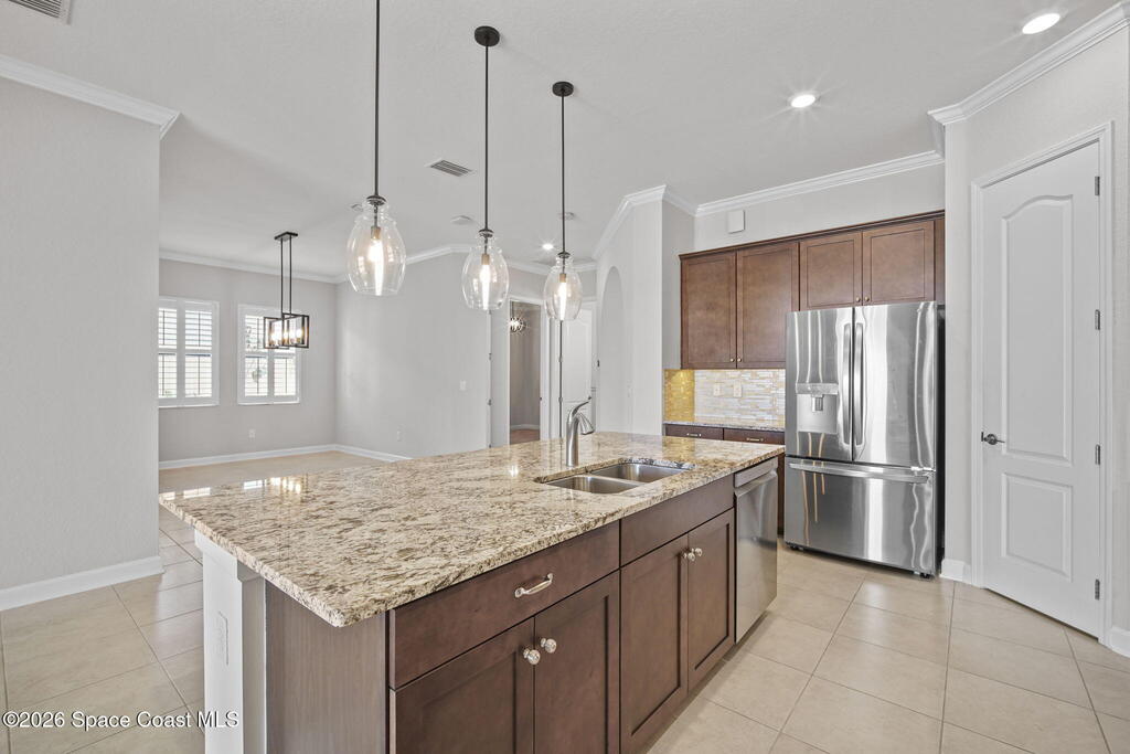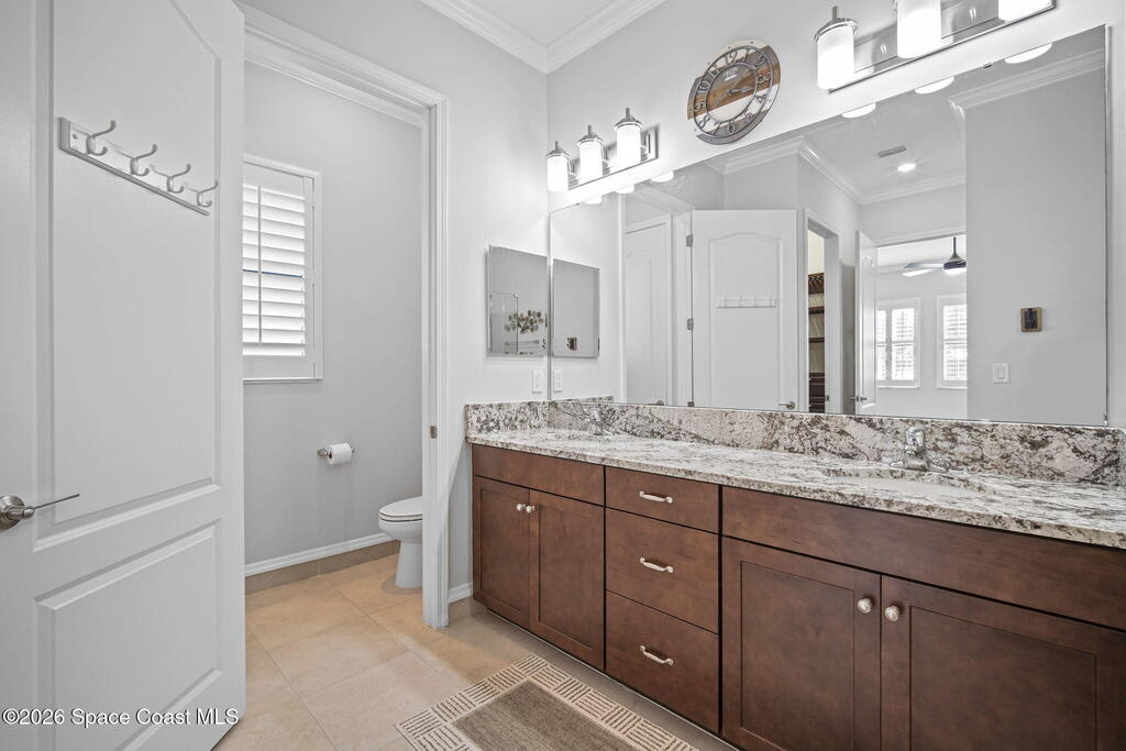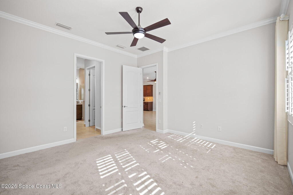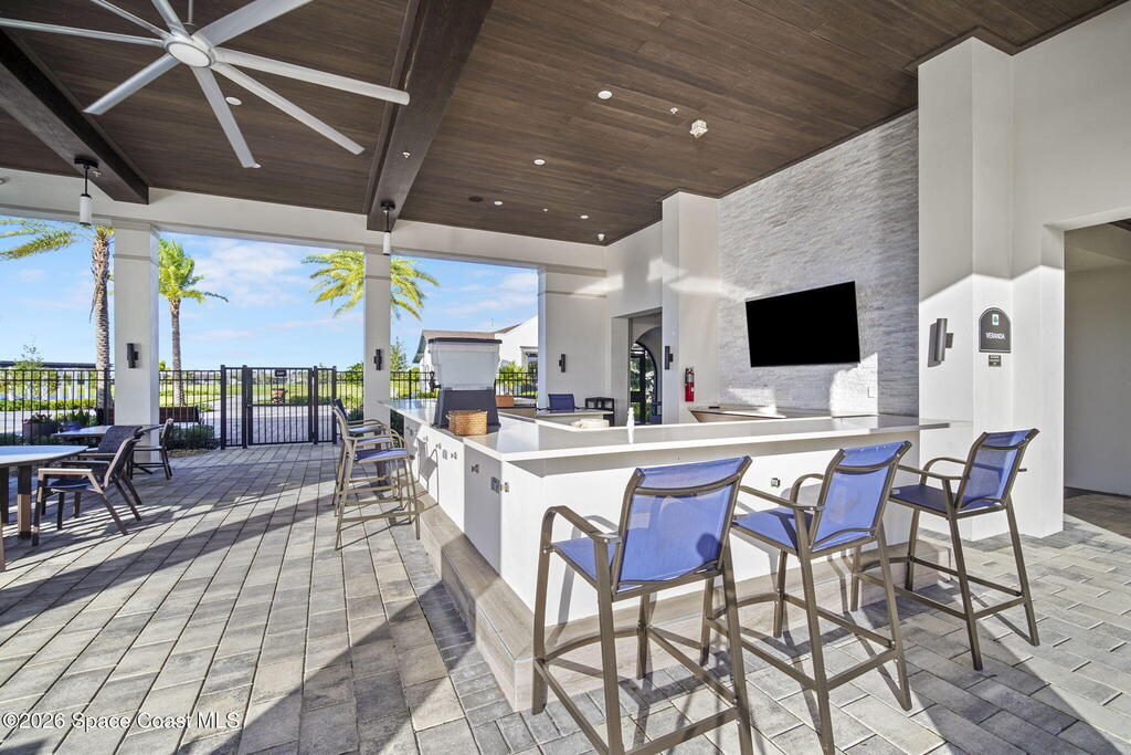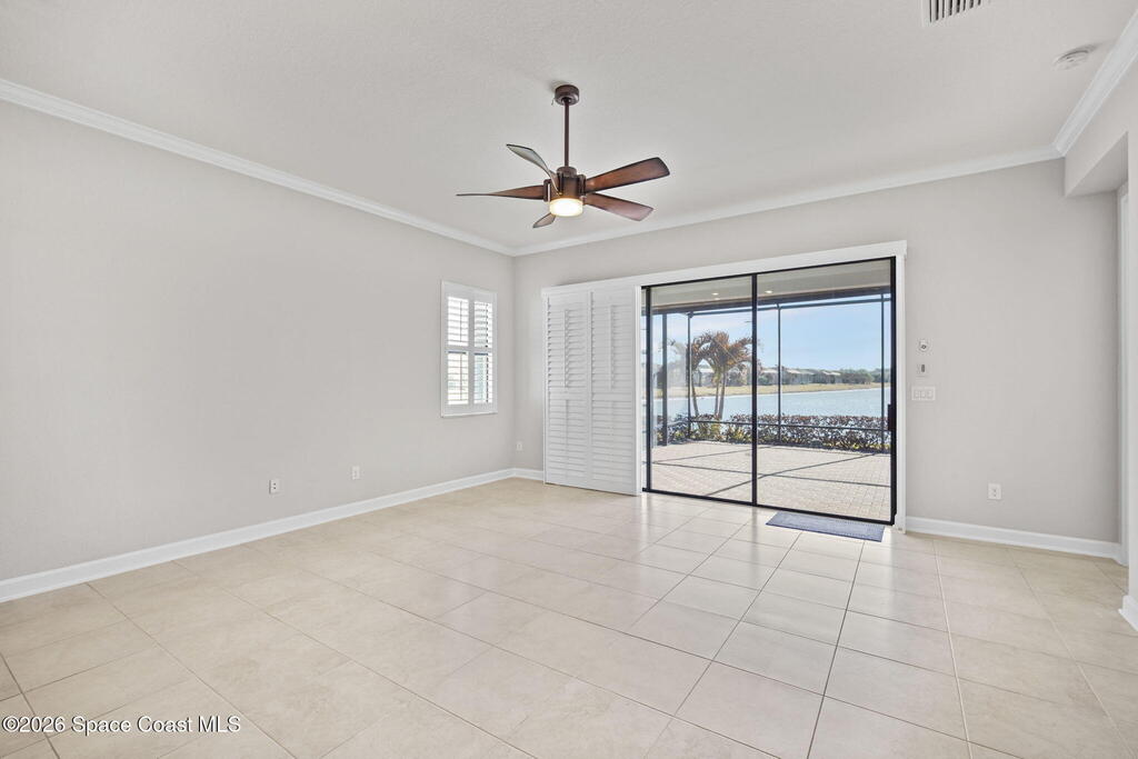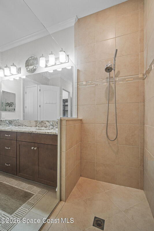 Welcome to Bridgewater at Viera, a premier 55+ gated community! This upgraded one-story home offers maintenance-free living with long pond views and an extended screened lanai.Inside features include fresh interior paint, epoxy floors in garage, 10-ft ceilings, 8-ft doors, crown molding, plantation shutters, and pendant lighting. The kitchen boasts granite countertops, a large island, new stainless steel appliances, and a walk-in pantry.The primary suite offers dual sinks, a walk-in tile shower, and His & Hers walk-in closets. Additional upgrades include a whole-home water filtration system, built-in accordion shutters, and electric roll-down hurricane screens for lanai.Enjoy resort-style amenities including a pool, fitness center, yoga studio, movie theater, pickleball, tennis, and walking paths--all in a golf-cart-friendly community.Come see why Bridgewater is the perfect place for 55+ living!