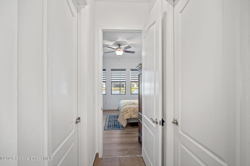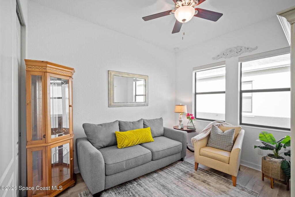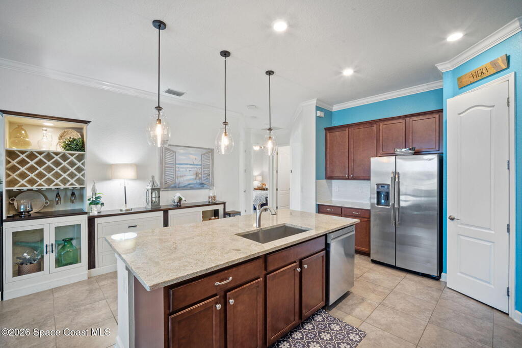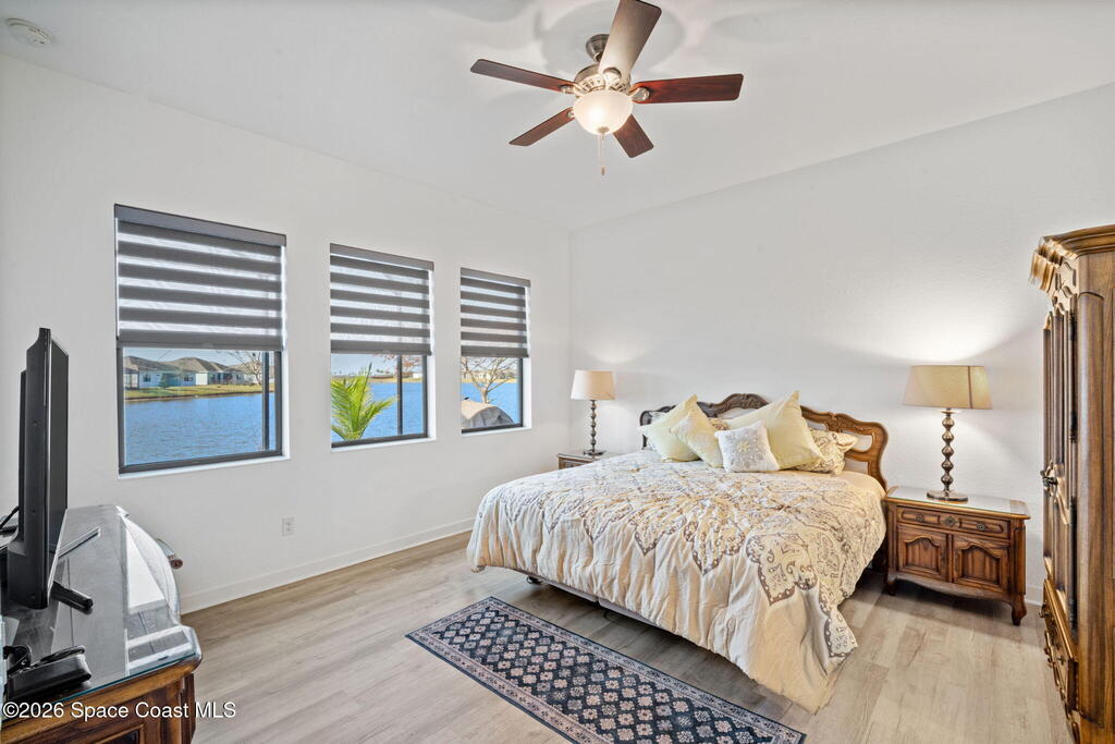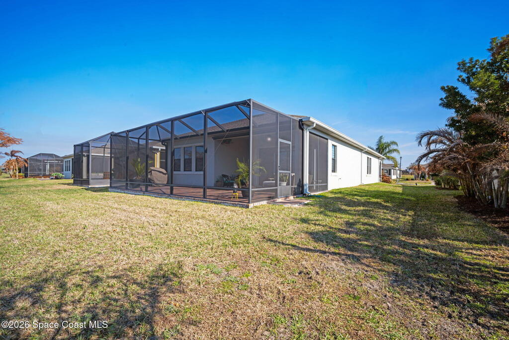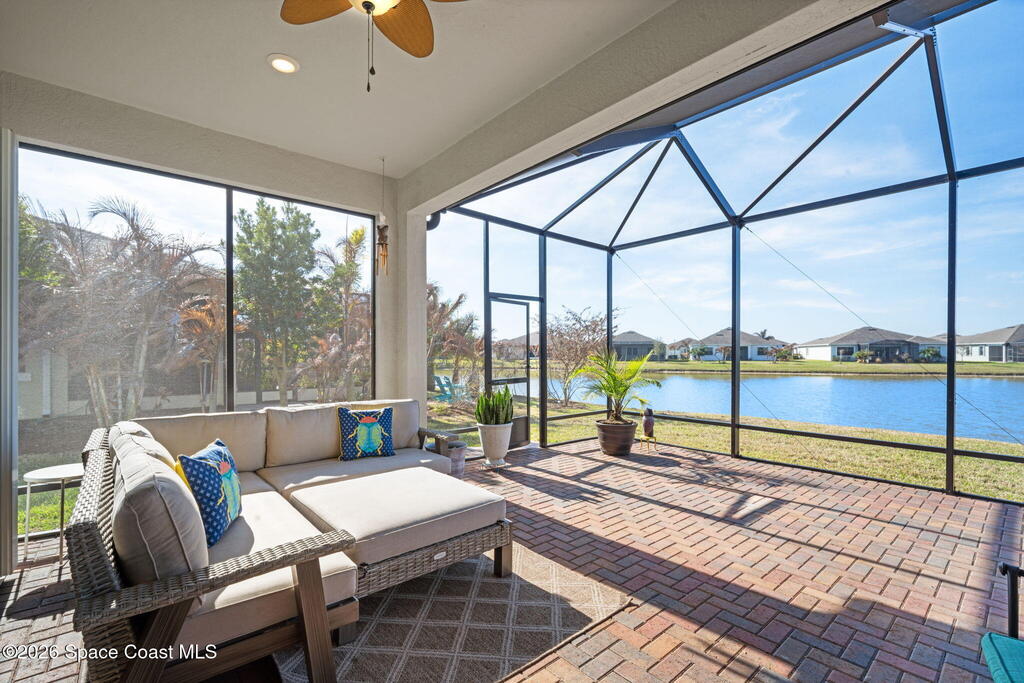 Welcome to Bridgewater at Viera, a premier 55+ gated community! This upgraded one-story home offers maintenance-free living with long pond views and an extended screened lanai.Inside features include a formal dining or formal living room, 10-ft ceilings, 8-ft doors, crown molding, and pendant lighting. The kitchen features premium granite countertops, backsplash, a large island, stainless steel appliances, and a walk-in pantry.The primary suite offers dual sinks, a walk-in tile shower, and His & Hers walk-in closets.Enjoy resort-style amenities including a pool, fitness center, Aerobic room, movie theater, pickleball, tennis, and walking paths--all in a golf-cart-friendly community.Come see why Bridgewater is the perfect place for 55+ living!