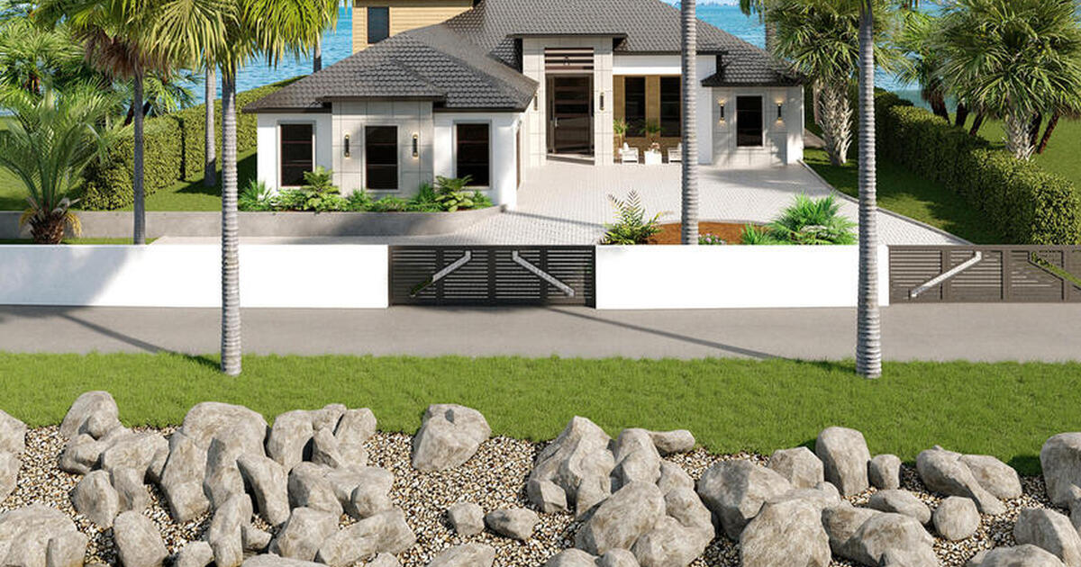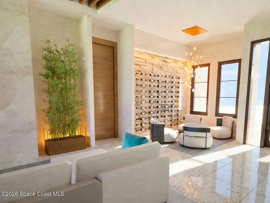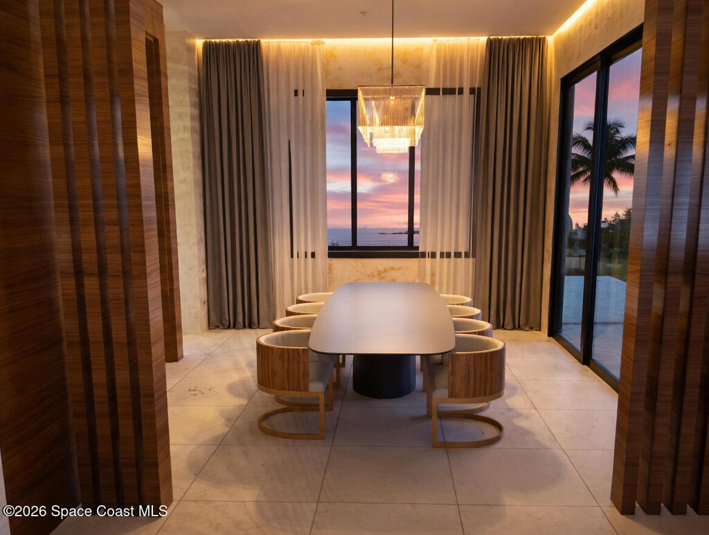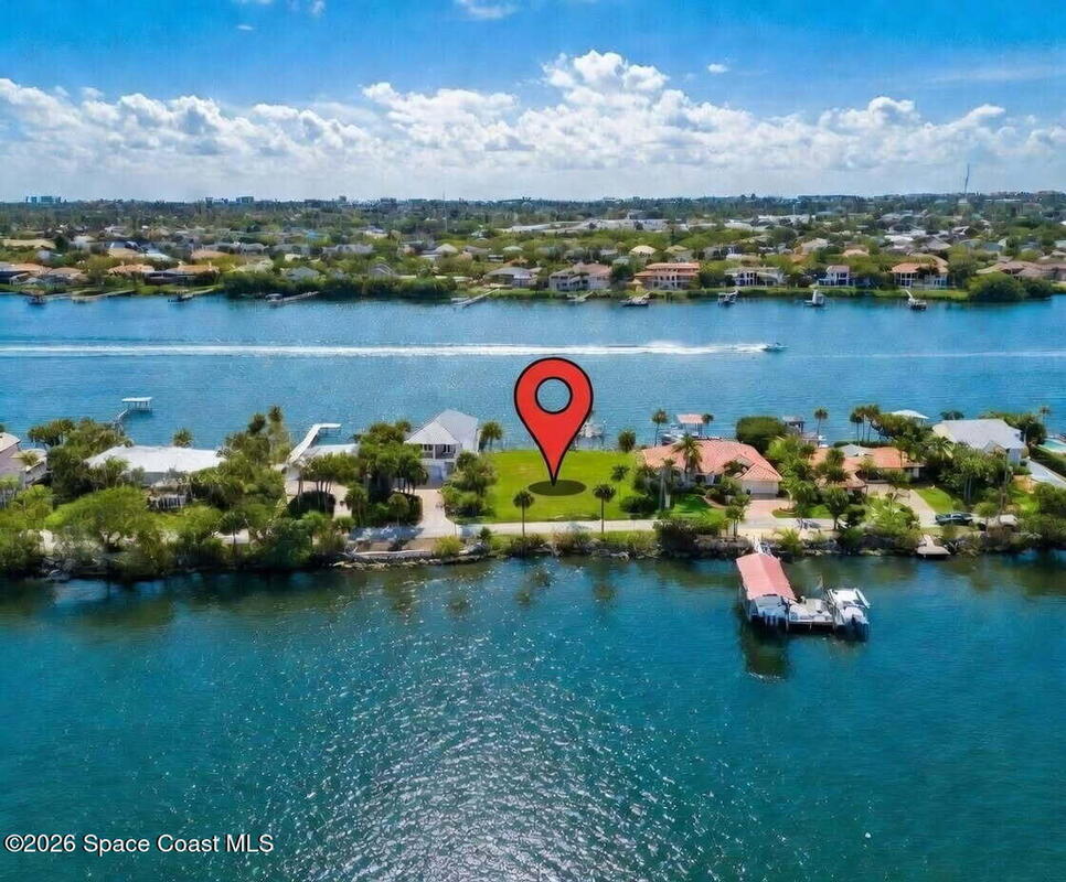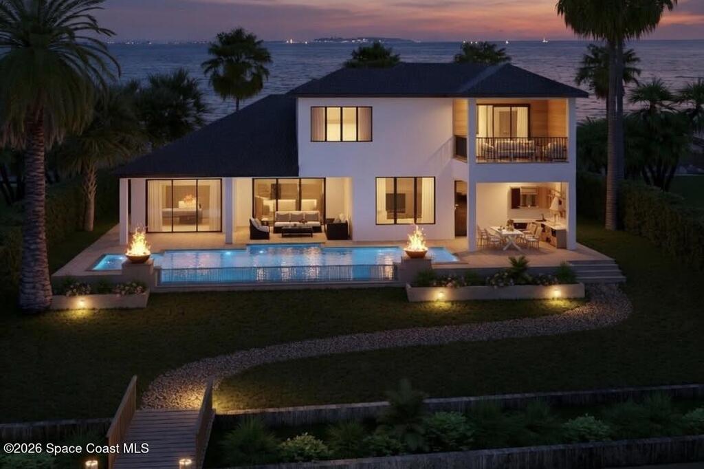 This extraordinary brand-new luxury waterfront estate sits along the prestigious S. Tropical Trail on Florida's Space Coast, offering rare river to river deep water frontage. Elevated on a natural coquina bluff at 10ft, it delivers sweeping Indian River views to the front and Banana River vistas to the rear-perfect for sunrise and sunset experiences daily. The sophisticated two story open concept design features a dramatic 10' pivot entry door, expansive walls of impact glass framing the water while giving you the safety and security of the most modern building codes in this new home. Soaring tray ceilings create a feel of elegance and airy ambiance. The gourmet kitchen shines with premium Dacor appliances, Bespoke cabinetry, a large central island and hidden walk in pantry.The exquisite Madreperola quartzite countertops and full wrapping backsplash exhibit creamy beige tones with soft pearlescent undertones for timeless opulence. A luxurious first floor primary suite