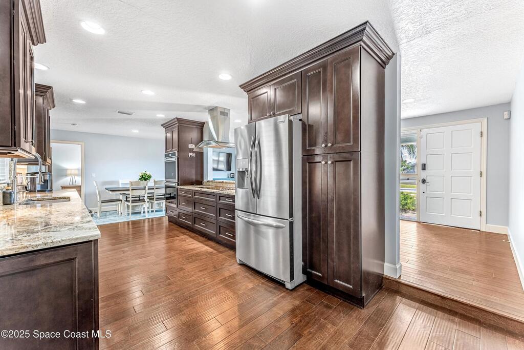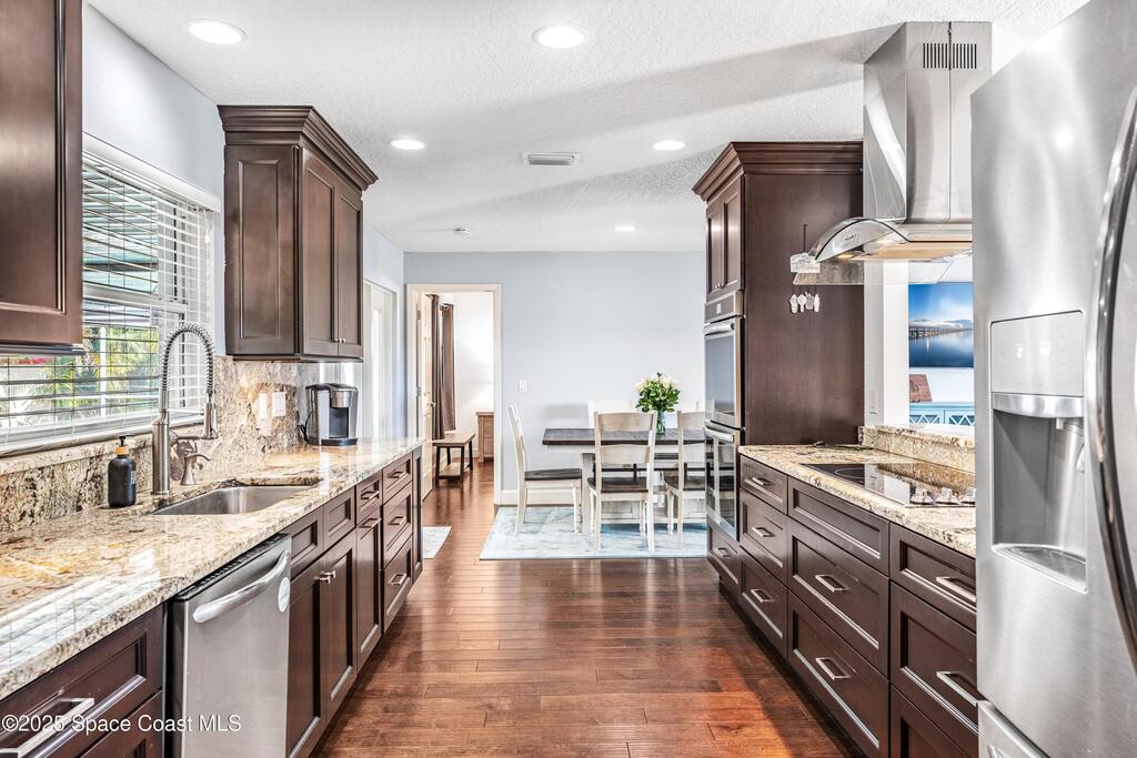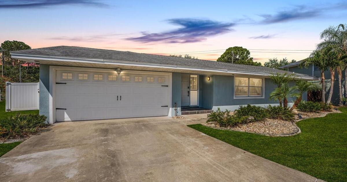 Villa De Palmas! Well appointed home fully remodeled Pool home featuring 4 bed/2 bath and a fenced in Private Yard Waterproof, stain resistant wood floors in the main living spaces and primary suite. HUGE kitchen has soft close, wood shaker cabinets, upgraded hardware, electric range overlooking the family room, double oven, granite countertops with matching backsplash, and more! Primary suite with double sinks and walk-in shower with decorative tile. Massive back yard, with brand new white vinyl privacy fence, and workshop w/ electricity and water. The screened pool has hookups for electric heat (if desired), and the oversized patio is perfect for gatherings and parties! Heated Pool and so much more located close to Shopping, Beaches ,Golf and more!