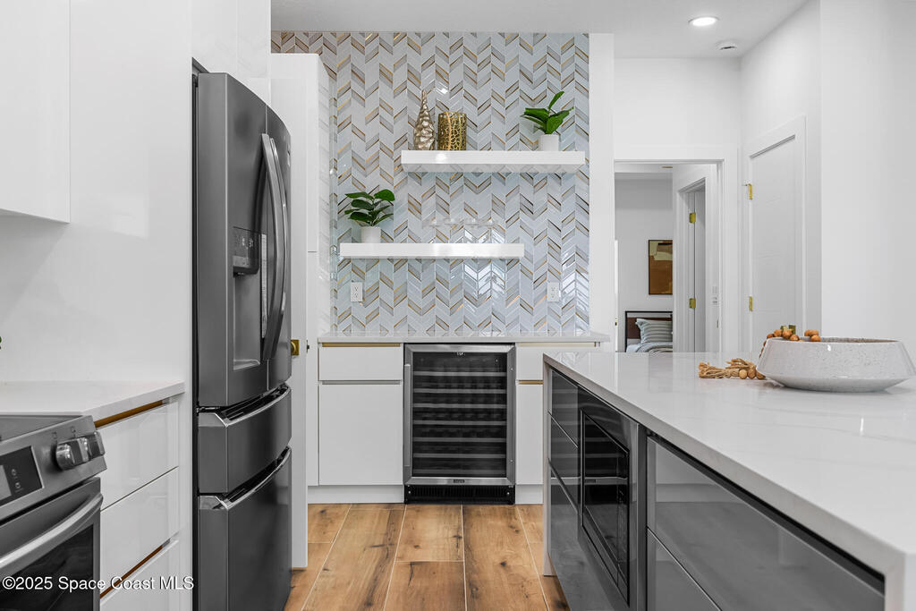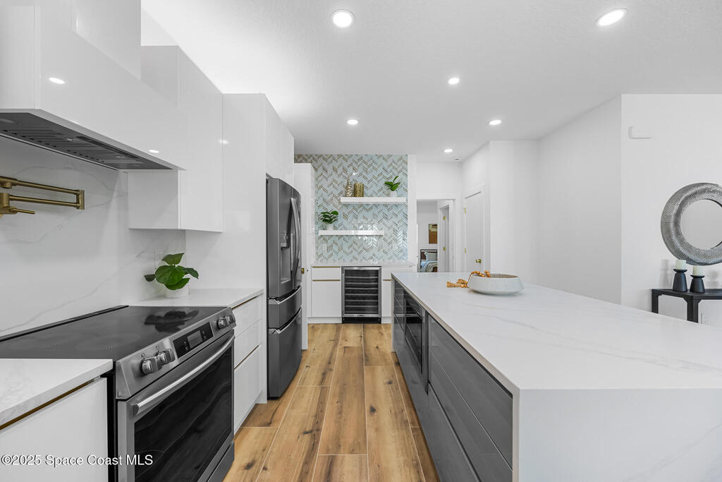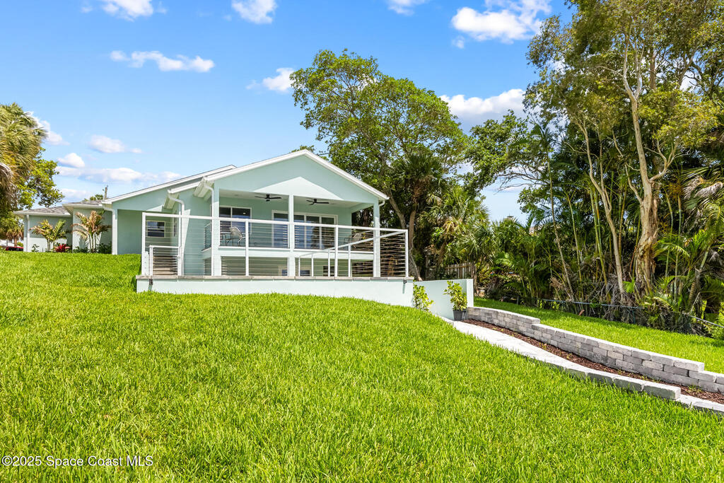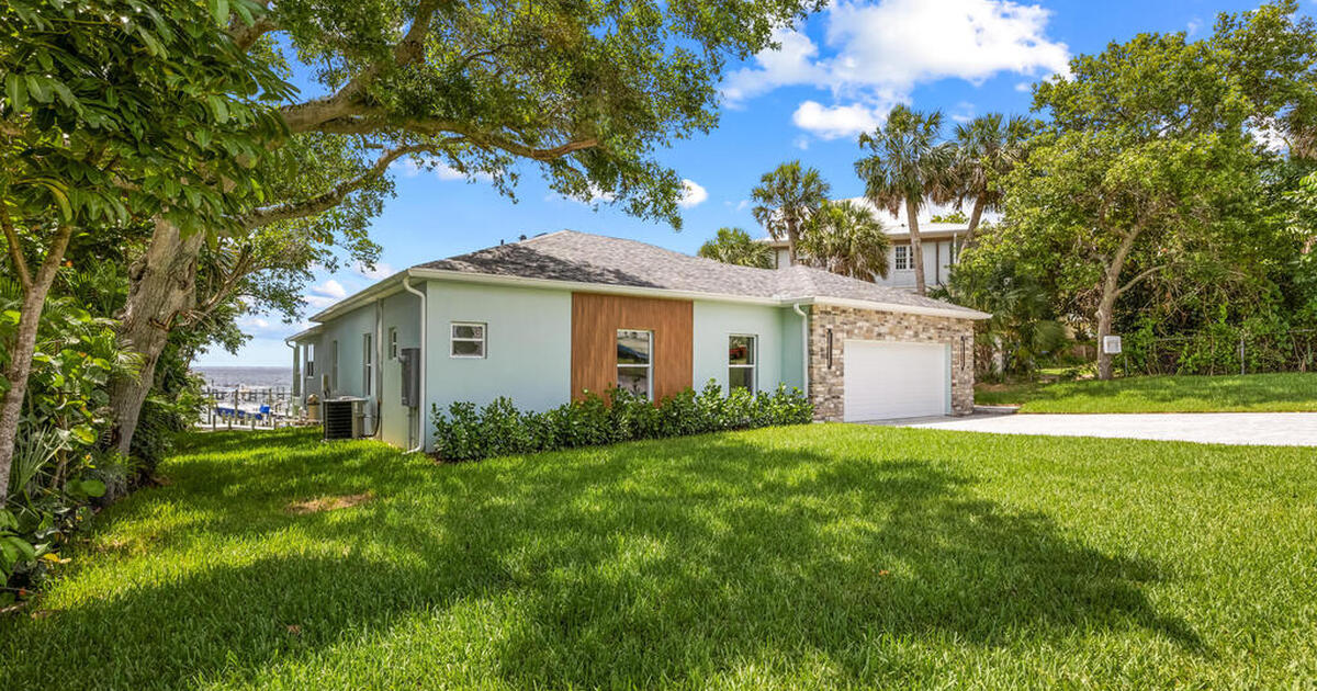 Receive $10k for rate buy down or closing costs with preferred lender! Every inch of this riverfront masterpiece has been reimagined for luxury Florida living. Taken down to the block and fully rebuilt with a 2025 effective age, this home is brand new from top to bottom.Set along the tranquil shores of the Indian River with a private dock, this 3-bedroom, 2-bath residence PLUS oversized bonus room offers over 2,400 SF of inspired living and a sparkling brand-new pool (2025)--perfect for sunset swims and weekend gatherings. The thoughtful two-story design maximizes both function and views. Welcoming vaulted ceilings, tile flooring, and abundant natural light highlight the open-concept living spaces. The living room's triple slider frames breathtaking river views and flows seamlessly into the chef's kitchen, complete with custom soft-close cabinetry, quartz waterfall island, built-in stainless appliances, wine cooler, and designer backsplash.