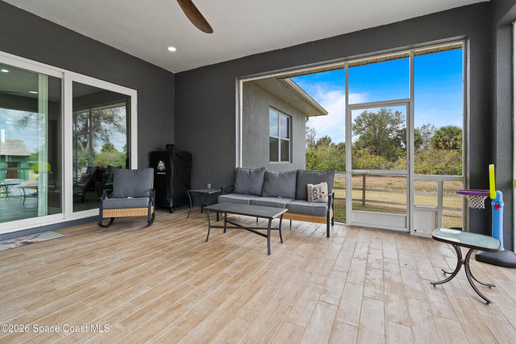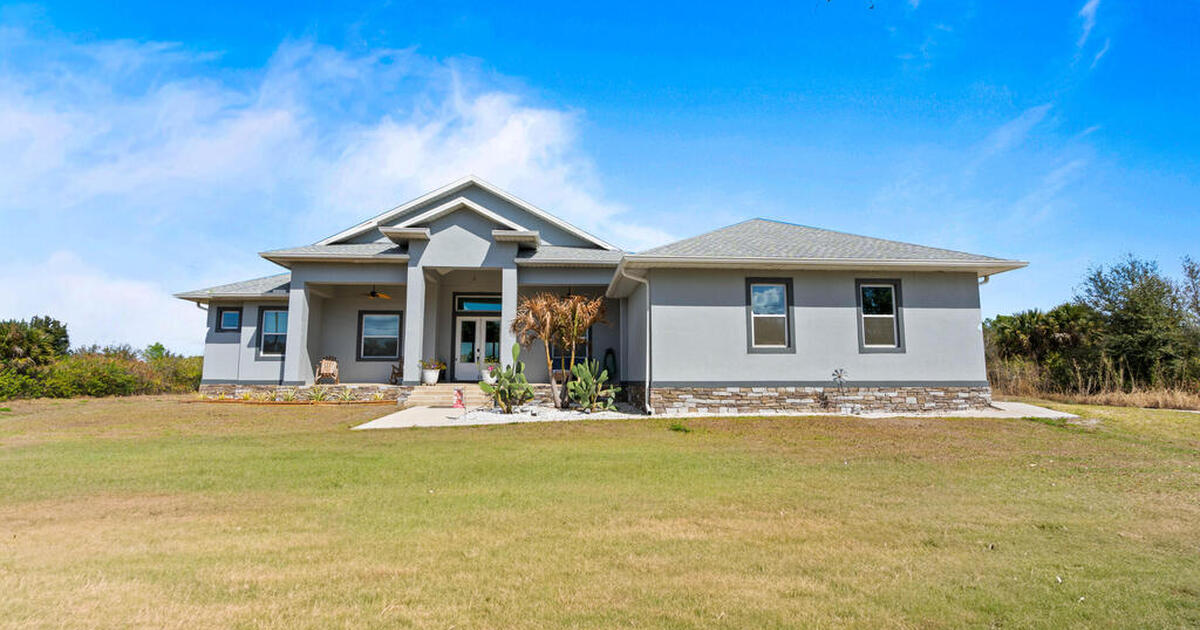 Nestled within the sought-after Deer Run community, this exceptional 2023 custom-built estate offers a rare blend of modern luxury and serene country living. Set on 2.75 acres, this five-bedroom, three-bathroom residence spans over 2,800 square feet of thoughtfully designed space, surrounded by natural beauty and frequent visits from deer and native wildlife.From the moment you enter, refined craftsmanship is on full display. Expansive open living areas are framed by 8-foot doors throughout, impact-rated windows and doors, and stunning wood-look tile flooring that flows seamlessly from room to room. Built with spray foam insulation and equipped with dual A/C units, the home delivers superior energy efficiency and year-round comfort.The split floor plan offers both privacy and functionality, ideal for hosting guests or accommodating multi-generational living. The heart of the home opens effortlessly to an oversized screened-in lanai, creating a peaceful retreat to enjoy morning coffee
