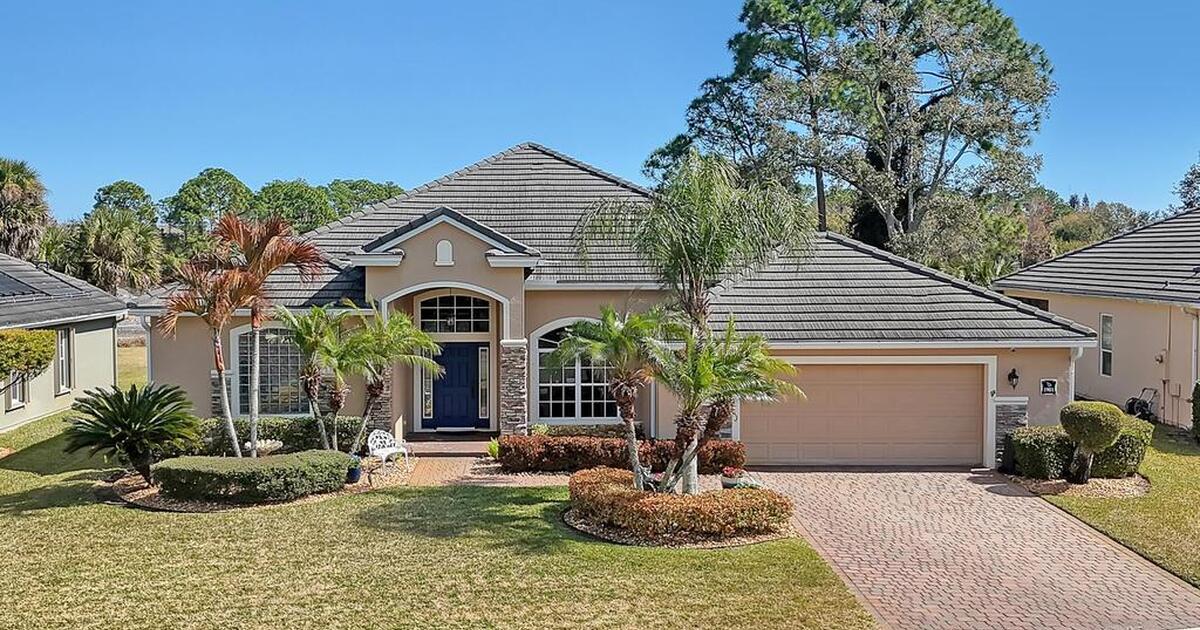 Absolutely gorgeous pool home located in exclusive Augusta Trace. Only 54 executive homes in this dead end street community. Lots of mature trees & landscape w/tons of character. $125,000 pool package! Huge screened heated pool w/beach area & umbrella, LED lit shooter fountains & waterfall. Pool has multiple lights & show options. Large covered area w/grill/green egg patio furniture(negotiable). Amazing area for outdoor entertaining. Truly must see. New TILE roof in 2020. New AC in 2021. All new flooring in 2023. Chefs island kitchen w/42in cabinets w/crown molding & solid surface countertops. Nice primary suite w/extra sitting room, double walk-ins, & garden tub/separate shower. Oversized 650 sq ft garage. 4 camera security system. Hurricane shutters. Great curb appeal w/brick paver driveway & stone accents. Pride of ownership throughout w/nice upgrades. Great location! Don't miss it!