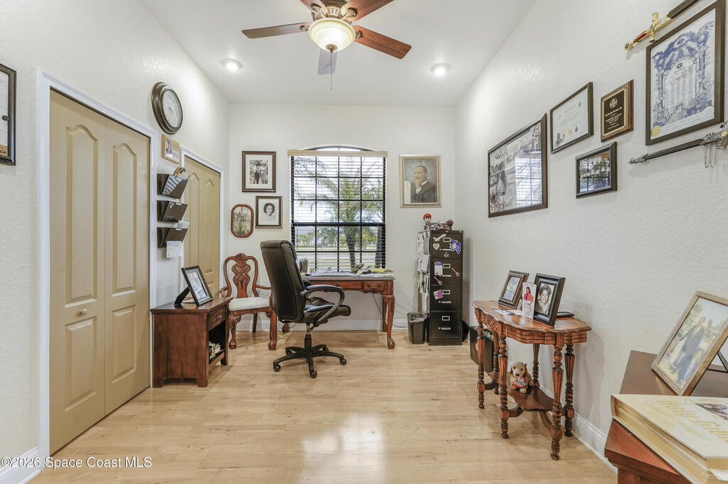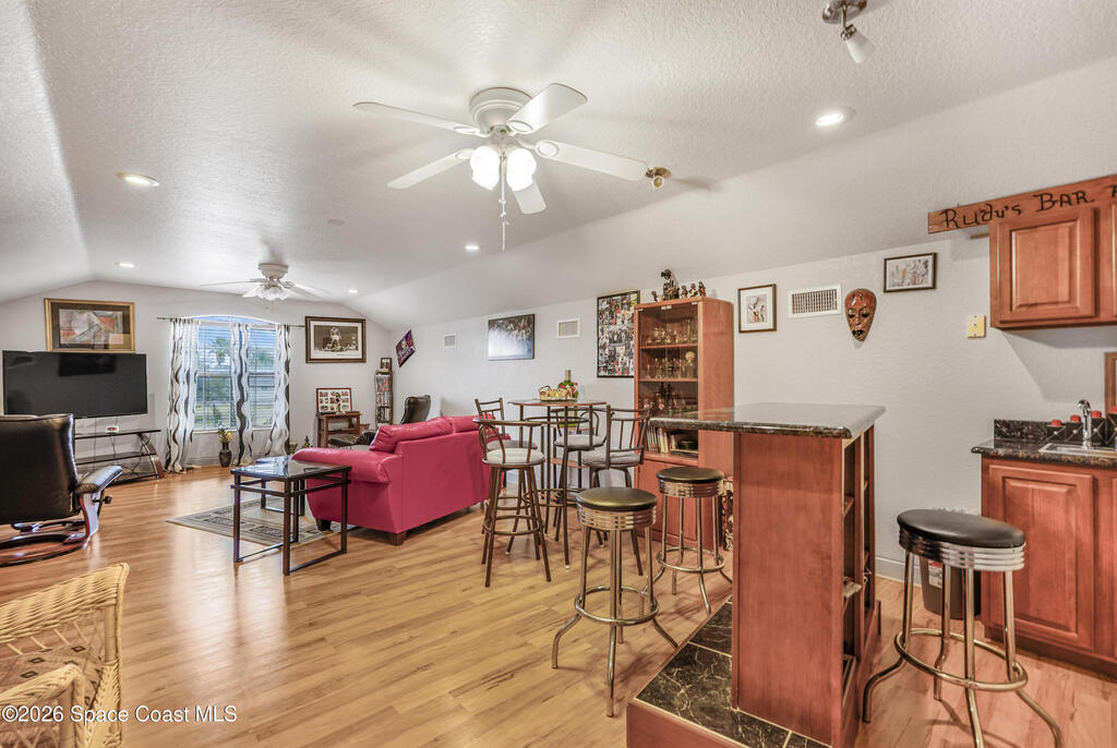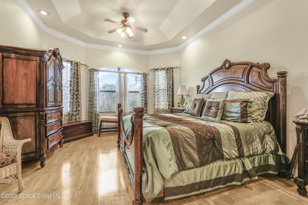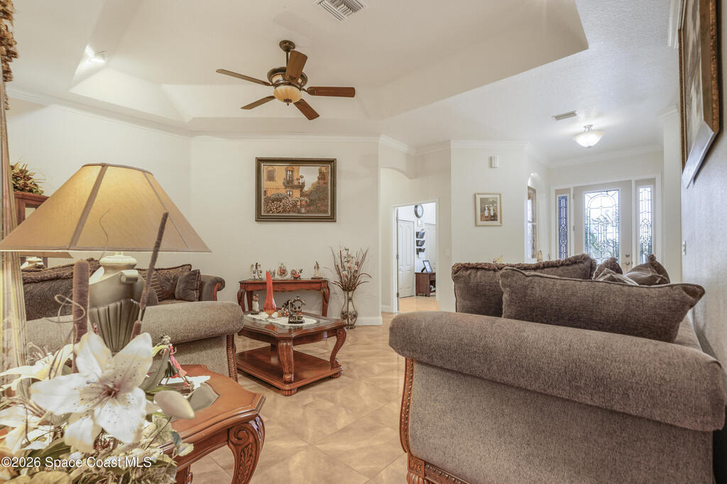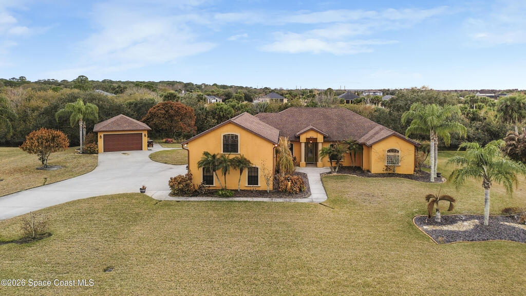 Situated on a full acre in the gated community of Rockledge Acres Estates, this 4-bedroom, 3-bathroom home offers space, privacy, and long-term pride of ownership, with only one owner in over 20 years.The home features tile flooring throughout the main living areas and wood flooring in the guest bedrooms and primary suite. A spacious kitchen opens to a separate dining area, ideal for holiday gatherings and entertaining. An upstairs loft with its own bathroom and closet provides flexible space for an entertainment room, guest suite, or home office.The primary suite includes his-and-her walk-in closets, dual tiled showers, and a jetted jacuzzi tub. Additional highlights include a three-car garage and a detached garage perfect for boat storage or extra vehicles.This rare property combines acreage, functionality, and gated community living in a highly desirable Rockledge location.