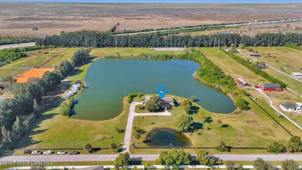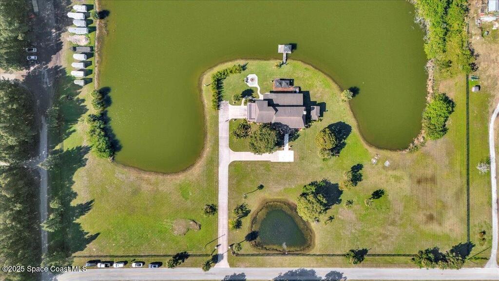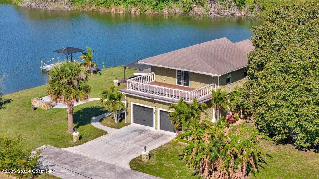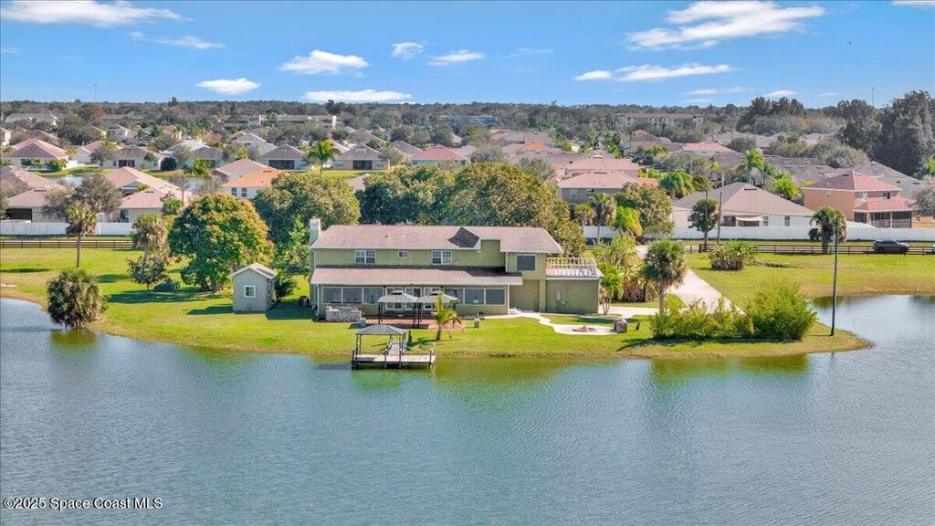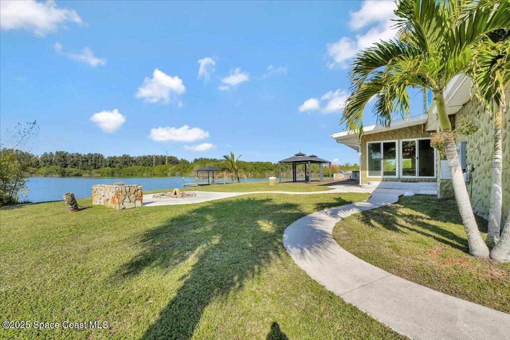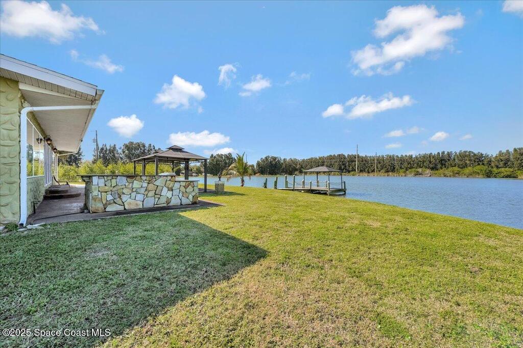 Owner Financing! Discover the estate you've always dreamed of in the heart of Rockledge. This stunning property features 5 bedrooms and 41/2 bathrooms and has been completely renovated in 2015. The kitchen offers a breathtaking view, with an expansive row of sliding glass doors that lead to your very own private stocked lake full of bass, brim, and tilapia. It has stainless steel appliances, black and gold marble countertops, an additional beverage refrigerator, and a full walk-in pantry. On the second floor, you will find an impressively large primary suite, complete with two closets, its own den, and a balcony that overlooks the grounds. Outside you will find a patio equipped with a full outdoor kitchen, fire pit, dock, numerous fruit trees, artesian well fed front pond with Koi fish, and a quaint detached 10X10 cottage with a loft. A true escape from the world from the minute you pull up the driveway. Fully Remodeled 2015, Impact Windows 2015, HVAC 2015, 4 Rail Fence 2023, Roof 201