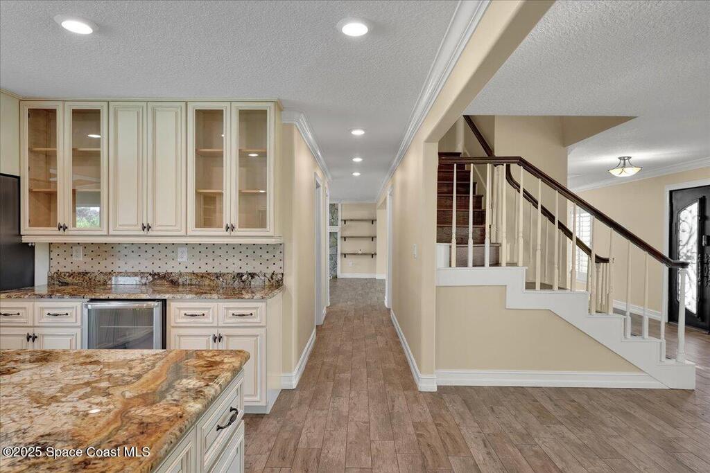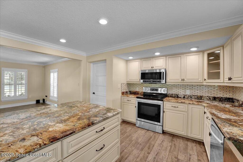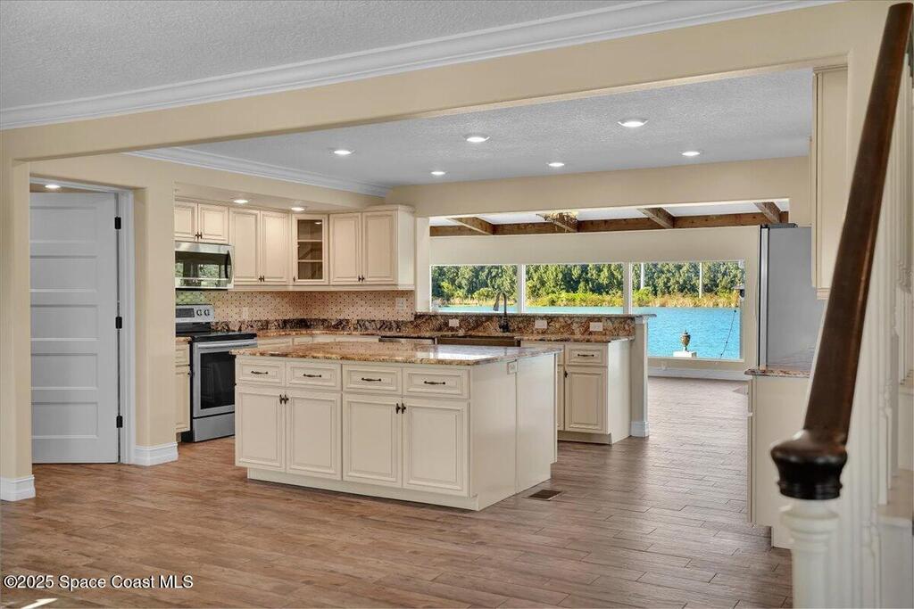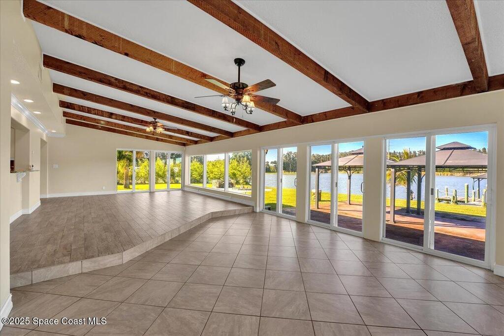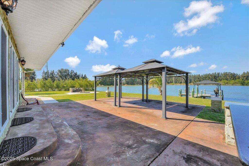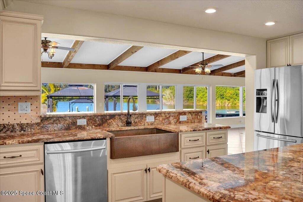 Owner Financing! Discover the estate you've always dreamed of in the heart of Rockledge. This stunning property features 5 bedrooms and 41/2 bathrooms and has been completely renovated in 2015. The kitchen offers a breathtaking view, with an expansive row of sliding glass doors that lead to your very own private stocked lake full of bass, brim, and tilapia. It has stainless steel appliances, black and gold marble countertops, an additional beverage refrigerator, and a full walk-in pantry. On the second floor, you will find an impressively large primary suite, complete with two closets, its own den, and a balcony that overlooks the grounds. Outside you will find a patio equipped with a full outdoor kitchen, fire pit, dock, numerous fruit trees, artesian well fed front pond with Koi fish, and a quaint detached 10X10 cottage with a loft. A true escape from the world from the minute you pull up the driveway. Fully Remodeled 2015, Impact Windows 2015, HVAC 2015, 4 Rail Fence 2023, Roof 201