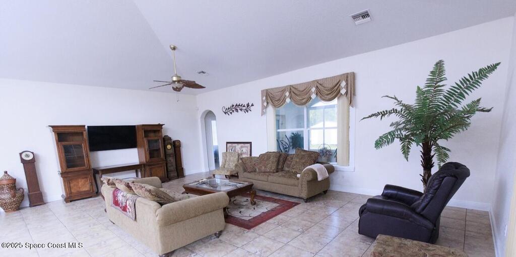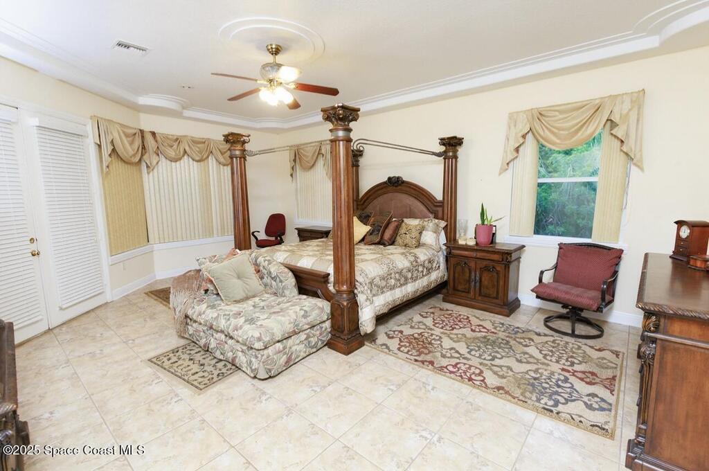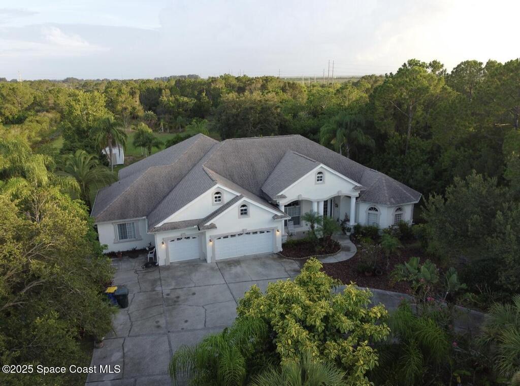 Welcome to this one-of-a-kind 4.16-acre estate in the sought-after subdivision of Timbers West in Rockledge. This meticulously maintained one-owner custom home offers over 5,400 sq. ft. under air with 4 bedrooms, 3 baths, and a spacious bonus loft upstairs. Built in 2004 with a newer roof and solar panels for low electric bills, this home also includes a 3-car garage and expansive living areas designed for comfort and efficiency. The chef's kitchen with large island opens to bright living spaces overlooking the serene acreage. Outdoors you'll find two picturesque ponds, manicured landscaping, and an array of mature fruit trees including 7 mango trees, an avocado tree, orange tree, lemon tree, coconut tree, and a grapevine. The back half of the property remains untouched, providing unmatched privacy. All this just minutes from Viera's shopping, dining, and top-rated schools.