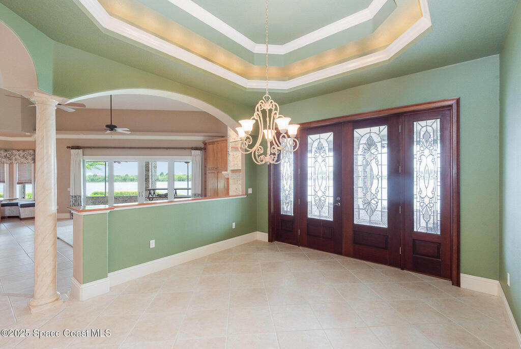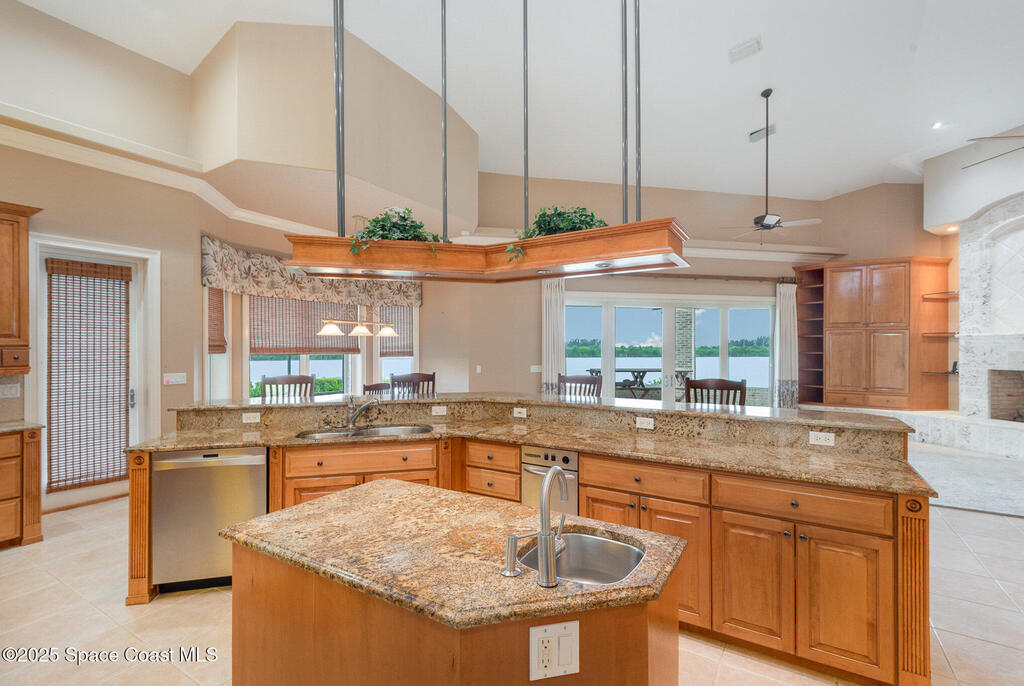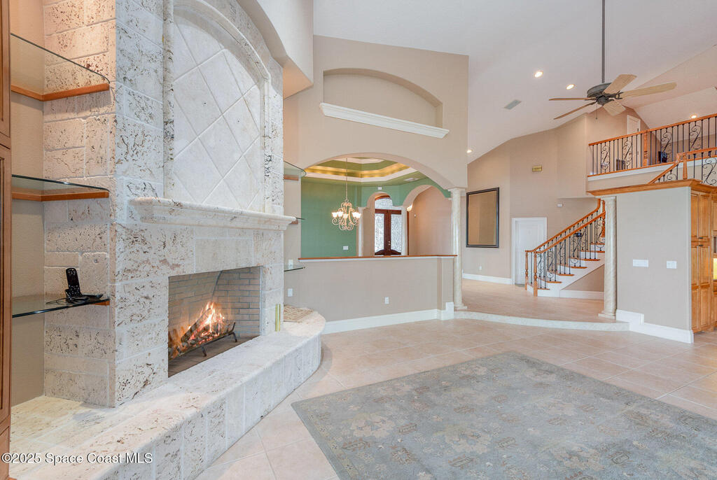 Experience the perfect blend of luxury & functionality in this beautifully crafted custom built home offering direct lake access & breathtaking views. Designed with comfort, versatility & family in mind, this 4 bedroom, 4.5 bath home on .82 acres includes so many features with multi-generational living option making it ideal for extended family or guest accommodations. Step inside to discover a bright open floor plan accented with pillars & high end finishes showing extensive cabinetry & a striking coral fireplace with built in entertainment center that adds warmth & character to the main living space. Enjoy indoor-outdoor living with a large screened porch over looking the beautiful 42 acre lake, perfect for entertaining year round. List of special features are a whole house gas generator, central vacuum system, plantation shutters on all windows, hurricane shutters, safe room with 9'' concrete walls, trey ceilings, black out sliding blinds, security system with 10 cameras,