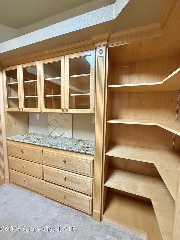 Breakfast Bar, Built-in Features, Butler Pantry, Ceiling Fan(s), Central Vacuum, Entrance Foyer, Guest Suite, His and Hers Closets, In-Law Floorplan, Open Floorplan, Pantry, Primary Bathroom -Tub with Separate Shower, Primary Downstairs, Split Bedrooms, Vaulted Ceiling(s), and Walk-In Closet(s)