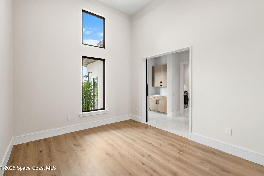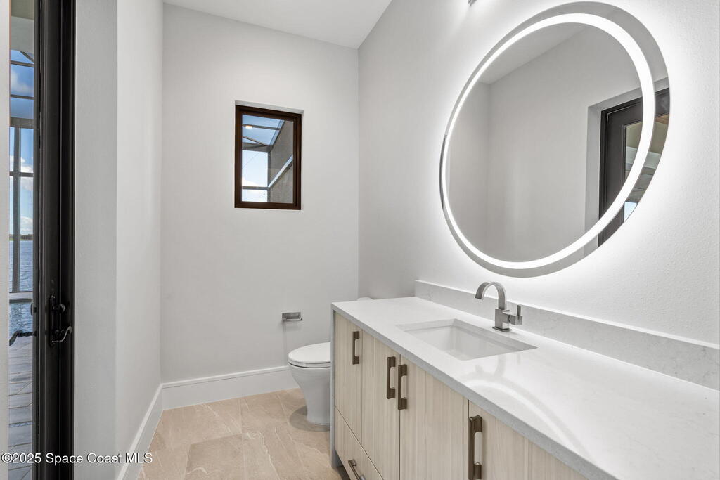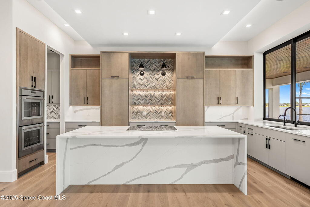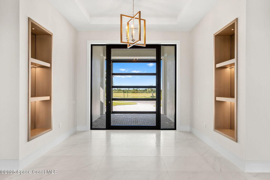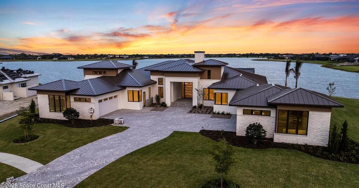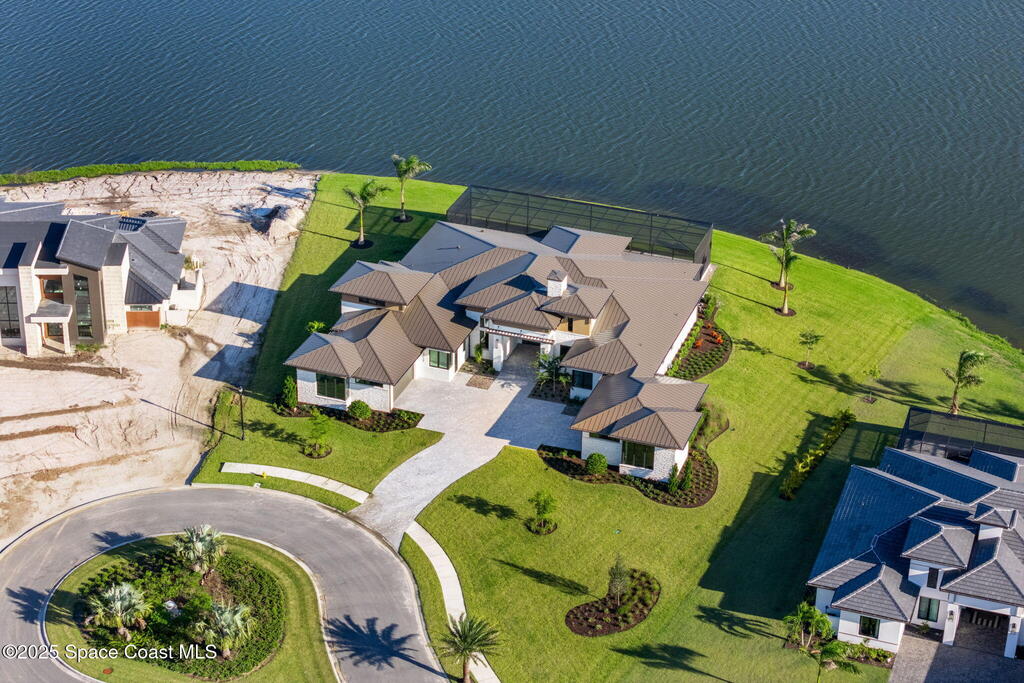 A masterpiece forged over two years of visionary artistry nears completion on Adelaide's most coveted lot, with sweeping views down Viera's grandest lake. Hardwood & rich tile floors lead to a magnificent great room, where a sleek electric fireplace anchors soaring ceilings. Disappearing sliders reveal a resort-worthy backyard oasis. The gourmet kitchen, a study in elegance, boasts marbled quartz, Thermador appliances, a butler's pantry, and an expansive island for lavish gatherings. A versatile flex room dazzles with dual pocket doors and a pool bath. The owner's suite, a serene escape, offers lanai access, a spa-inspired bath, and a celebrity-caliber closet with a hidden laundry passage. Outdoors, a vast saltwater pool, summer kitchen, and fireplace craft a timeless sanctuary. An air-conditioned Amazon delivery room and four-car garage elevate this estate to unrivaled perfection, leaving no desire unfulfilled.