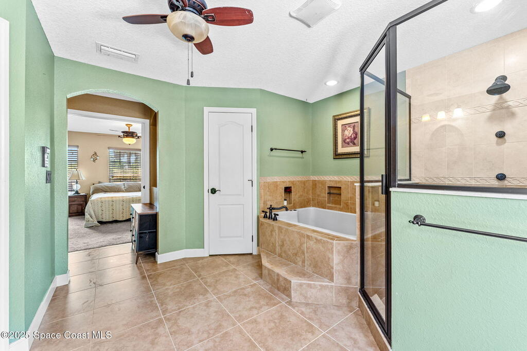Breakfast Bar, Breakfast Nook, Ceiling Fan(s), Eat-in Kitchen, Entrance Foyer, Guest Suite, In-Law Floorplan, Jack and Jill Bath, Open Floorplan, Primary Bathroom -Tub with Separate Shower, Primary Downstairs, Smart Thermostat, Split Bedrooms, Vaulted Ceiling(s), and Walk-In Closet(s)