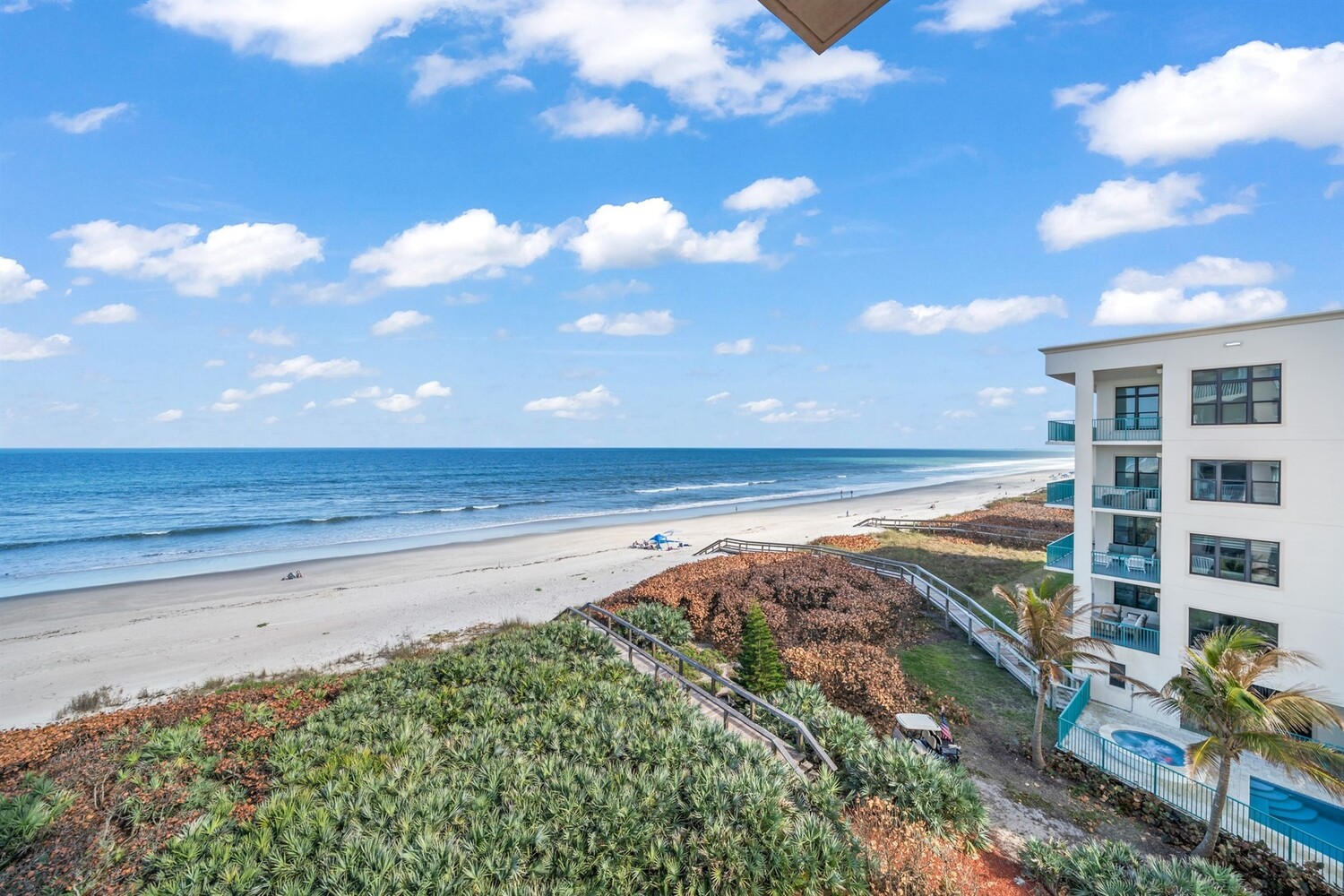 SE- corner unit on the 5th floor of the beautiful Barringer Condominium with stunning, direct ocean views! This spacious, updated residence offers over 2,600 sq. ft. of coastal living with angled wood-look tile throughout and modern, designer paint. The open kitchen features custom cabinetry, designer backsplash, and upgraded stainless steel appliances, including a double-oven range. Additional upgrades include an EcoSmart tankless water heater & water filter system. The primary suite enjoys breathtaking water views, two walk-in closets with professional organizers & a spa-like bath with soaking tub, custom cabinetry & large walk-in shower. Electric hurricane shutters, two garage parking spaces, and private storage are included. The exclusive, owner-occupied Barringer community offers a heated oceanfront pool, private beach access, secured lobby entry, and enclosed garage parking. Centrally located between the causeways! Indialantic's Barringer Condominium is centrally located between the causeways and consists of two seven-story buildings with only 35 total residences. This exclusive, owner-occupied community does not permit rentals. Open floor plans feature spacious dining and living areas accented by crown molding, wet bars and expansive balconies overlooking the ocean.The Barringer combines the charm and security of a suburban beach community with close proximity to outstanding dining, shopping, and entertainment. Residents can easily walk or bike to nearby venues. Popular destinations include Space Coast Stadium, Brevard Zoo, and The Avenue Viera, an open-air shopping and entertainment complex with over 100 restaurants and major retailers.During the day, explore breathtaking wildlife preserves or enjoy water sports such as surfing, jet skiing, fishing, and boating. In the evening, take in local concerts or dine alfresco at waterfront seafood restaurants. With the ocean just steps from your door, enjoy cooling breezes, soothing waves, and a lifestyle many only experience on vacation. Live where others escape. This beautiful and diverse coastal region offers an exceptional oceanfront lifestyle
