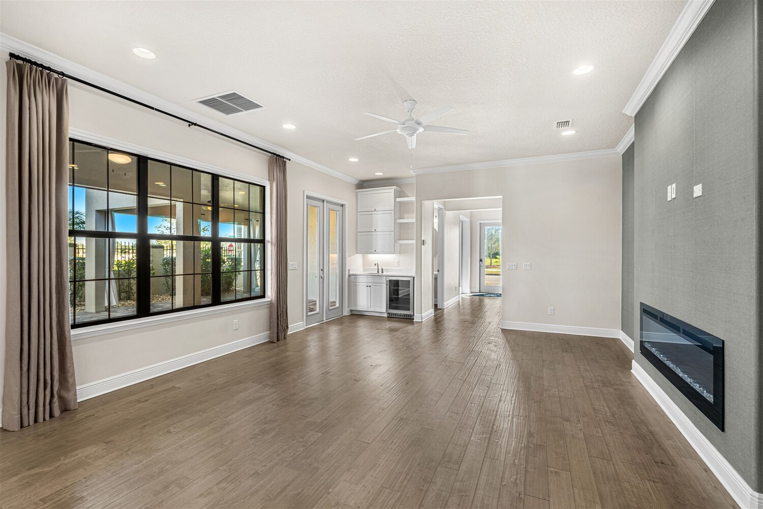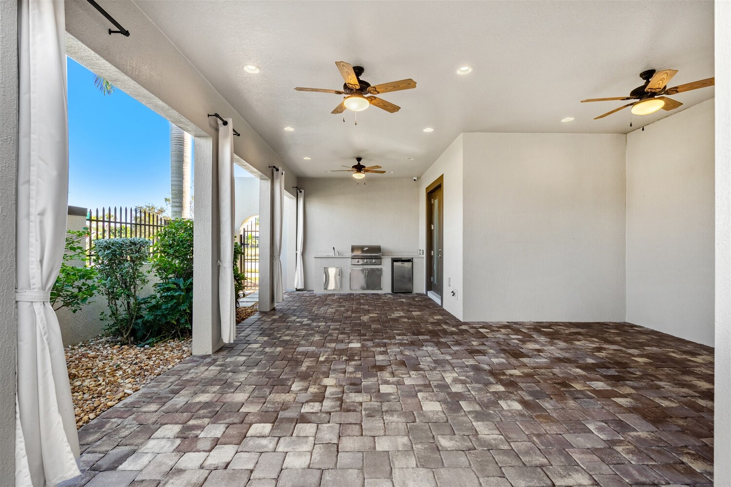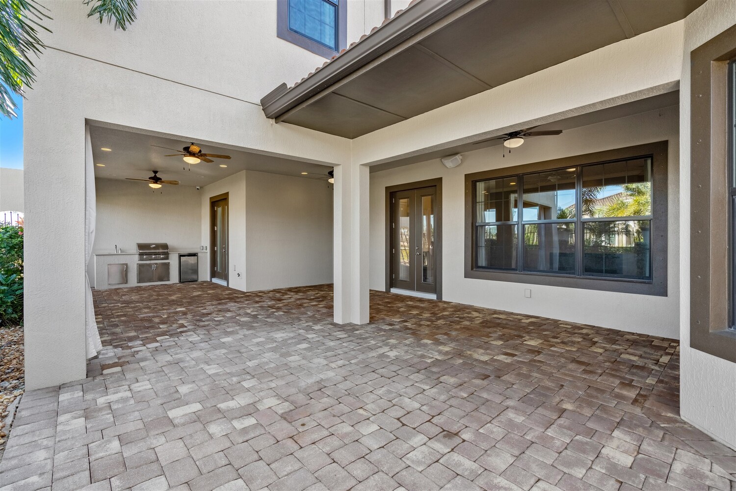 A standout in Viera's sought-after Reeling Park neighborhood, this spectacular 4/5 former model offers over $200K in contemporary upgrades and luxurious living spaces. As you enter through the foyer and pass the office, you're greeted by bright open spaces that draw in soft natural light through the glass front door and windows in the main living spaces. Family gatherings and quiet relaxation are a breeze in the main living space, featuring an electric fireplace and views to the courtyard. The modern kitchen features stainless steel appliances, gas cooktop, vented hood, white cabinetry, quartz counters, and a walk-in pantry. Step outside through the French doors to find a breezy, covered retreat equipped with paver flooring and a summer kitchen, perfect for summertime entertaining. The first-floor primary suite includes an incredible walk-in closet and a spa-like ensuite bathroom with glass and tile shower and soaking tub. . Upstairs, enjoy function and flexibility with three additional bedrooms that can easily be used as workspaces, home gyms, or a bonus room. You'll find plentiful storage options throughout. A generous 2-car garage with epoxy floors offers room for all the toys. Viera carefree living is waiting for you.