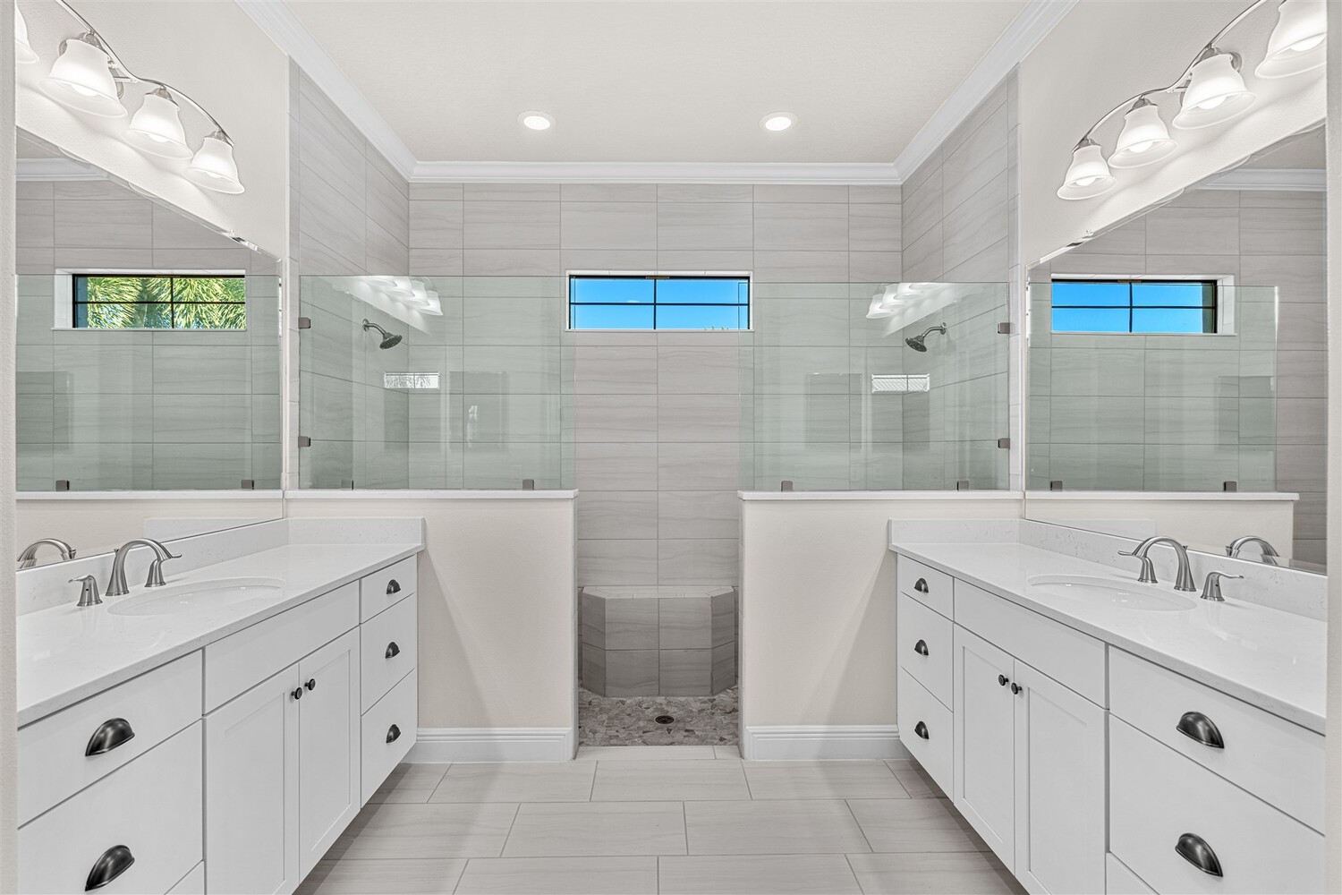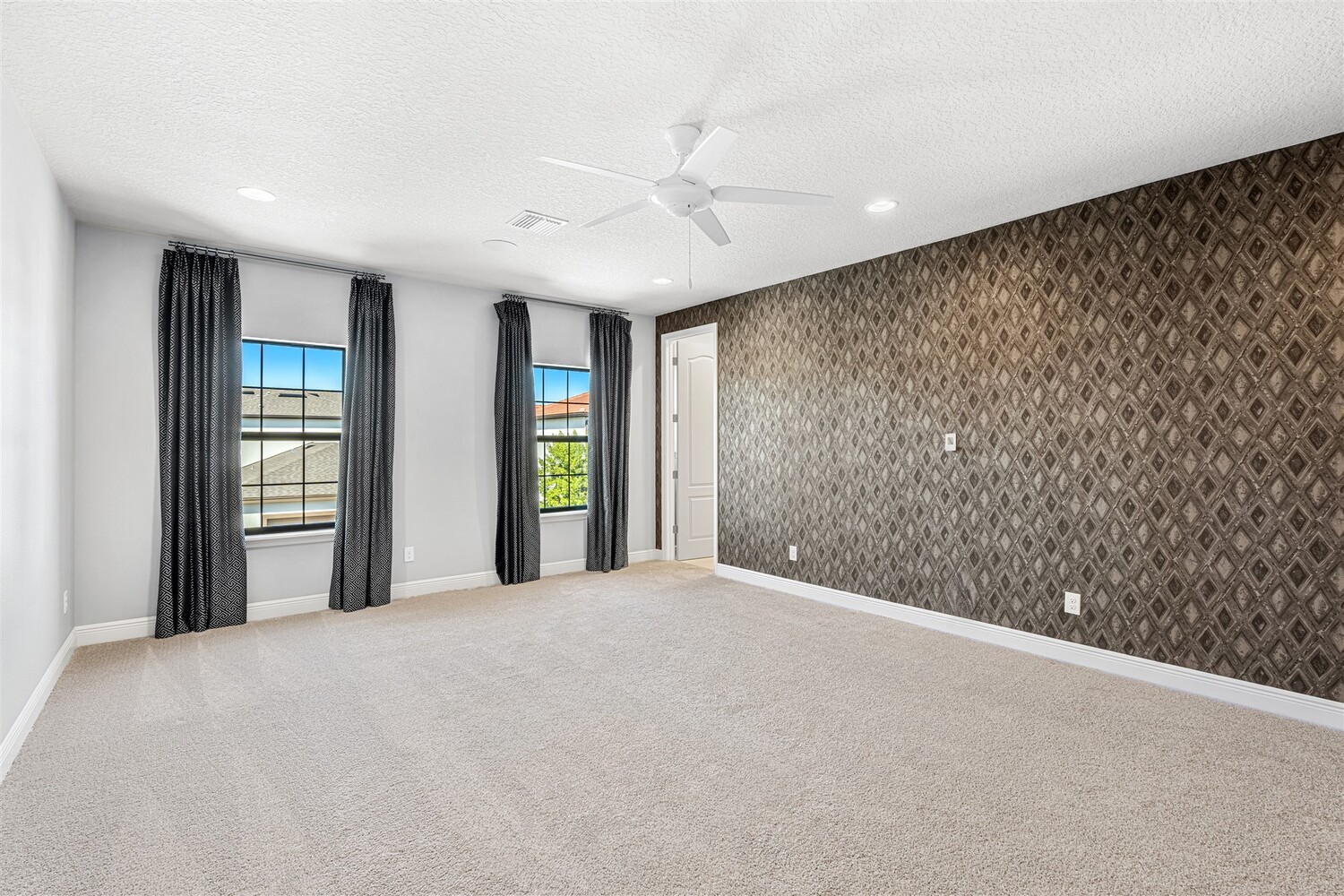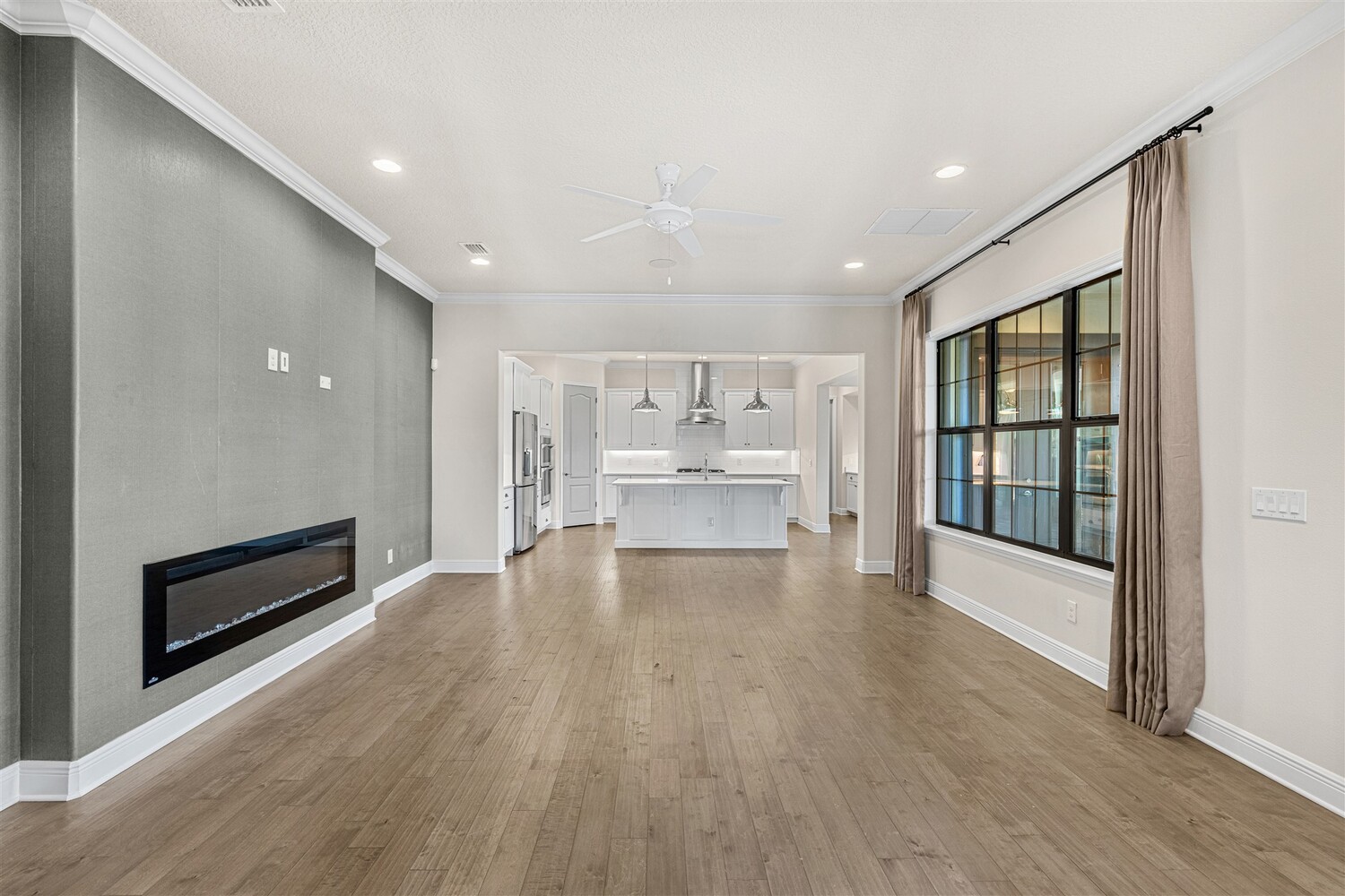A standout in Viera's sought-after Reeling Park neighborhood, this spectacular 4/5 former model offers over $200K in contemporary upgrades and luxurious living spaces. As you enter through the foyer and pass the office, you're greeted by bright open spaces that draw in soft natural light through the glass front door and windows in the main living spaces. Family gatherings and quiet relaxation are a breeze in the main living space, featuring an electric fireplace and views to the courtyard. The modern kitchen features stainless steel appliances, gas cooktop, vented hood, white cabinetry, quartz counters, and a walk-in pantry. Step outside through the French doors to find a breezy, covered retreat equipped with paver flooring and a summer kitchen, perfect for summertime entertaining. The first-floor primary suite includes an incredible walk-in closet and a spa-like ensuite bathroom with glass and tile shower and soaking tub. . Upstairs, enjoy function and flexibility with three additional bedrooms that can easily be used as workspaces, home gyms, or a bonus room. You'll find plentiful storage options throughout. A generous 2-car garage with epoxy floors offers room for all the toys. Viera carefree living is waiting for you.