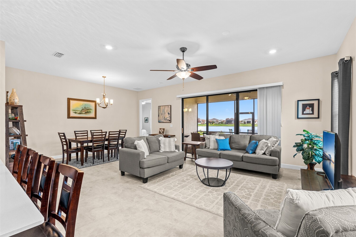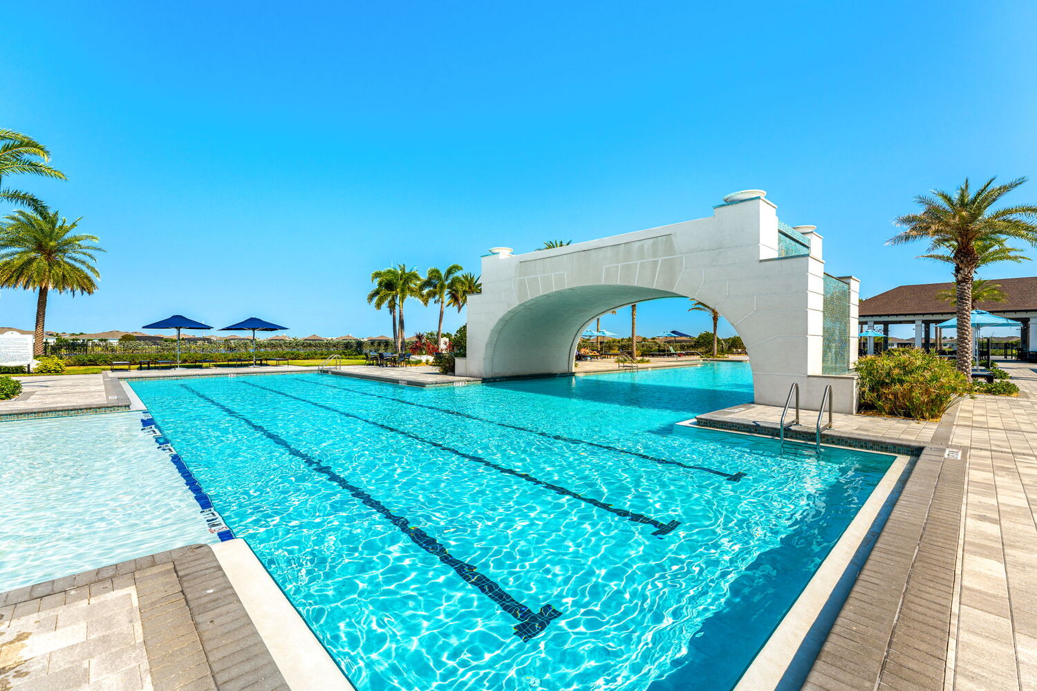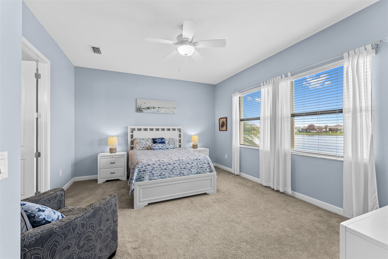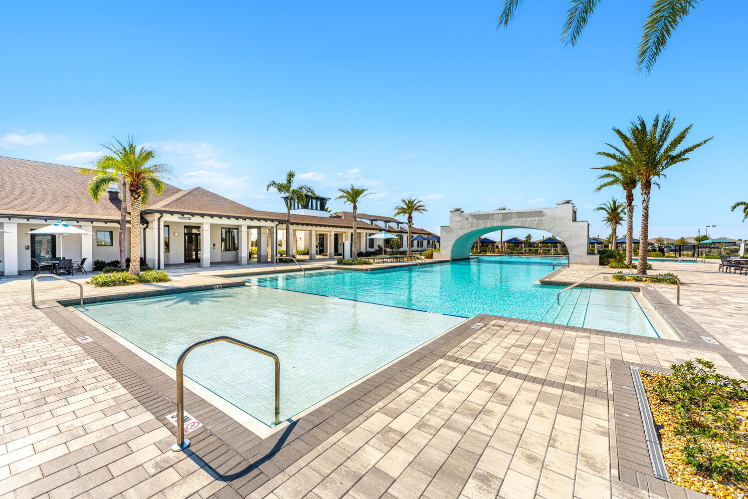 Immaculate 3 bedroom plus study, 3 1/2 bath, waterfront home in Bridgewater, Viera's popular gated 55+ resort style community. All three bedrooms are en-suites, making the Key Largo the most popular floorplan! This barely lived in home has plank tile floors in the main living areas, ceiling fans, and 8' doors. Great room has triple sliders to the screened in porch and additional paver patio and lake beyond! Exterior landscaped beds are bordered with designer curbing and stone. And all windows and the sliders have accordion shutters for added peace of mind! Delightful kitchen with espresso kitchen cabinets with tile backsplash and an island with stunning pendant lights! Dream laundry room with W/D, cabinets and a sink! Oversized primary bedroom and primary bath with a huge walk-in closet with custom built-ins! Unbelievable clubhouse w/ heated pool and spa, movie theater, fitness center, coffee lounge, tennis, pickleball! Close to shopping, restaurants, ocean beaches, cruise port!