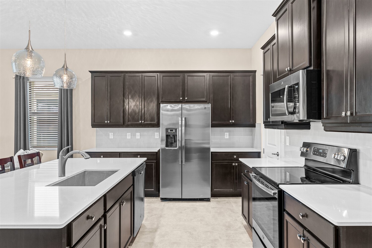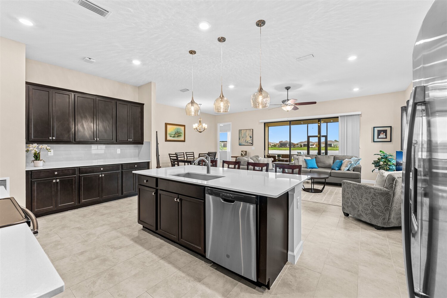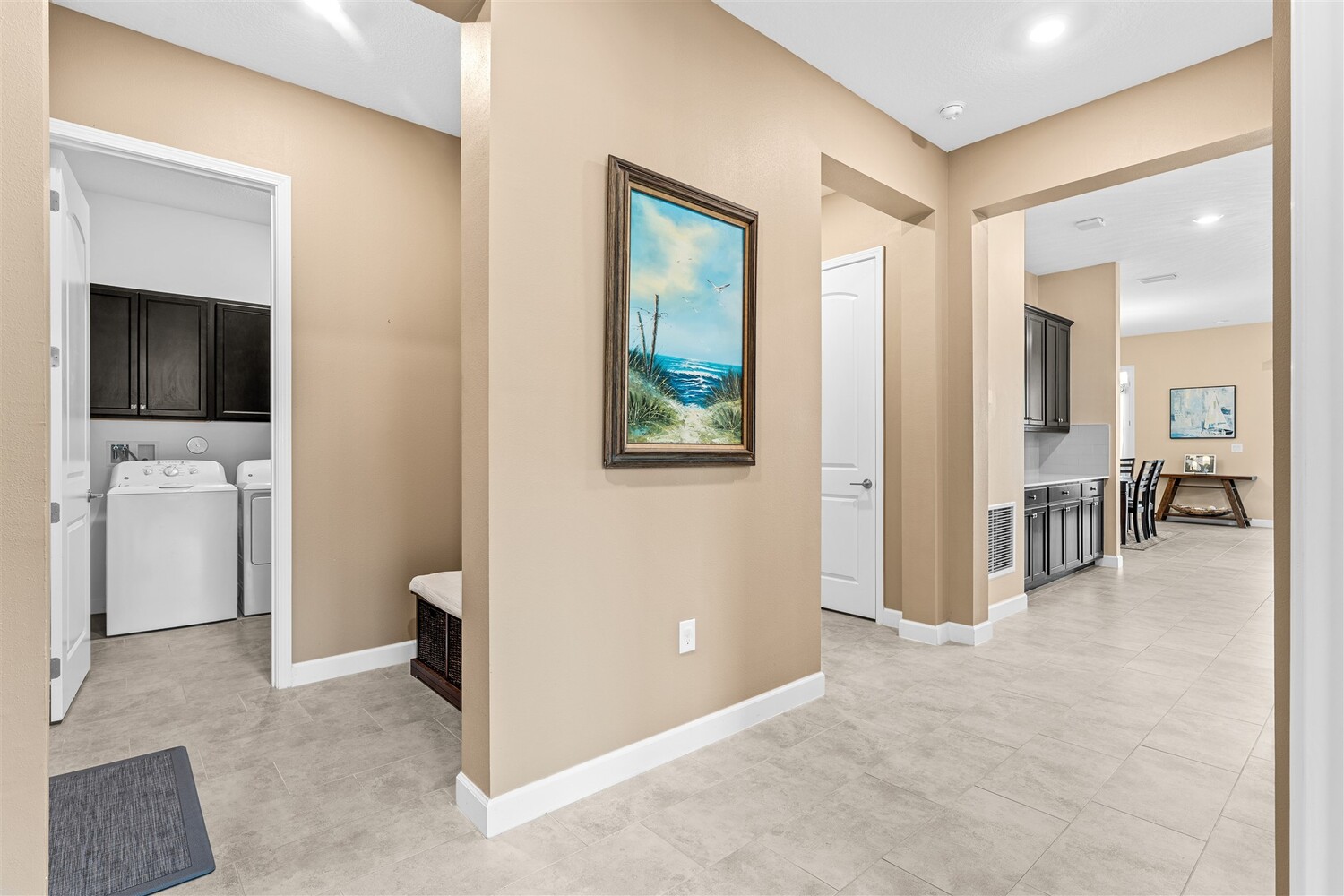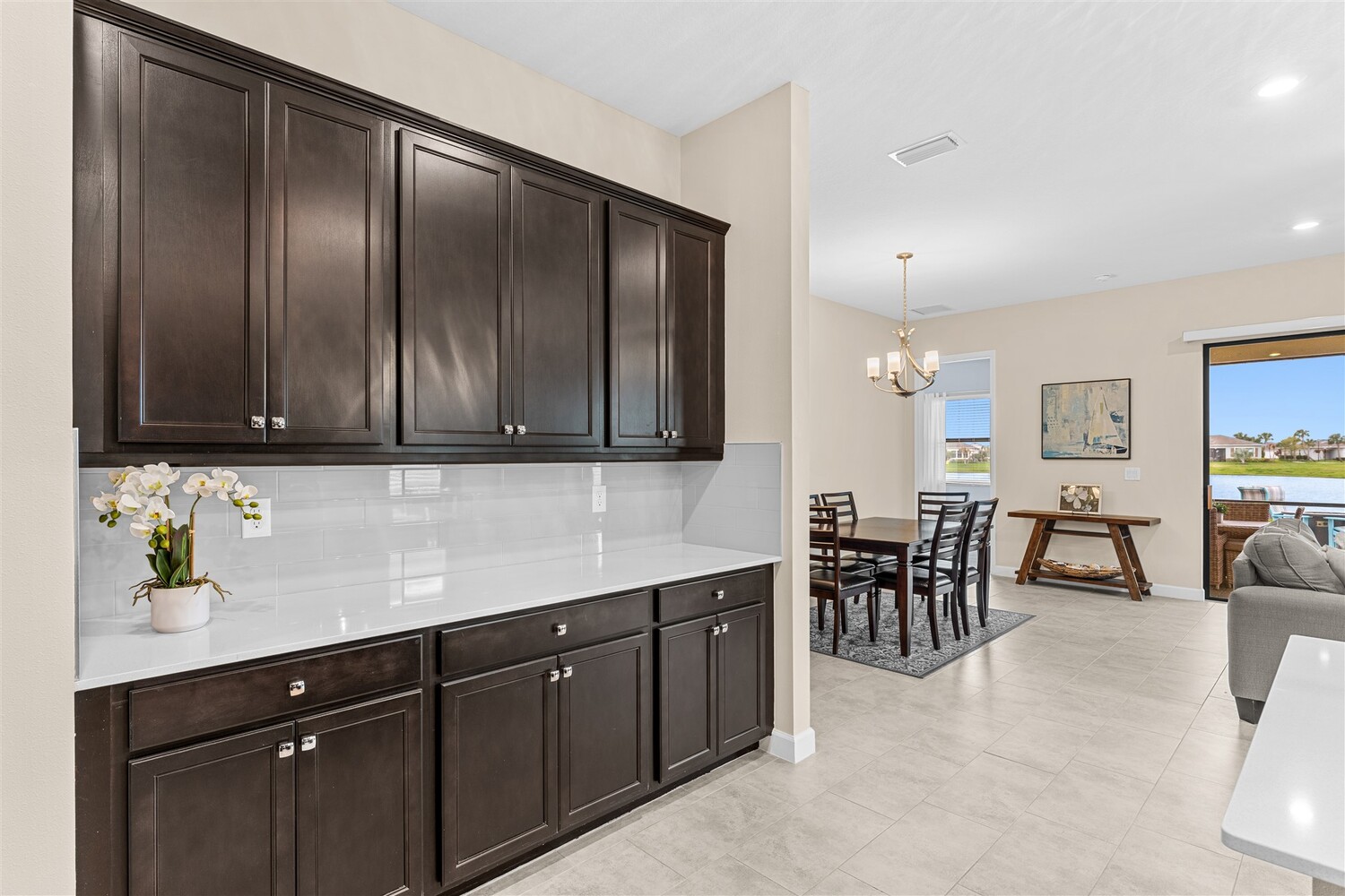 Immaculate 3 bedroom plus study, 3 1/2 bath, waterfront home in Bridgewater, Viera's popular gated 55+ resort style community. All three bedrooms are en-suites, making the Key Largo the most popular floorplan! This barely lived in home has plank tile floors in the main living areas, ceiling fans, and 8' doors. Great room has triple sliders to the screened in porch and additional paver patio and lake beyond! Exterior landscaped beds are bordered with designer curbing and stone. And all windows and the sliders have accordion shutters for added peace of mind! Delightful kitchen with espresso kitchen cabinets with tile backsplash and an island with stunning pendant lights! Dream laundry room with W/D, cabinets and a sink! Oversized primary bedroom and primary bath with a huge walk-in closet with custom built-ins! Unbelievable clubhouse w/ heated pool and spa, movie theater, fitness center, coffee lounge, tennis, pickleball! Close to shopping, restaurants, ocean beaches, cruise port!