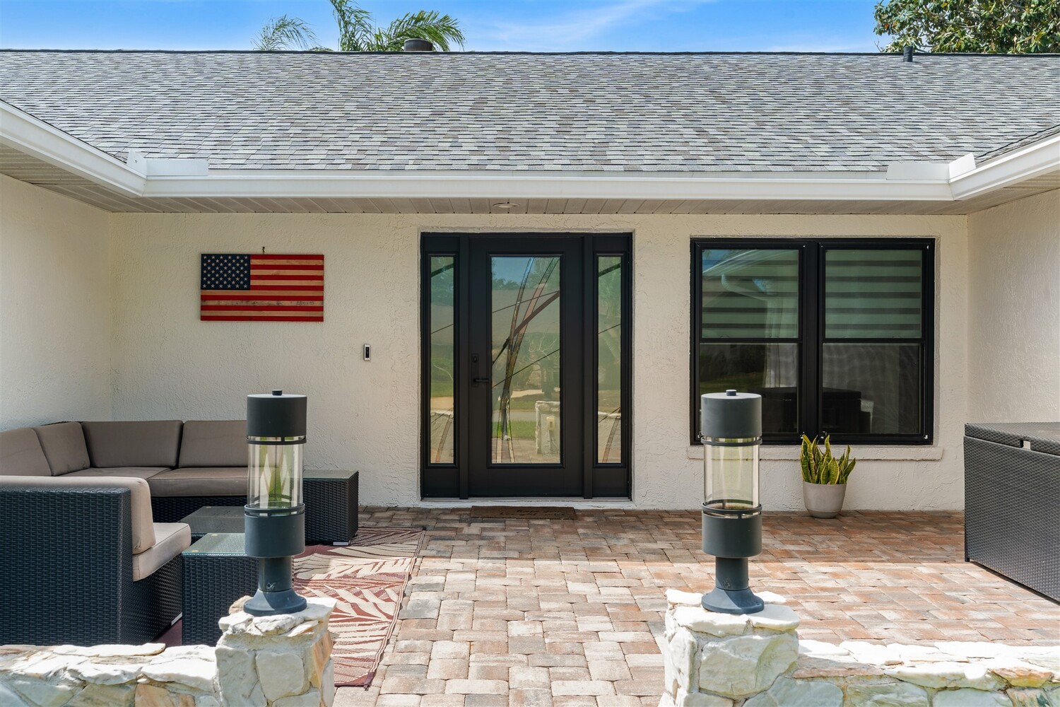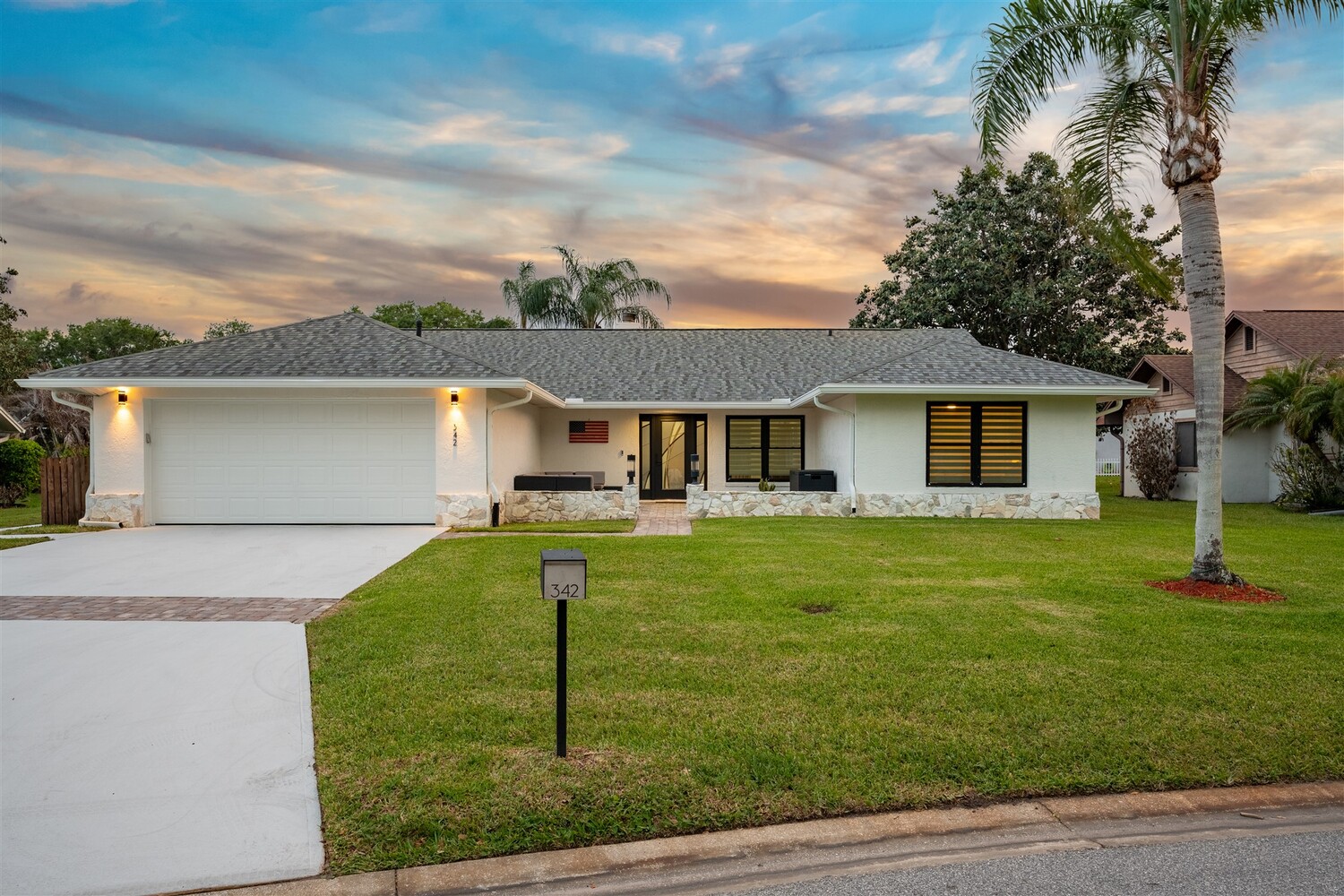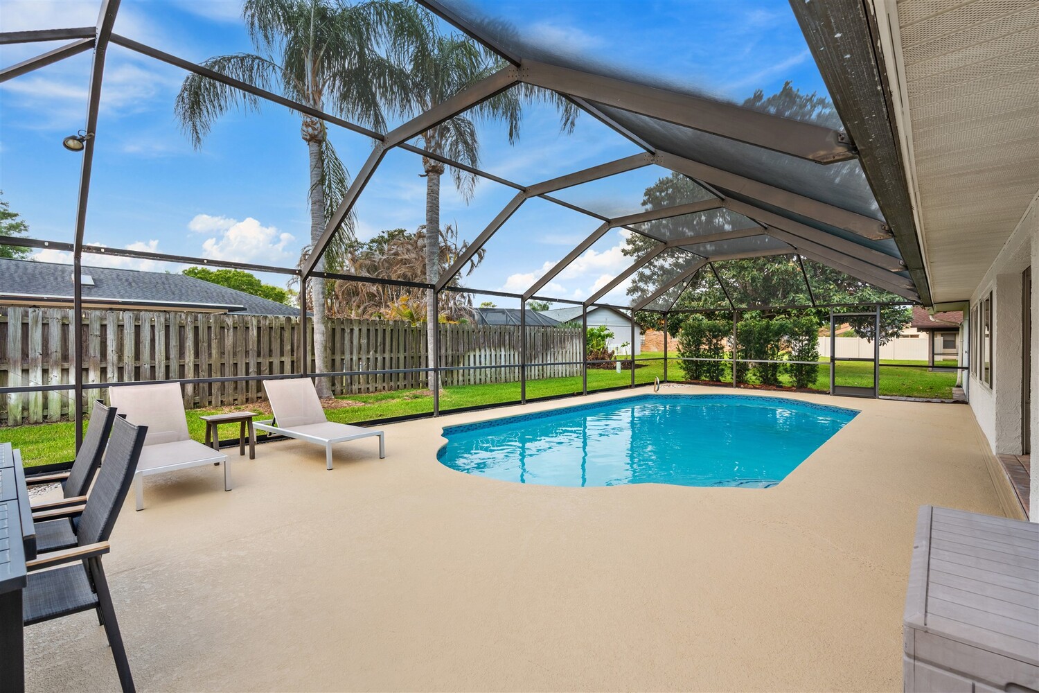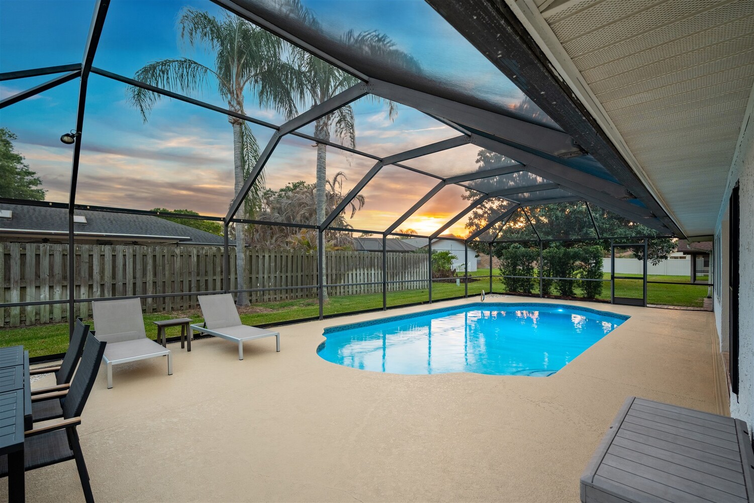 SELLER HAS ASSUMABLE VA MORTGAGE AT 2.25%. Located in the highly sought-after Crystal Lake community of Suntree, this fully remodeled, move-in ready 3-bed, 2.5 bath pool home with a 2-car garage offers the perfect combination of modern upgrades, thoughtful design, and long-term peace of mind. From the moment you arrive, the charming paved front courtyard creates a warm and inviting entry, setting the tone for the quality found throughout. Inside, the open floor plan is filled with natural light and enhanced by new flooring throughout, updated baseboards, recessed LED lighting, and designer ceiling fans. The spacious living area features a cozy gas fireplace and flows seamlessly into the dining and kitchen spaces, making it ideal for both everyday living and entertaining. The beautifully updated kitchen serves as the heart of the home, showcasing quartz countertops, new cabinetry, a stylish backsplash, and high-end appliances. A new washer and dryer add convenience, while closets and shades throughout the home provide both functionality and a polished finish. Extensive system upgrades ensure true move-in readiness, including a 2025 roof, 2020 A/C, 2021 hot water heater, and fully updated whole-house plumbing. Additional improvements include new impact windows, garage access door, front door, garage door and roll down hurricane screen on lanai, along with new electrical panel, offering safety, efficiency, and peace of mind. All three bathrooms have been fully upgraded with modern finishes, creating spa-like spaces designed for comfort. Fresh interior and exterior paint--including the garage--further enhances the home's clean, updated aesthetic. Step outside to your private backyard retreat, where a screened-in lanai surrounds the resurfaced pool. Enjoy a newly painted pool deck, gas heater, new chlorinator and pool pump, and LED lighting, along with the added convenience of an electric roll-down hurricane screen for the patio. Updated landscaping and a refreshed sprinkler system complete the outdoor space (with a gas stub out for a summer kitchen), providing both beauty and ease of maintenance. This exceptional home delivers quality, style, and an unbeatable location in one of Suntree's most desirable neighborhoods--offering the very best of Florida living.