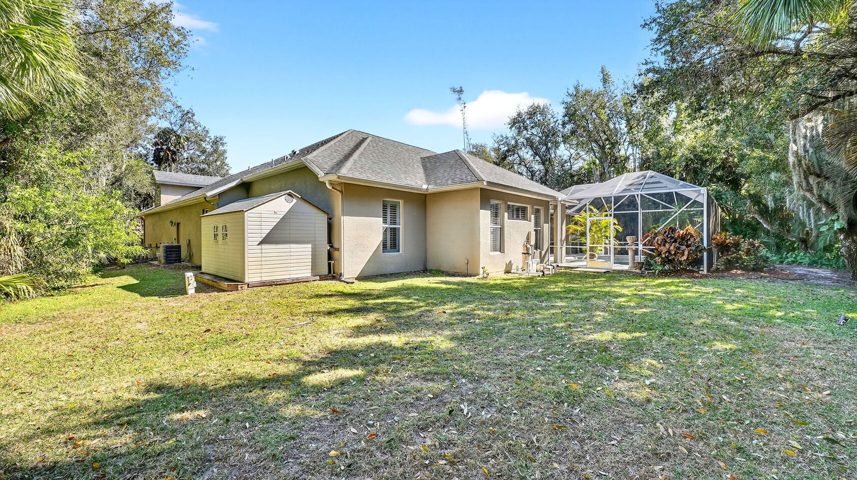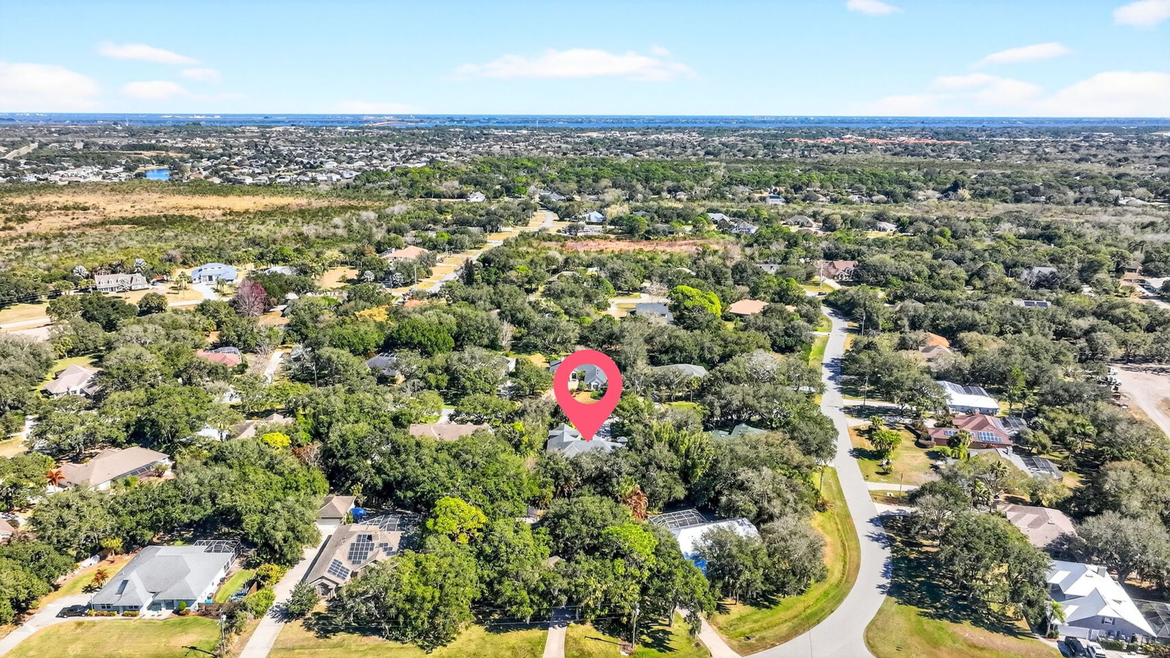 This custom-built pool home sits on a ½-acre lot with a peaceful preserve backdrop, offering exceptional privacy and space. Inside, soaring ceilings and an open, light-filled layout create a warm and welcoming feel from the moment you enter. The kitchen opens seamlessly to the living areas, making everyday living and entertaining easy. A versatile bonus room provides flexibility for a home office, playroom, media space, or multigenerational living. Step outside to a covered, screened patio overlooking the private backyard and sparkling pool—perfect for relaxing or hosting family and friends. Additional features include tile and wood flooring, plantation shutters, crown molding, an oversized 3-car garage, large paver driveway, and a 2019 roof. Located in an established community with mature surroundings and convenient access to Space Coast employers, beaches, and everyday amenities.