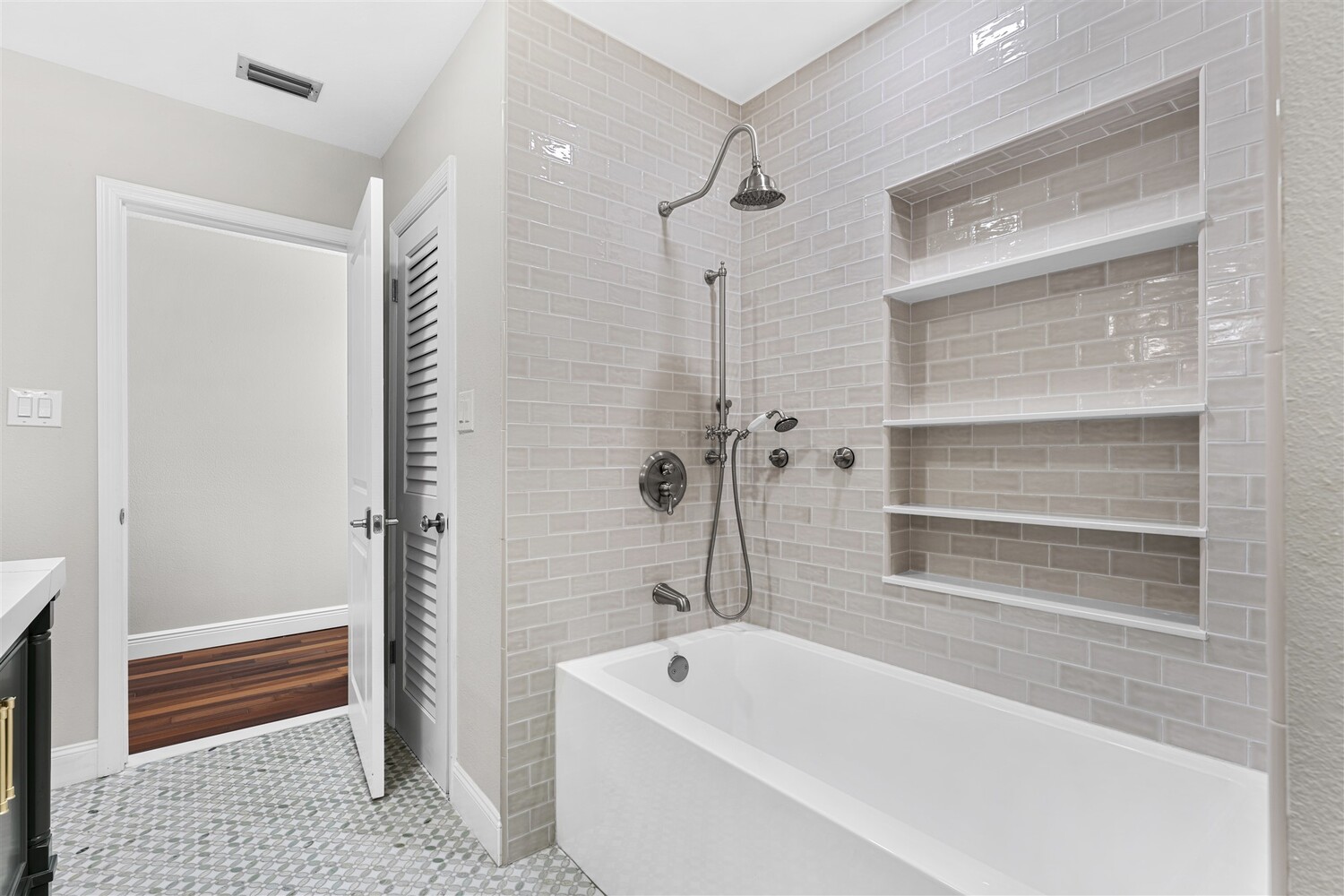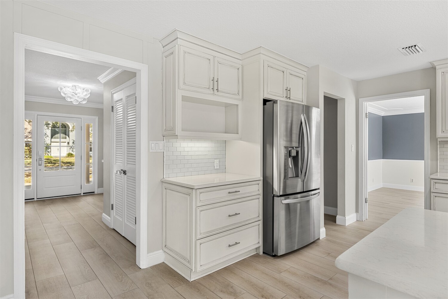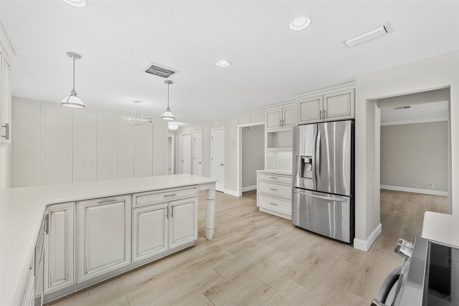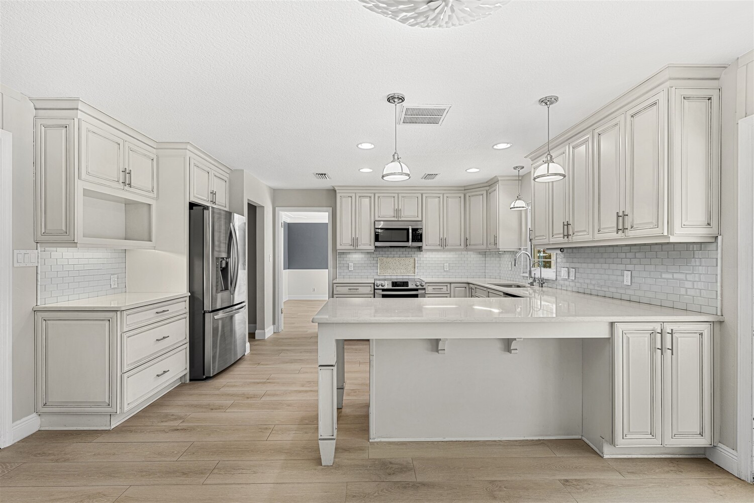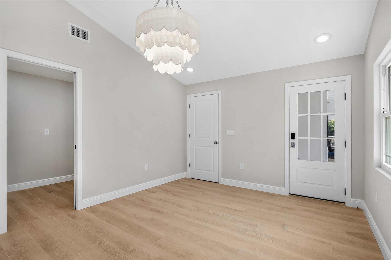 Remodeled in 2025 with impact windows, new 1st floor owner's suite, roof new in 2020, acs 2021 and 2025! Enjoy crisp river breezes in Indialantic in this gorgeous traditional concrete block house featuring 4 beds and 4 baths (2 owner suites) on a large corner lot. Stately oaks grace the grounds and a circular drive allows for guest parking. Neutral plank tile throughout the first floor reflects the feeling of sand beneath your feet. The charming contemporary kitchen includes a breakfast bar, ample cabinetry, a stylish tile backsplash, and stainless steel appliances. Nearby, a spacious living and dining room offer the perfect space for entertaining, and the huge family room features a cozy fireplace. A dedicated office makes the perfect area for a WFH setup, home gym, or studio. The stunning new owners' suite on the first floor offers a spa-like bathroom with a soaking tub, frameless shower, and large walk-in closet. Step outside to find a huge, fenced backyard where you can soak up the Florida sun and lounge by the pool. Upstairs, find three additional bedrooms including a large secondary owners' suite with remodeled bath and two additional generously sized bedrooms. This house has newly installed impact windows, new A/C, and a fenced lot. There is plenty of room for a large or multigenerational family. Located close to shops, restaurants and a bike ride to the beach, this lovely house is ready for a new family.