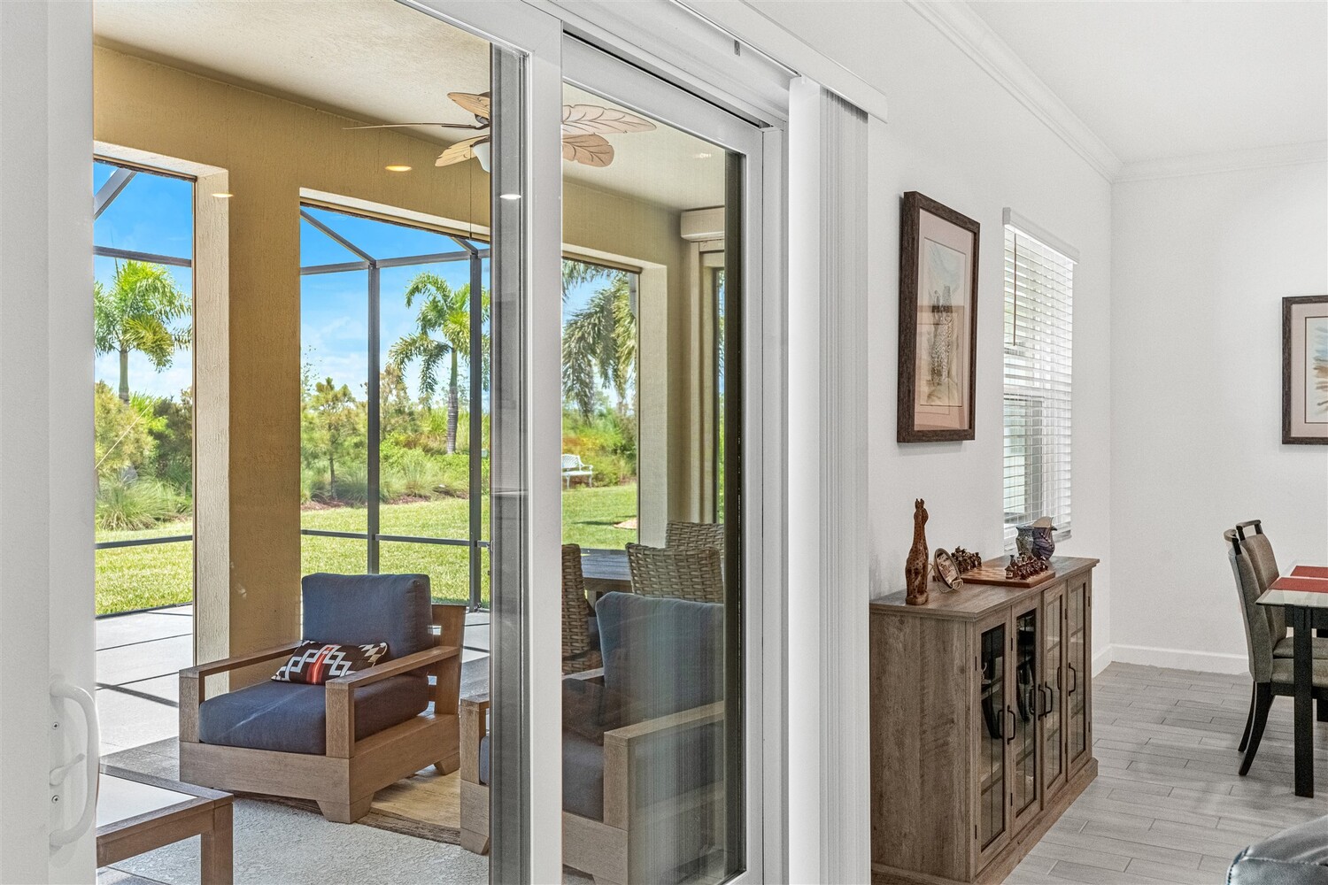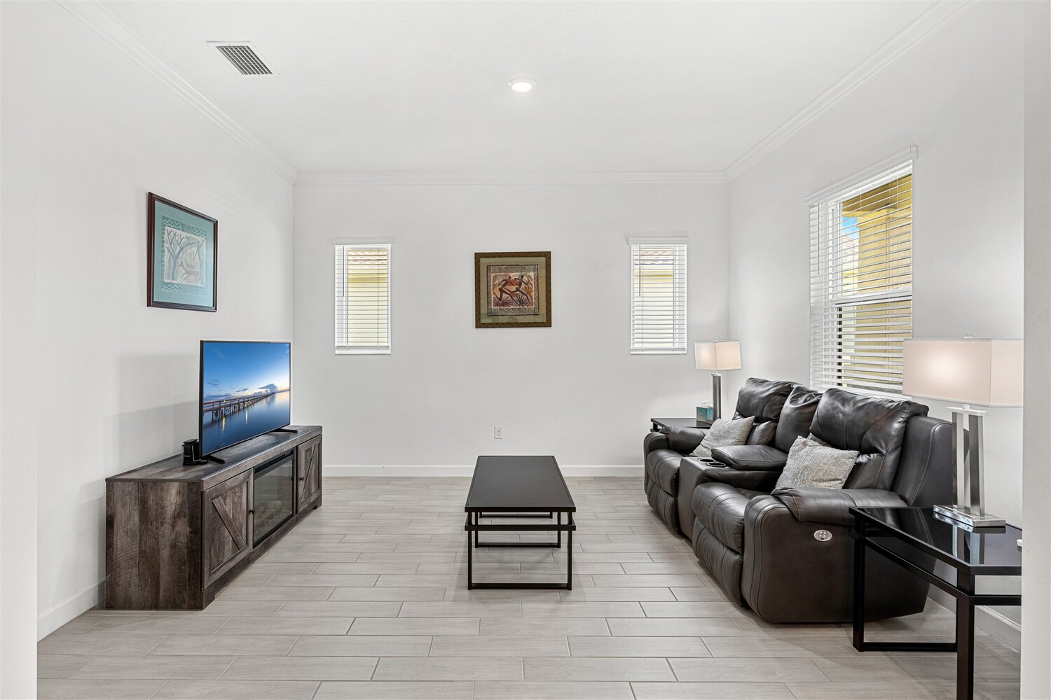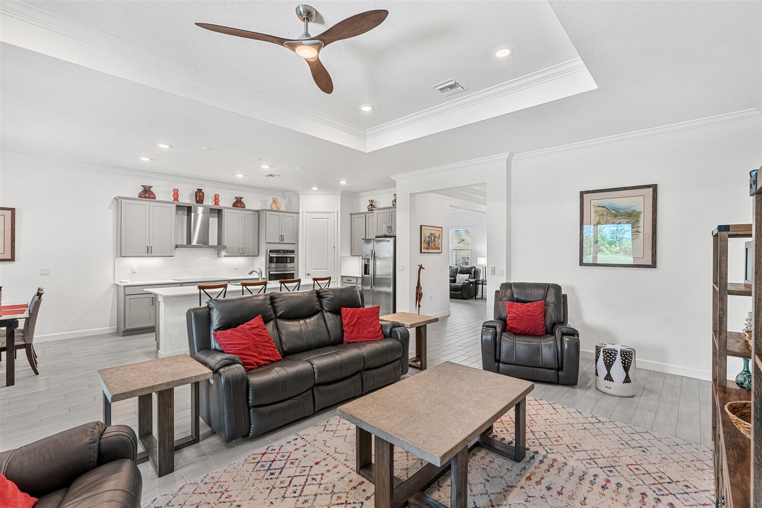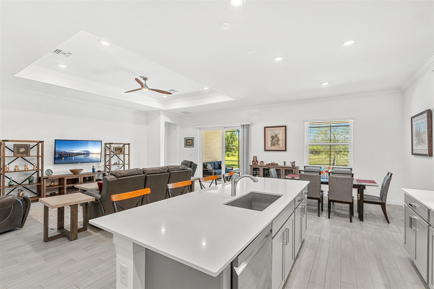 Like new, 3 bedroom, 3 car garage home in Bridgewater, Viera's popular 55+ resort style community! This stunning home has all the extras: New IMPACT WINDOWS AND SLIDERS, crown molding and tile plank floors throughout, and a gourmet kitchen with tiled backsplash, convection wall oven & microwave, cooktop, and designer hood. Enjoy the upgraded lighting package with undercabinet kitchen lights, and smart home features! Remote control roll-down hurricane screens on the back patio allow you to keep furniture outdoors during storms! And the extended screened lanai expands your outdoor living space! Even the garage doesn't disappoint with an epoxy floor! Whole house water treatment system, upgraded HVAC w/ultraviolet lights complete the package! Your dream life continues at the private clubhouse with a heated pool and spa, fitness center, tennis, pickleball and bocce ball, billiards room, ballroom, coffee lounge and even a movie theater! Close to the ocean, dining, shopping, cruises!