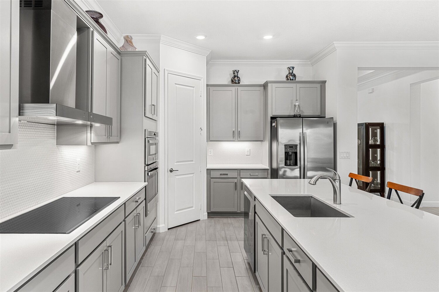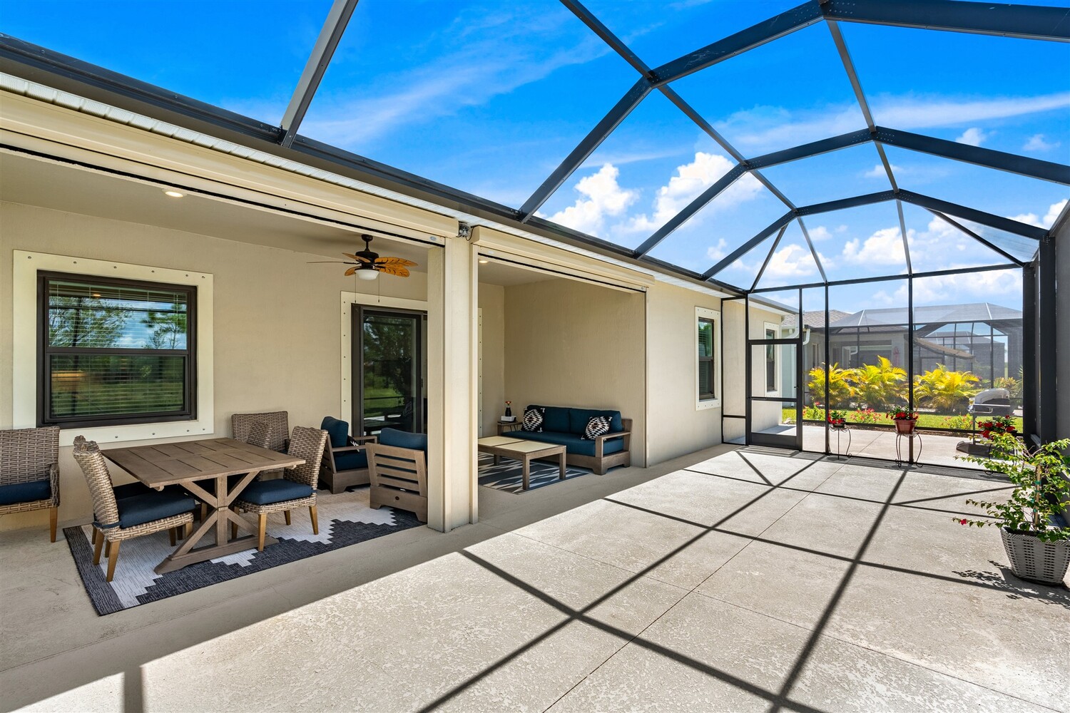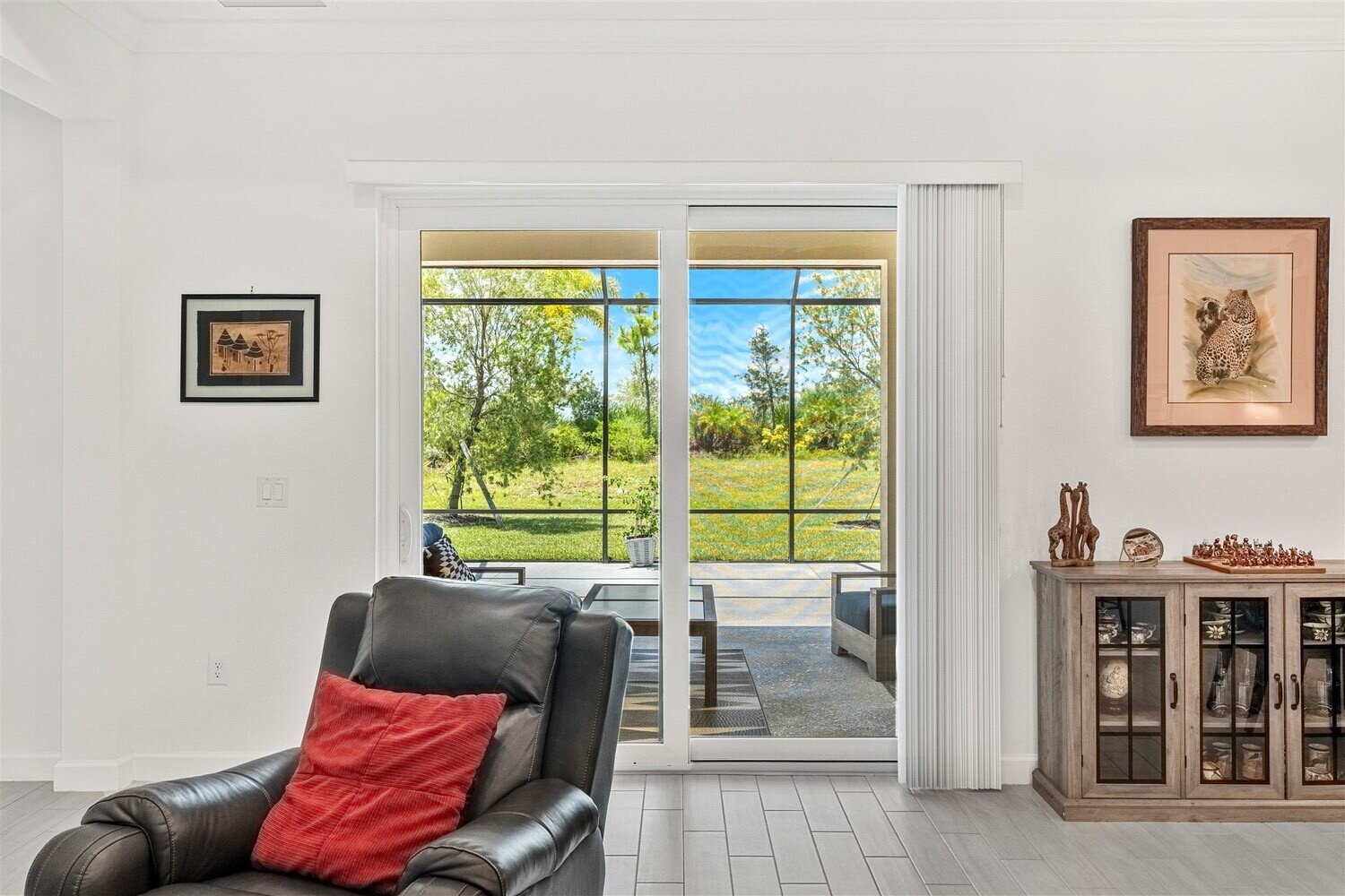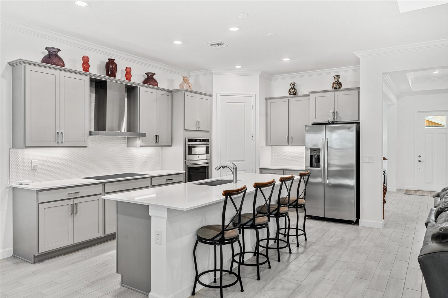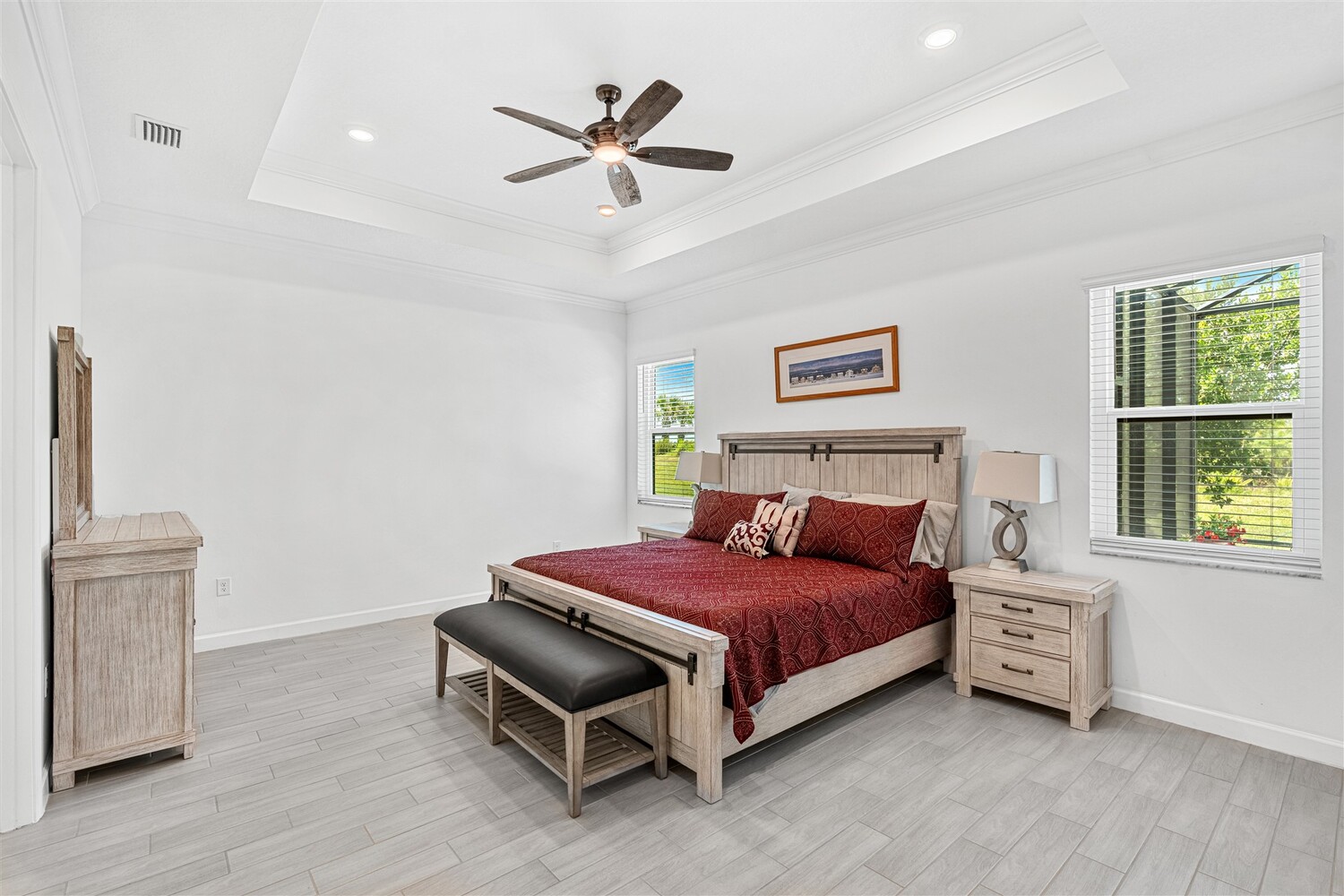 Like new, 3 bedroom, 3 car garage home in Bridgewater, Viera's popular 55+ resort style community! This stunning home has all the extras: New IMPACT WINDOWS AND SLIDERS, crown molding and tile plank floors throughout, and a gourmet kitchen with tiled backsplash, convection wall oven & microwave, cooktop, and designer hood. Enjoy the upgraded lighting package with undercabinet kitchen lights, and smart home features! Remote control roll-down hurricane screens on the back patio allow you to keep furniture outdoors during storms! And the extended screened lanai expands your outdoor living space! Even the garage doesn't disappoint with an epoxy floor! Whole house water treatment system, upgraded HVAC w/ultraviolet lights complete the package! Your dream life continues at the private clubhouse with a heated pool and spa, fitness center, tennis, pickleball and bocce ball, billiards room, ballroom, coffee lounge and even a movie theater! Close to the ocean, dining, shopping, cruises!
