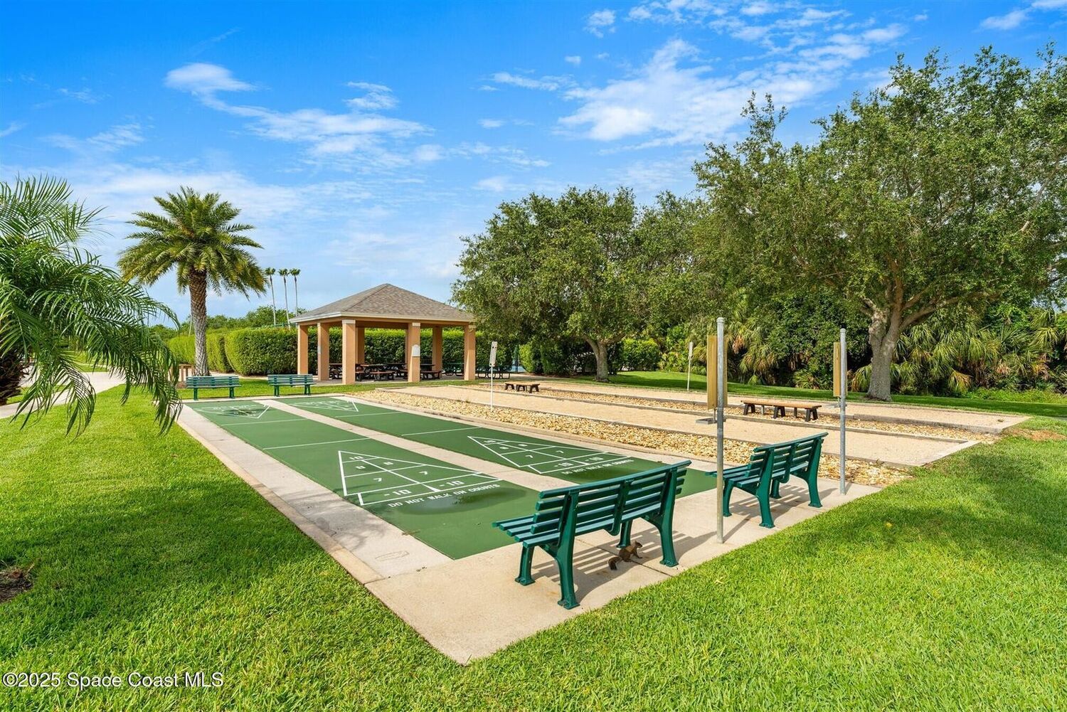 Welcome Home! This well-maintained 3-bedroom, 2-bath home offers a desirable split floor plan and a spacious enclosed patio with golf course and wildlife views—perfect for morning coffee or evening relaxation. Inside, the kitchen and main living areas feature new tile flooring, while the bedrooms are comfortably carpeted. The bright, open kitchen includes granite countertops, abundant cabinetry, and a breakfast bar, ideal for both everyday meals and entertaining. Located in the popular Viera East Golf Community, residents enjoy access to a welcoming clubhouse along with a wealth of resort-style amenities including a sparkling pool, tennis, bocce ball, pickleball, and shuffleboard. Recent updates provide peace of mind with a roof (2017), AC (2021), and water heater (2022). Enjoy the perfect combination of comfort, convenience, and active Florida living in this vibrant golf community surrounded by natural beauty and wildlife.