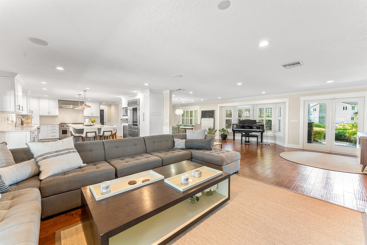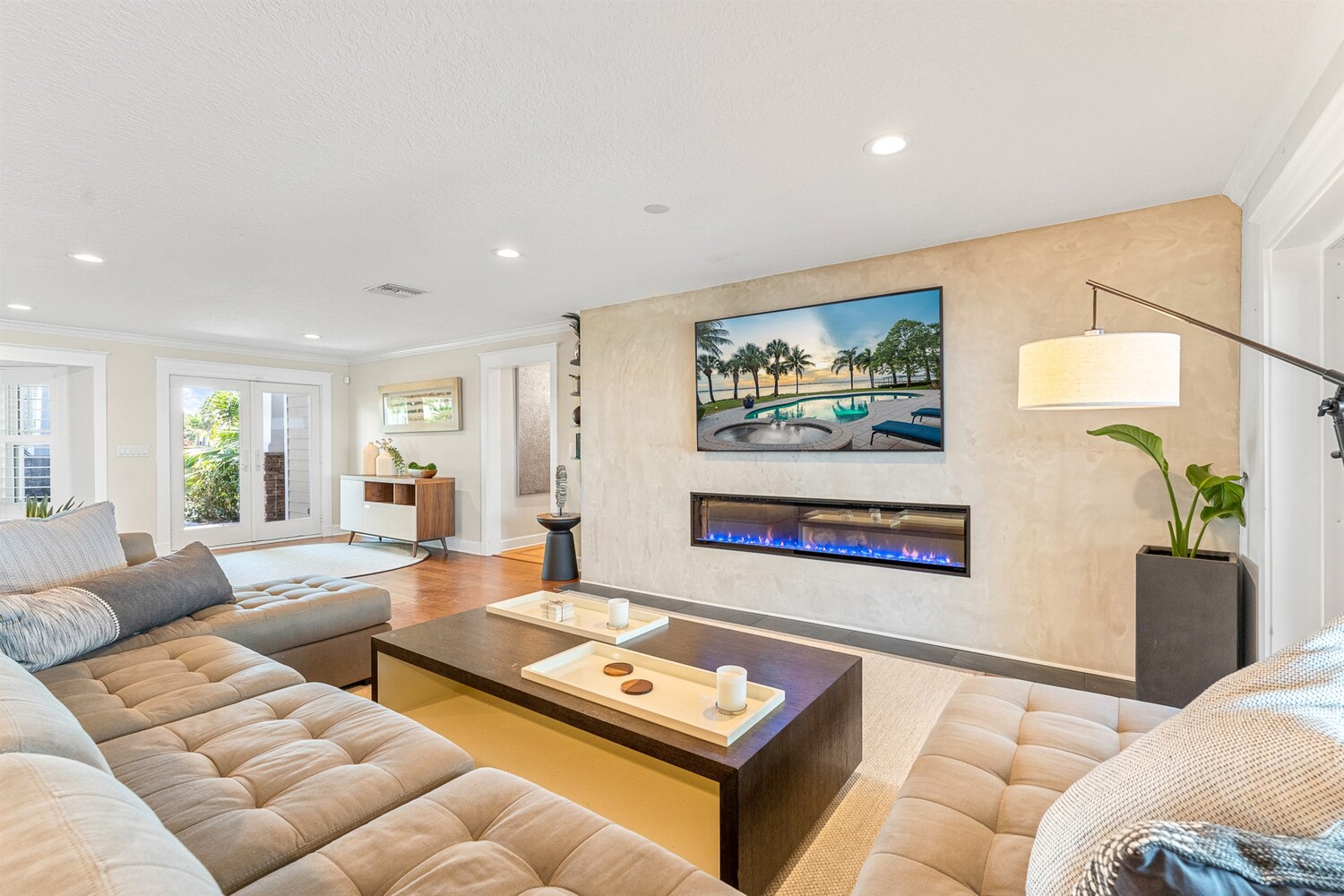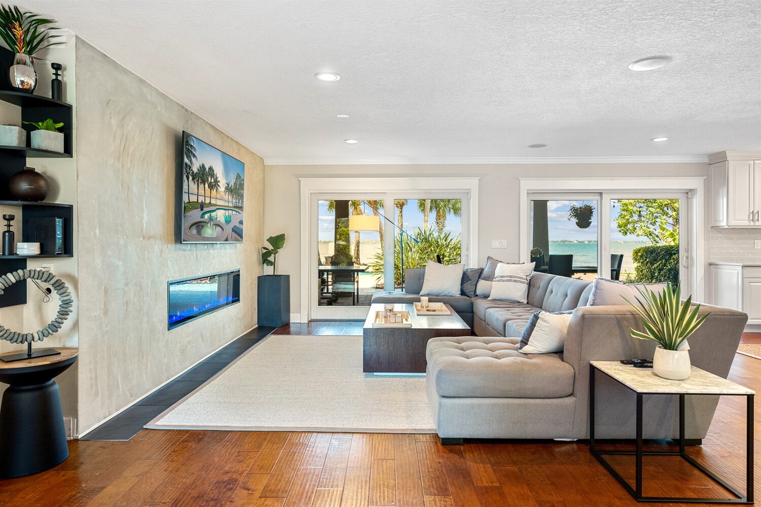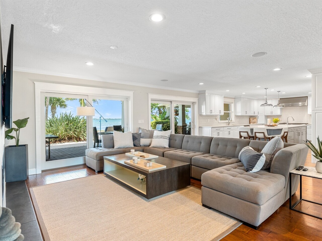 Welcome to 437 River View Ln. Featuring Epic Riverfront Views all while boasting over 220 linear feet of River frontage. A premier location and a rare find this property sits on the scenic tip of ''Crab Point'' in Melbourne Beach. All the best of beachside living, this home is just a few block stroll to fine dining, parks, tennis courts, shopping or the beach. If you prefer to relax poolside, stay home and enjoy playful dolphins in the morning and spectacular sunsets at night. This home is close to 192 within walking distance of historic downtown Melbourne Beach. Nestled on the corner lot of a cul-de-sac, the extensive backyard oasis leads to the pool, boat & wading dock and boat lift. The lush tropical landscaping and large driveway invite you to this private retreat. Enter through ouble glass doors and admire the natural lighting and open floor plan of this house. Hardwood floors, a neutral color palate and double hung impact windows/sliders offer an immediate sense of serenity. Enjoy stunning views of the river throughout the home. Featuring 4 bedrooms, 3 full bathrooms home includes two master suites on opposing wings of the home. The fifth room leaves alternative for a game, toy or possible fifth bedroom as well. The kitchen is a chef's paradise with quartz countertops, custom wood cabinets, Top of the line built in stainless side by side refrigerator/freezer, Top of the line gas 6 burner cook top and double oven, warming oven, built-in microwave, wine fridge and double oversized pantries. These are all situated around a large kitchen island with breakfast bar seating. Ideal area to host family and friends or entertain. Crown molding, modern lighting, a venetian plaster wall with gas fireplace is accented by the plantation shutters, large baseboards, trim work and tray ceilings throughout the home. The main master suite opens to the covered lanai with tropical foliage and river views. The fourth and largest master closet is an oversized walk in. This leads to the master bathroom with Jacuzzi tub and oversized walk-in shower. The second master suite mimics the first with similar views of the river, pool and foliage from both the bedroom and the parallel covered Lanai. With over 1000 ft.² of paneled lanai step outside to enjoy all that riverfront living has to offer. Enjoy barbecuing or entertaining at the stone accented summer kitchen, relax on the deck, catch a few fish, take a dip in the pool or soak in the hot tub under the stars. Enjoy boating and jet skiing from your own dock and boat lift or take advantage of your paddle board and Jet Ski's from the riverfront wake area. Abutting Crab Point, this spacious back yard along 220+ ft of Riverfront is truly unique in all that it has to offer. Savor the breathtaking Riverfront views and enjoy living in your own oasis.