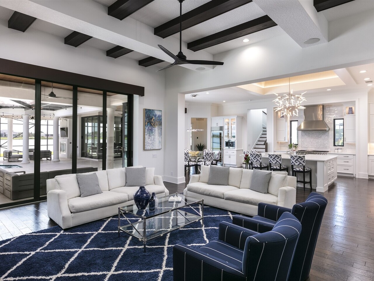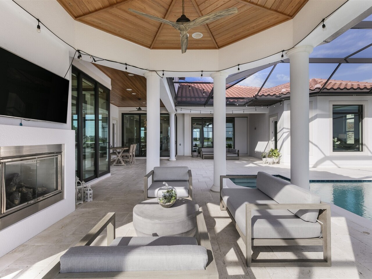 Arthur Rutenberg Custom Executive Estate in the elite gated community of Adelaide was designed to rival the finest Brevard County homes. The stunning 5531 SF great room floor plan based on the Almeria Model includes 5 bedrooms, 6 full baths, club/game room, office and meditation room. Positioned on a 0.96 acre waterfront lot to showcase views of Lake Adelaide from the residence’s primary living spaces. A circular driveway surrounded by lush meticulous landscaping, a soothing waterfall, and majestic front elevation faces the southwest. And to the northeast, the screened lanai with glistening pool and spa is backdropped by expansive views of Lake Adelaide making this .96 acre lot feel like a resort. On the side of the home, a portico leads to the 3 car garage and a separate golf cart bay cloaked by crafted wooden doors. From the tile roof to the paved driveway and walkways, this estate makes a grand statement and emits the WOW factor. The arched wooden doorway is a work of art with sidelights mirroring the shape in intricate detailing. Inside the foyer, you are greeted with gleaming modern white floors and walls that are dressed with navy latticework details making a two-dimensional effect. Above, a chandelier is light and airy with gold tones and crystal accents. As you move to the heart of this 5531 square feet of living space, the open concept floor plan displays the kitchen and dining unobstructed from the living room. Rich hardwood floors compliment the wood beams across the ceiling and floor to sky TV enclosure. Slide away glass doors reveal the pool deck and lanai. The kitchen is both lovely and functional with a massive counter height center island seating six, stainless steel top of the line appliances including a subzero refrigerator and six-burner gas range top. The cabinets extend to the ceiling embellished with crisp white countertops and backsplash. In the center, an illuminated tray ceiling surrounds a spectacular chandelier. The dining area is an extension of the kitchen and features a beverage bar decked out with a full-size wine fridge and mounted coffee machine. Additional slide away doors open to the summer kitchen outside making entertaining a breeze. Nestled in the front of the home, French doors reveal a study that makes an ideal office space. The hardwood floors extend to the main level master bedroom suite and the windows and patio door in the sitting area bring the scenic views of the water inside. His and Her custom closets flank either side as you enter into the refined Zen-like bathroom, adorned in two-toned gray tile floors, marbled quartz countertops, and a colossal shower and bathtub glass enclosure. Functionality meets luxury with an exceptional laundry room equipped with loads of cabinetry, sink, and washer/dryer. From the kitchen, a family room features incredible views of the water, a huge wet bar fitted with a beverage fridge and sink, and an additional dining/flex space. With glass doors to the pool deck, this could be a perfect spot for casual entertaining or put in a pool table for a game room. Off the family room, a powder room is conveniently located and designed with the most fashionable accents and finishes. Off the kitchen, a massive bedroom and ensuite bath make an excellent guest suite. Upstairs a substantial living area opens to a large covered balcony overlooking the pool and lake beyond. Three sizeable bedrooms each have their own lavishly finished bathrooms. An ideal spot, for teens or guests to have their own space. Outside, the screened-in lanai spreads wide and a rotunda covered paver patio is warmed by a waterside fireplace and entertained by the outside TV. Adding to the ambiance, and an ample covered dining space is adjacent to the summer kitchen housing a gas grill. Featuring crown molding throughout, Tesla charger port, electric shades, heated pool, zoysia grass with reclaimed water sprinkler system. Adelaide is a premier gated community, designed to rival the finest homes in Brevard county. Situated in Viera, over a third of Adelaide's neighborhood is either water or preserve land and features unmatched amenities including a jogging trail system, tennis and basketball courts as well as a 5-acre park with community dock, pavilion, and playground. If water sports are your passion, Lake Adelaide offers the opportunity for year-round paddle boating, kayaking, waterside meditation, and the Space Coasts superior beachline is only 15 minutes away. Golf cart to the Avenues, catch a game at the Sports Complex, watch rocket launches from your driveway, or golf at local pristine courses nearby. With easy access to I95, Orlando Park attractions and International airport is 45 minutes away. A-Rated Schools Sail or kayak on the scenic 120 acre Lake Adelaide year round. Over a third of Adelaide’s neighborhood is either water or preserve land and features unmatched amenities including a jogging trail system, tennis and basketball courts as well as a 5 acre park with pavilion and playground.