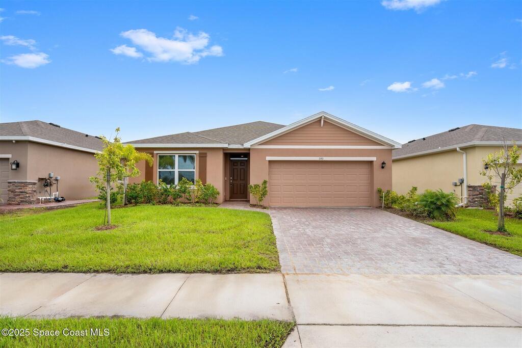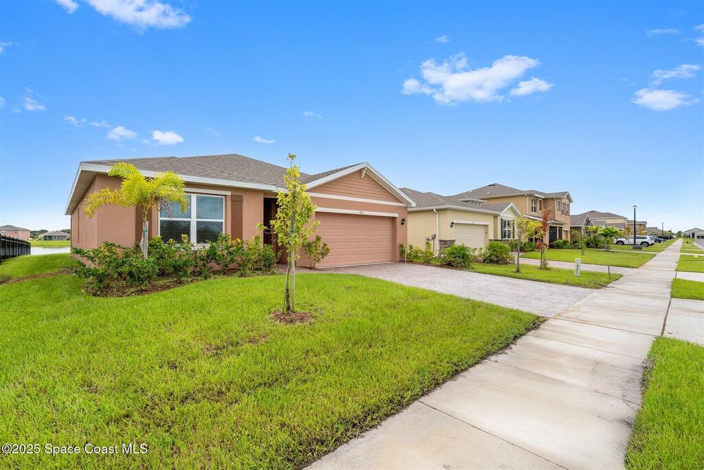 Built in 2024, this like-new home in the Dunes at Heritage Lake offers long views of the lake and contemporary finishes. The Cali model is crafted for sophistication and comfort, blending modern convenience with timeless appeal. The open-concept design is ideal for entertaining, seamlessly connecting the living room, dining area, and kitchen, with plenty of natural light from the oversized windows. All-white kitchen features beautiful quartz counters, stainless steel appliances, a walk-in pantry, and a large island with a breakfast bar. Four generously sized bedrooms offer versatility for every family. The spacious primary suite is your own private retreat, with a gorgeous ensuite bathroom appointed with dual sinks, separate shower, and walk-in closet. Enjoy modern smart-home features for ease of use, electricity savings, and beyond. Just minutes to L3, Northrup, shops and restaurants.