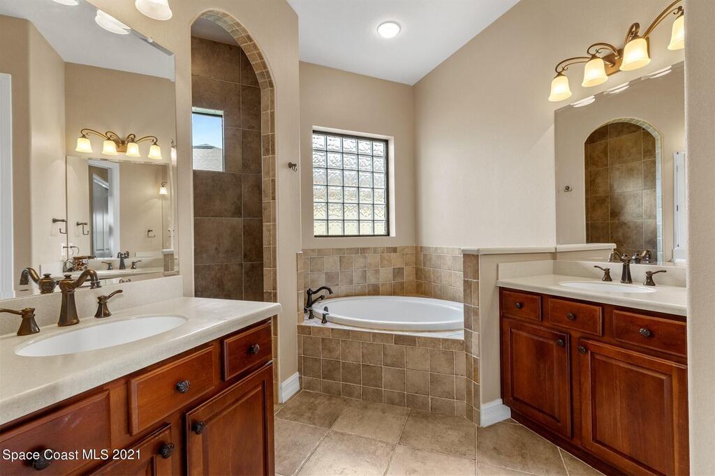 Magnificent 5 bedroom, 4.5 bath, lakefront home located in the gated community of Eason Landing in West Viera. One of a kind water lot with privacy from neighbors and plenty of room for a custom backyard pool oasis. Rare, large, detached guest suite with full and separate AC, perfect for family, guest, separate office, or a home gym. Grand entry with soaring ceilings and beautiful wood staircase. Brand new A/C system. Ground floor master suite with jetted tub, dual sinks, and walk in shower. Huge private upstairs bonus room/5th bedroom with full bath. Gorgeous custom kitchen with wood cabinets, granite counters, and stainless-steel appliances. Hurricane shutters on primary level and impact glass windows on the 2nd story. Just a short bike ride or golf cart ride to highly desirable...