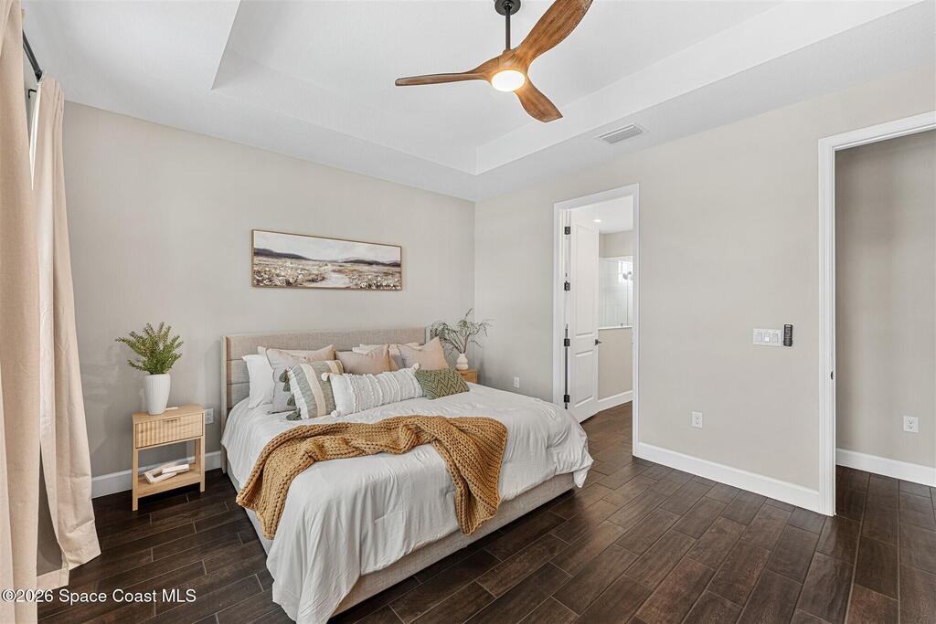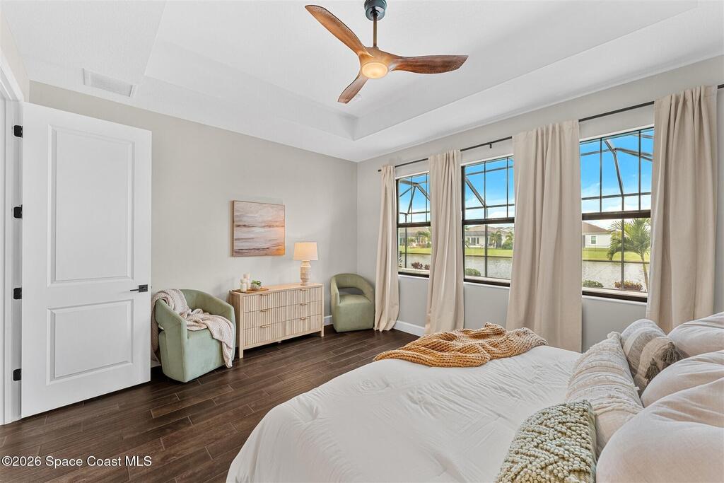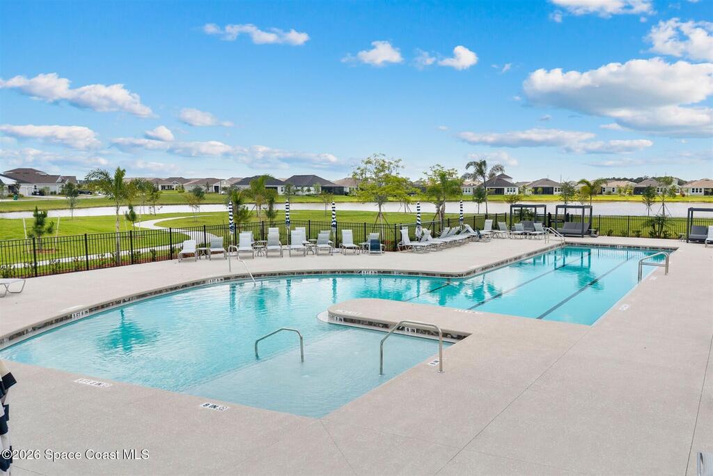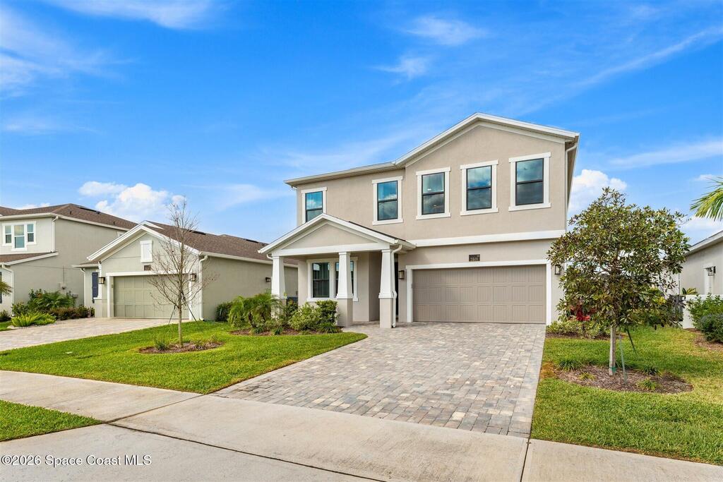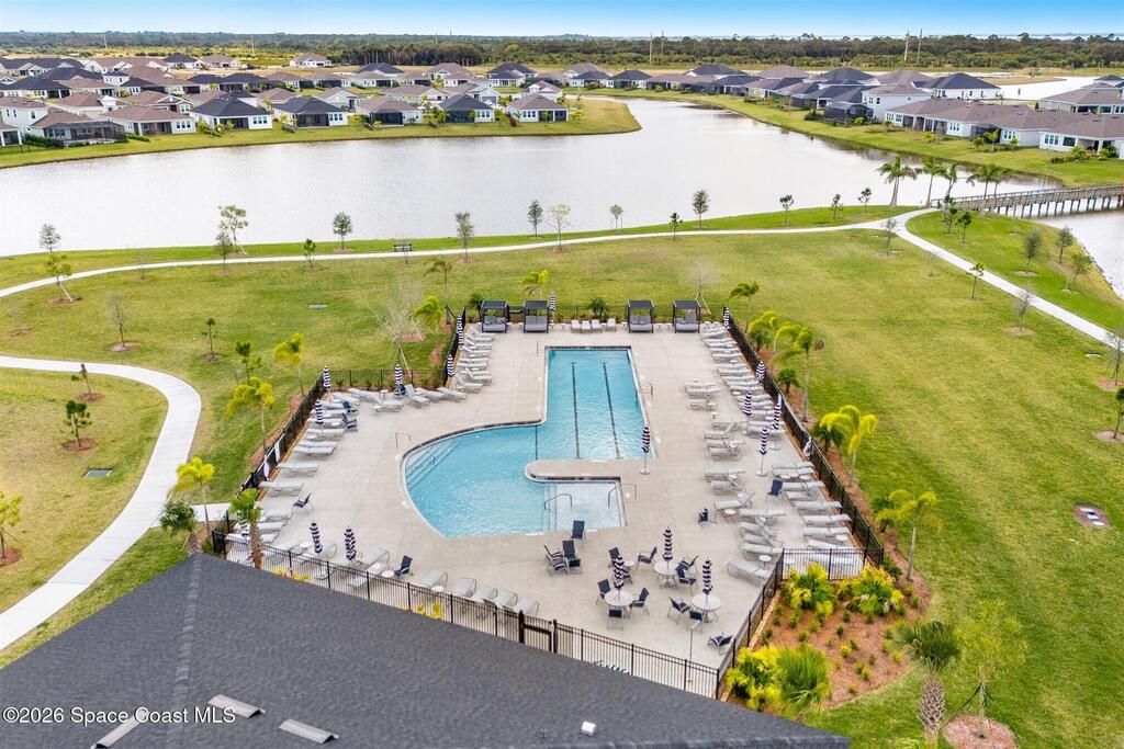 Almost new, waterfront, and move-in ready -- this 2024 Carina in Pangea Park delivers modern luxury, flexible living, and resort-style outdoor space in one of Viera West's most desirable communities. From the open-concept design and gourmet kitchen to the custom pool with spa and serene water views, every detail is thoughtfully designed for effortless Florida living -- all within a highly regarded school district and minutes to everything Viera has to offer. The two-story floor plan features an open-concept layout designed for entertaining and everyday living. The home offers four bedrooms and three and a half bathrooms, plus a versatile Flex Room suitable for a Study or fifth bedroom. Upstairs, a large Loft provides additional living space ideal for a media room, playroom, or family gathering area, while an en-suite bedroom adjacent to the loft creates an excellent secondary living area for multigenerational living, guests, or young adults. The primary suite