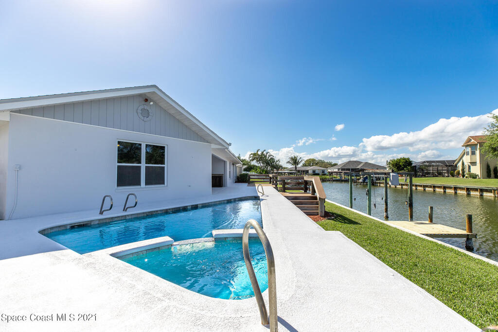 Minutes by boat to Canaveral Lock and Atlantic Ocean!! Near Kelly Park. Quiet cul-de-sac, canal front home in desirable Merritt Island community of Surfside Estates. 4 bedroom 2 bath nice size 2 car garage. Updates throughout including: Hurricane impact windows, newer flooring, high end beautiful kitchen and baths. Replaced AC 4 years , Roof 8 years , Hwt. 5 years ago. New fence installed. Relax by the pool or under the lanai equipped with a grilling station and enjoy the dolphins!!