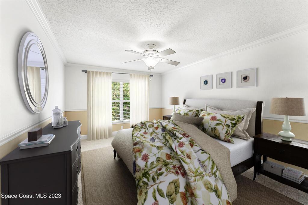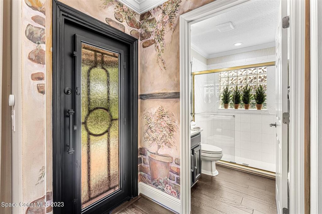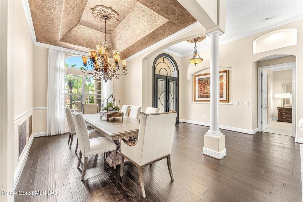 Meet your new luxury dream home in this upgraded masterpiece located in the heart of West Viera. Situated on a professionally landscaped lot, this home's soaring ceilings and oversized windows provide an abundance of natural light for the perfect living environment. As you approach, custom 8-foot double iron doors with a matching transom window-top greet you, setting the tone for the elegance within. This home has been extensively upgraded in 2022 and 2023. Step inside to discover beautiful hardwood flooring that spans the first floor, complemented by fresh interior paint that enhances the space's natural light. The heart of this home boasts custom lighting, professional window treatments, palatial 18' ceilings, tray ceilings, crown molding, chair railing, upgraded baseboards, and (more)