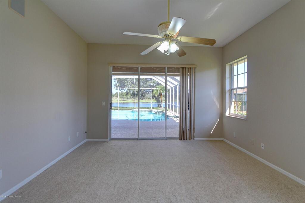 CUSTOM LAKEFRONT POOL HOME in secluded, gated community. The Heritage is a sought after Viera neighborhood of 23 custom homes built on large lots. The home was designed to showcase the exquisite lake views. To prepare the home for its new family, the original owners freshly painted the interior and exterior as well as installed new carpet. You'll find 4 spacious bedrooms and 3.5 baths plus a large bonus room which could be a 5th bedroom or office. Home has formal living and dining rooms as well an upgraded kitchen that opens the family room. The owner's bedroom boasts incredible water views and slider access to the lanai. Owner's bath has two sink granite topped vanity, shower and jetted tub. Lounge under the expansive lanai or take a dip in the pool while enjoying spectacular lake vistas!