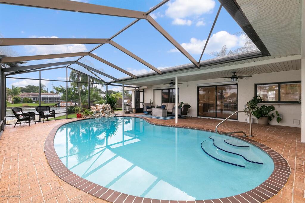 Attention Boaters & Fisherman! Phenomenal DEEP water canal front home located on a cul-de-sac lot in the Satellite Beach. Just off the Grand Canal, the home offers 130 feet of waterfront that includes a covered boat dock and lift. The residence has been tastefully updated including premium tile flooring, custom cabinetry, granite countertops, recessed lighting and more. The foyer opens to a large living space or great room featuring canal and pool views. A counter height breakfast bar delineates the kitchen and great room. The kitchen's distinctive design and finishes reflect a clean, minimalist aesthetic that is echoed throughout the home. Wall cabinets were minimized to open the kitchen space and allow unobstructed views of the canal. A custom pantry was added to meet all storage needs.